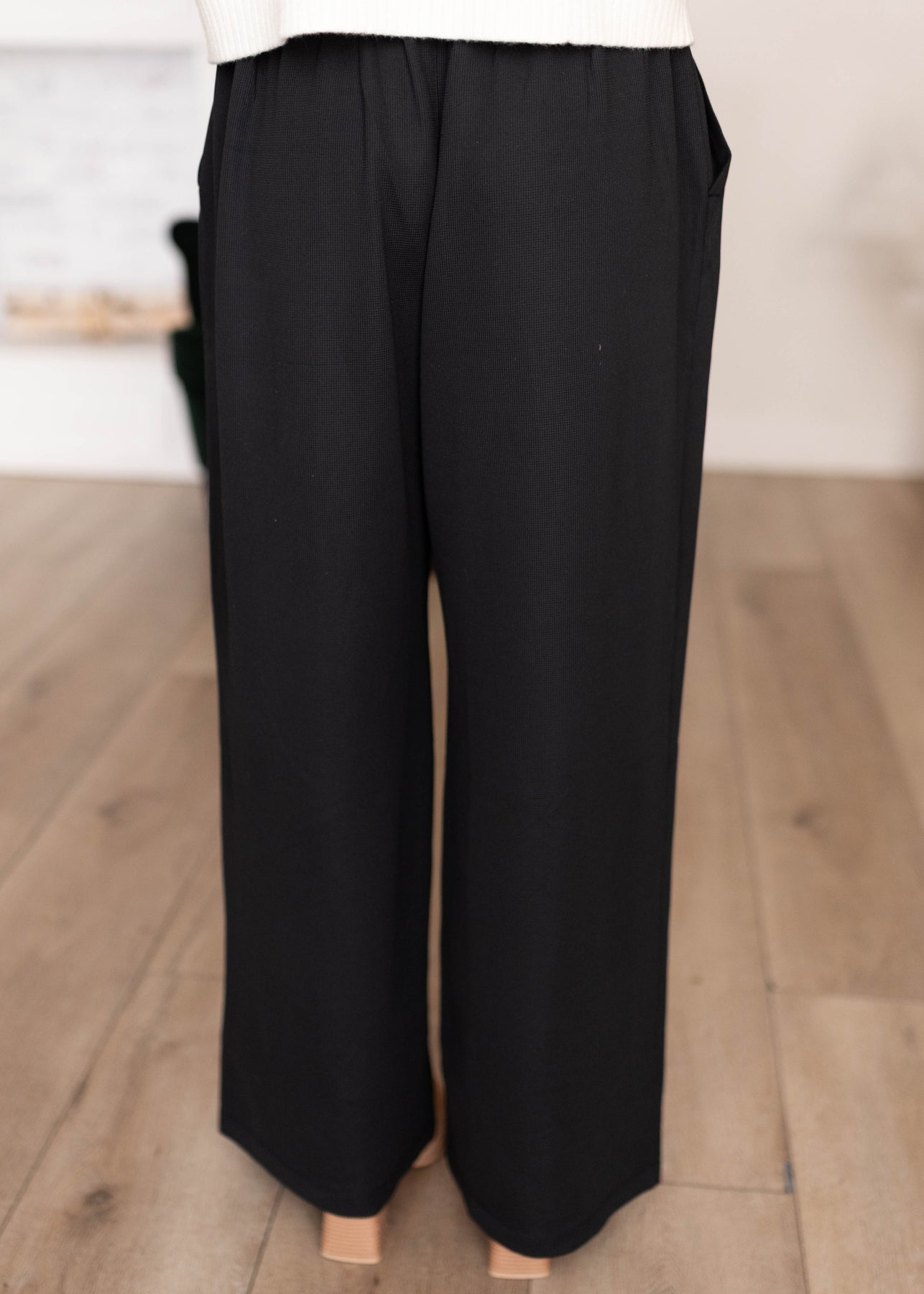 The Arya Black Wide Leg Trousers are the kind of staple you’ll reach for again and again. Designed with a soft, subtle texture and an easy elastic waist, they blend comfort with a polished look. The wide leg cut adds effortless movement, while pockets and belt loops make them as practical as they are versatile.