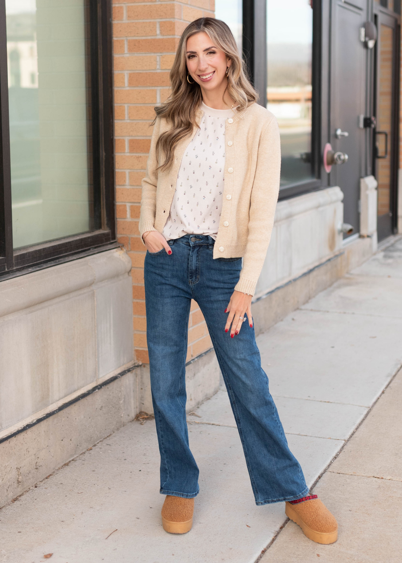 Long sleeve button up taupe cardigan