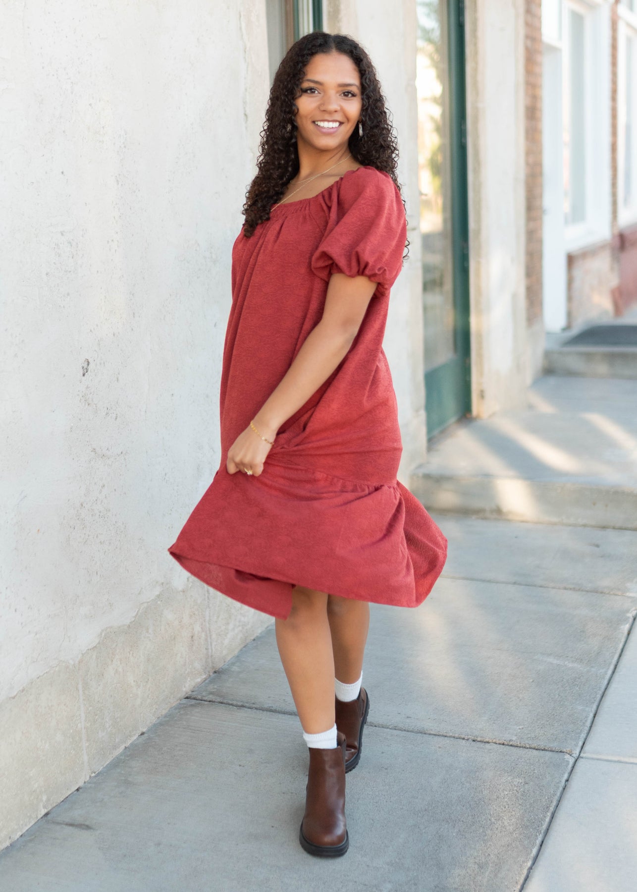 Meet the Leyla Dress—our exclusive design that’s all about effortless charm! Featuring a rich rust floral print, square neckline, and puff sleeves, this dress blends sweet details with a comfortable fit. Elastic at the sleeves and neckline makes it easy to wear, while a single tier and fully lined skirt keep it flowy and polished. Functional side pockets add practicality to this pretty, versatile piece.