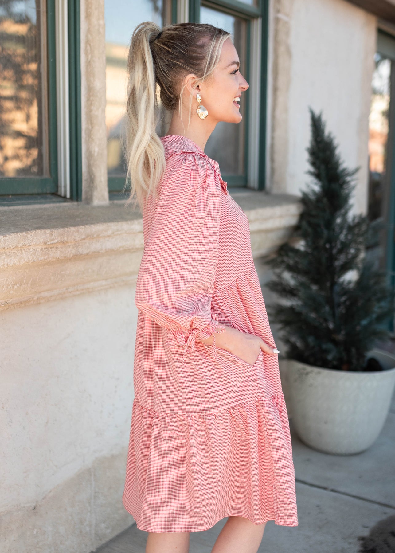 Holly is 5'7" and wearing a size smallHannah is 5'8" and wearing a size smallMaddie is 5'7.5" and wearing a size smallBrooke is 5'5" and wearing a size smallMillie is 5'3.5" and wearing a size smallVeronica is 5'6" and wearing a 1X