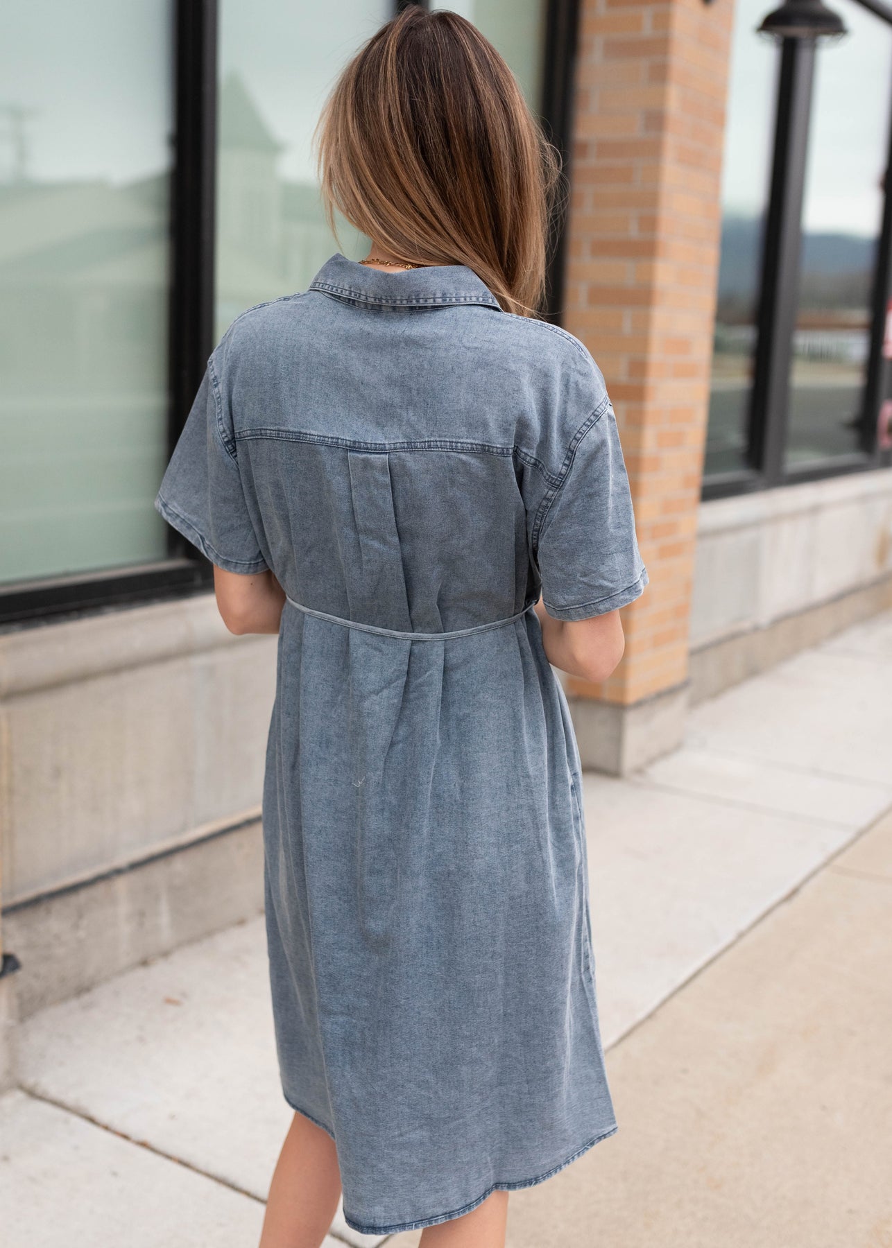 The Kennedy Dress is an easy classic you’ll reach for again and again. Designed with a collared neckline and full button-up front, it offers a polished look with everyday comfort. The adjustable waist tie lets you customize your fit, while chest and side pockets add function you’ll love. Simple, flattering, and endlessly wearable.
