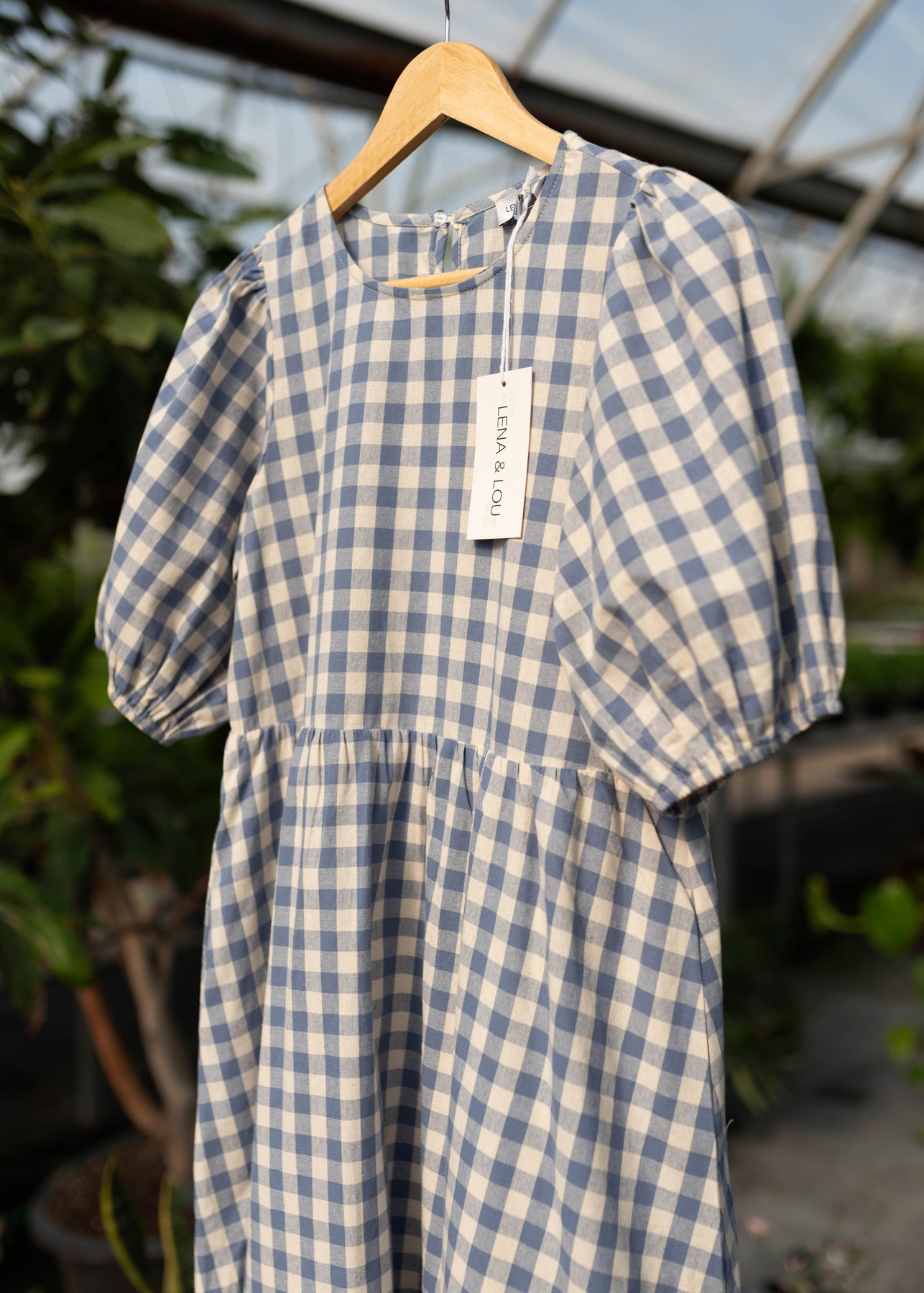 Modest blue gingham dress by Lena Lou exclusively sold at Lena Layne