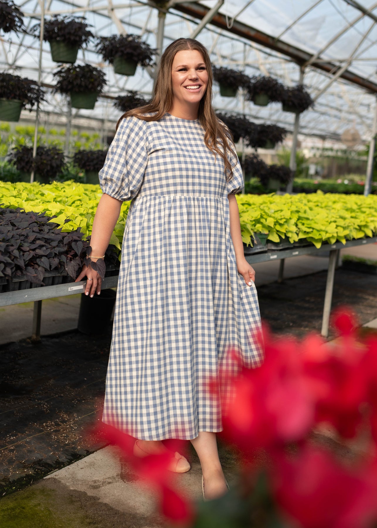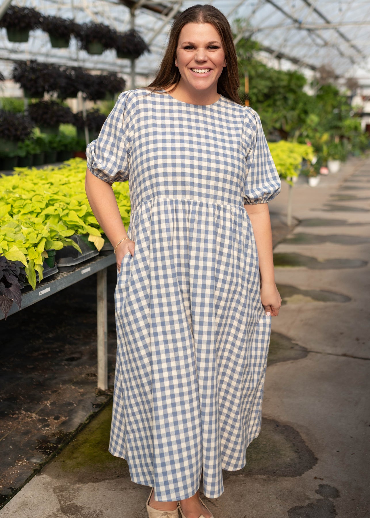Plus size blue gingham dress