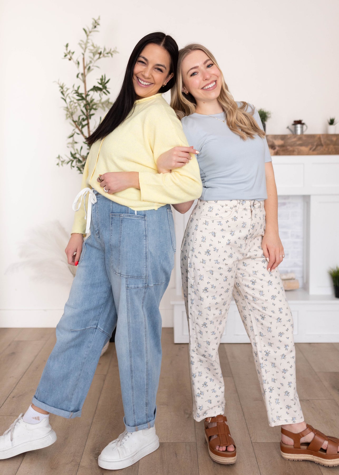 The Beth White Floral Jeans are a fresh take on a classic silhouette, featuring a soft white base with a delicate light blue floral print. Designed with a flattering high waist and wide leg fit, these jeans bring a playful yet polished feel to any outfit while still being easy to wear.