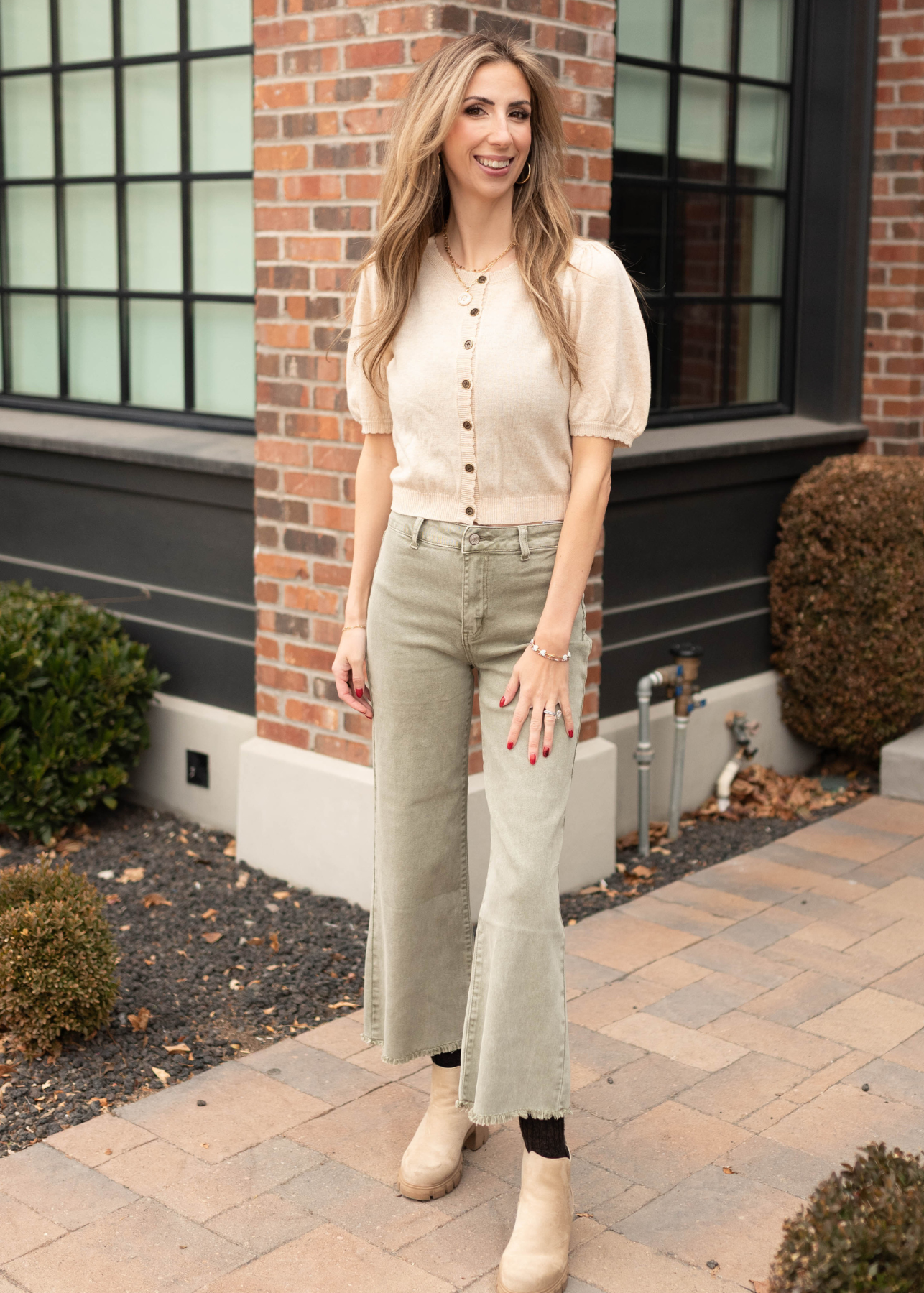 The Norah Pants are sleek, flattering, and easy to dress up or down. With a mid-rise fit and wide leg silhouette, they create a clean, polished look. Functional back pockets and a zipper fly keep them practical, while the olive tone adds a versatile neutral to your wardrobe.