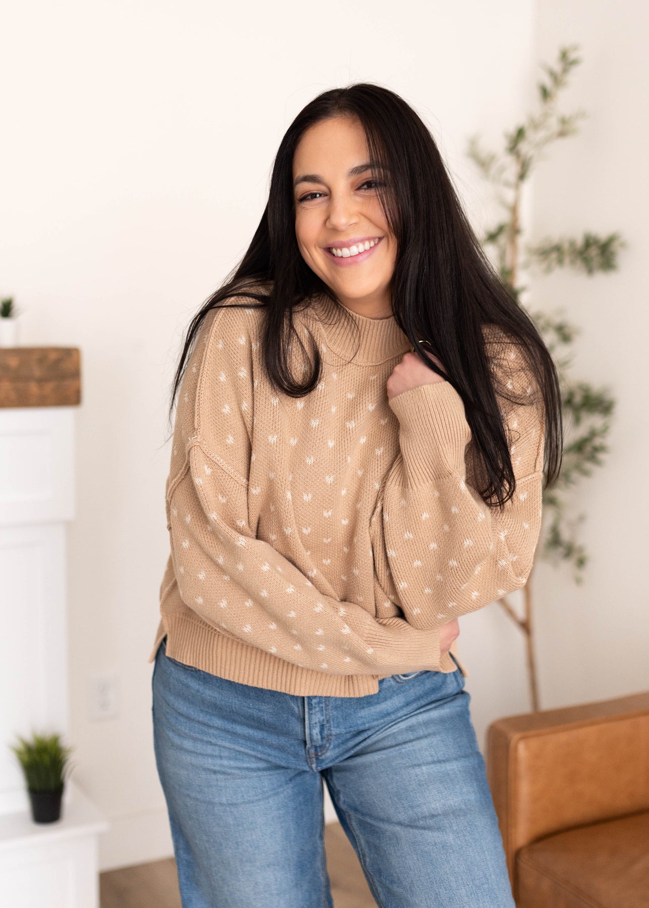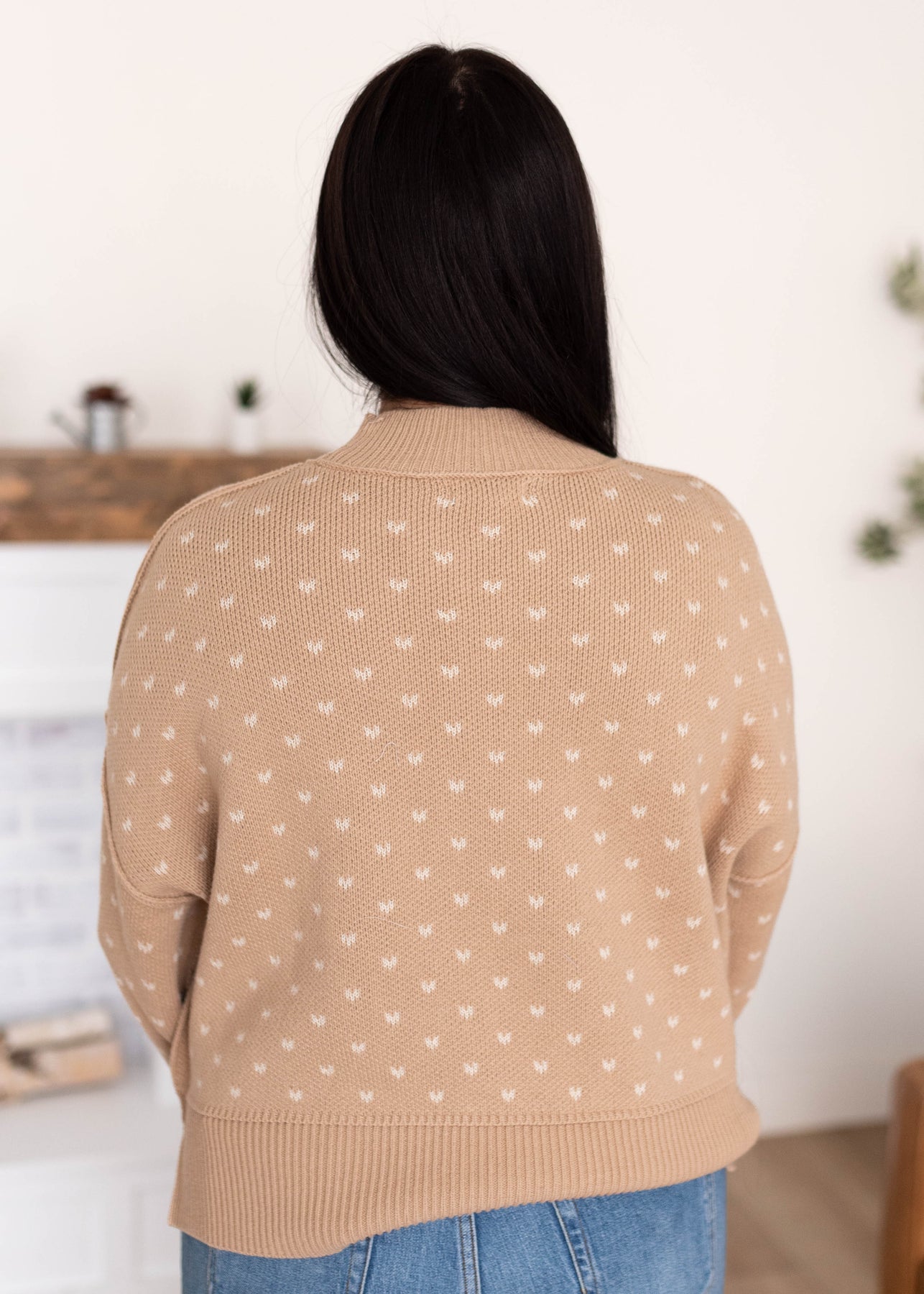The Margot Taupe Heart Sweater is sweet, cozy, and effortlessly chic. With a soft taupe base and playful white heart print, it adds a touch of charm to any outfit. The relaxed fit, ribbed trim, and exposed seam details make it comfortable and stylish for everyday wear.