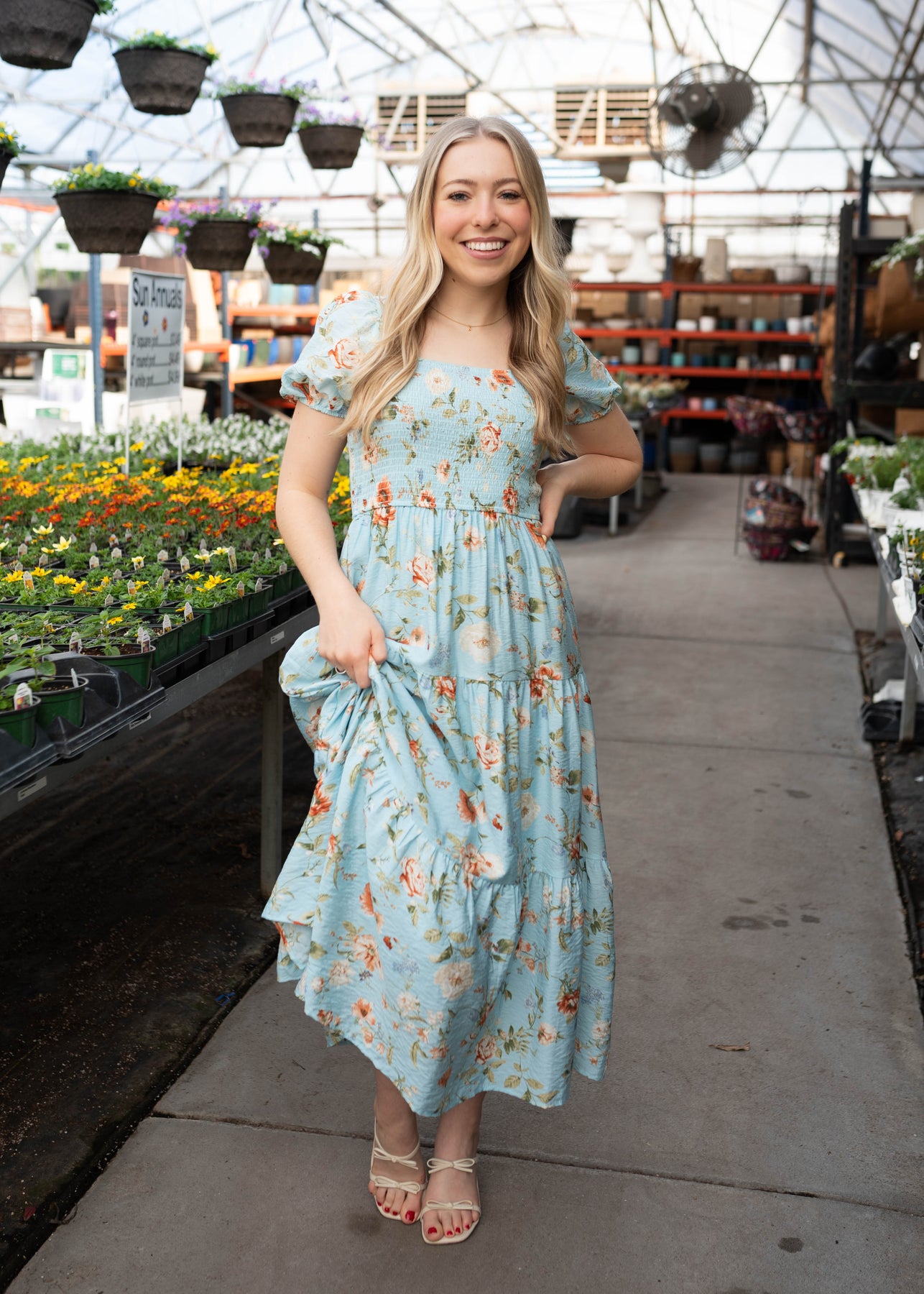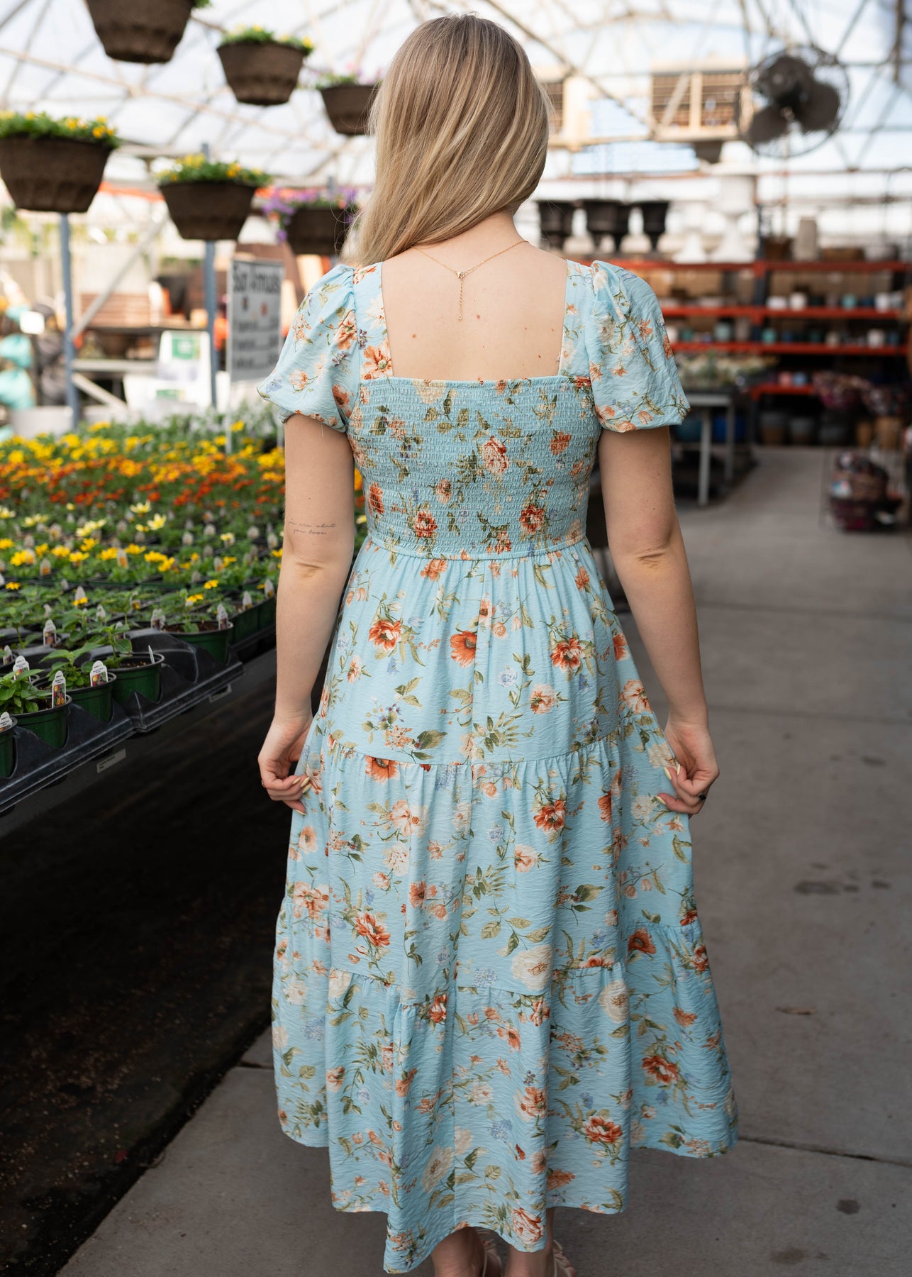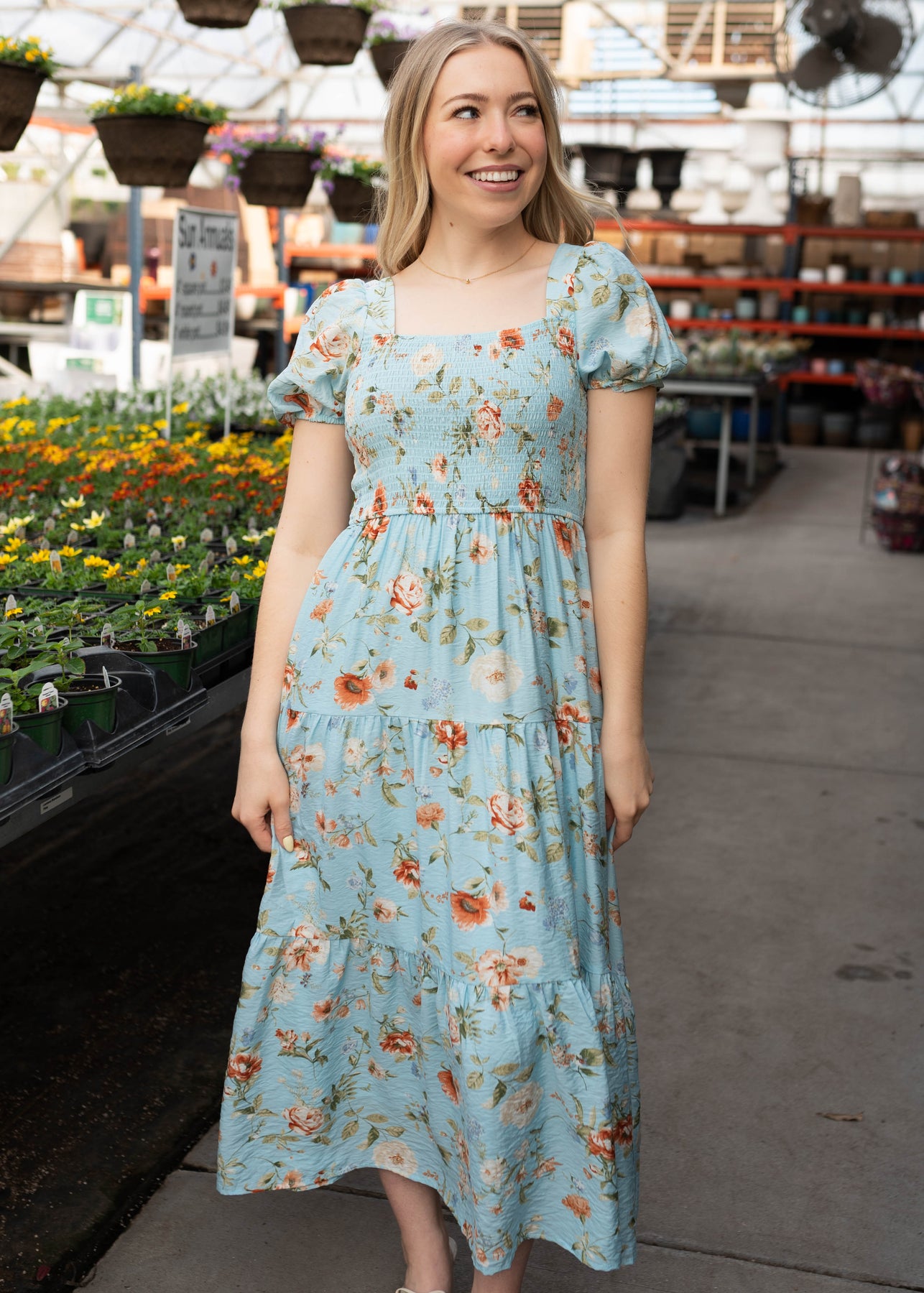 Bright, feminine, and effortlessly easy to wear — the Addilynn Blue Floral Dress is one of those pieces that instantly lifts your mood. Designed with a beautiful blue base and colorful floral print, this dress features a flattering smocked bodice that creates a comfortable, flexible fit. The square neckline and short puff sleeves add a sweet, classic touch, while the tiered midi skirt gives it soft movement and flow. Fully lined for easy wear, it’s a dress you’ll reach for again and again.