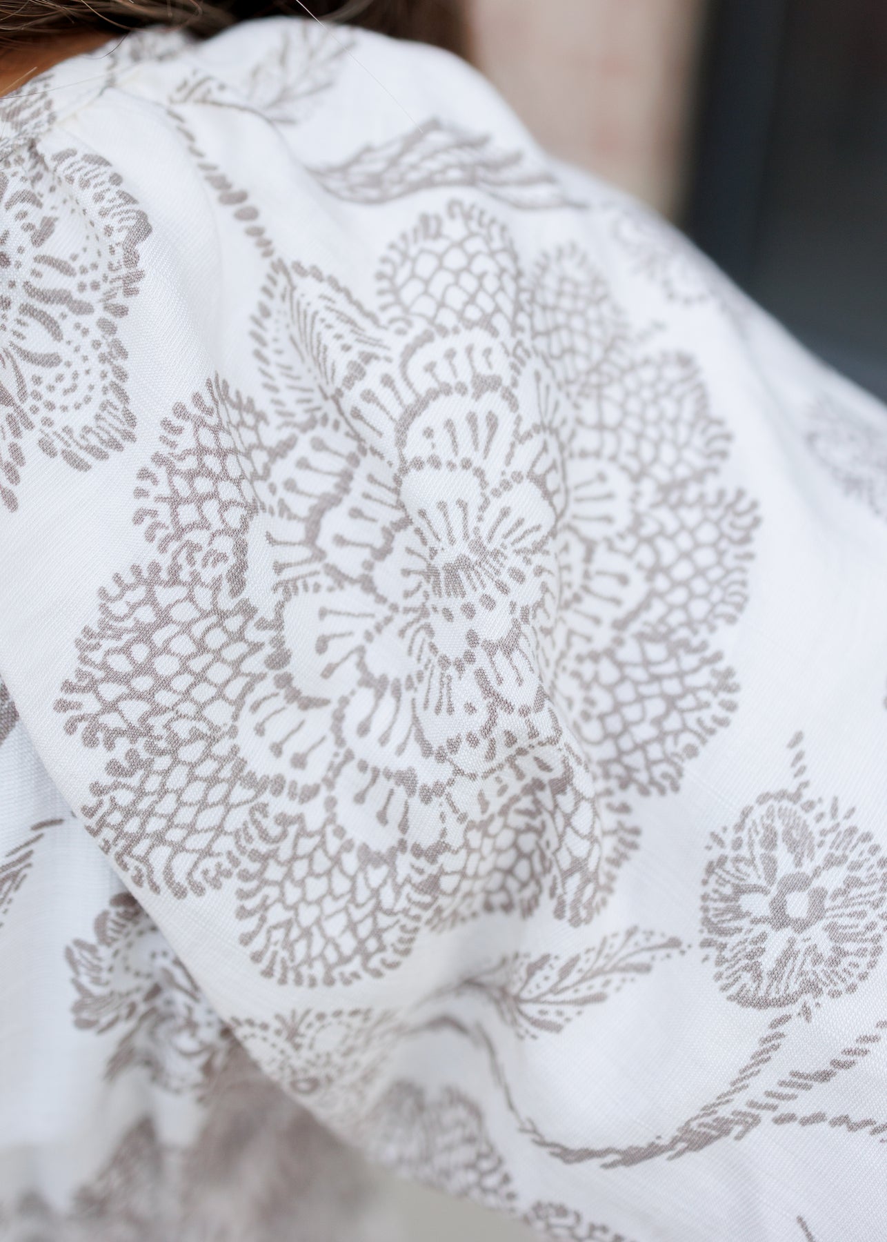 • Ivory base with taupe floral print