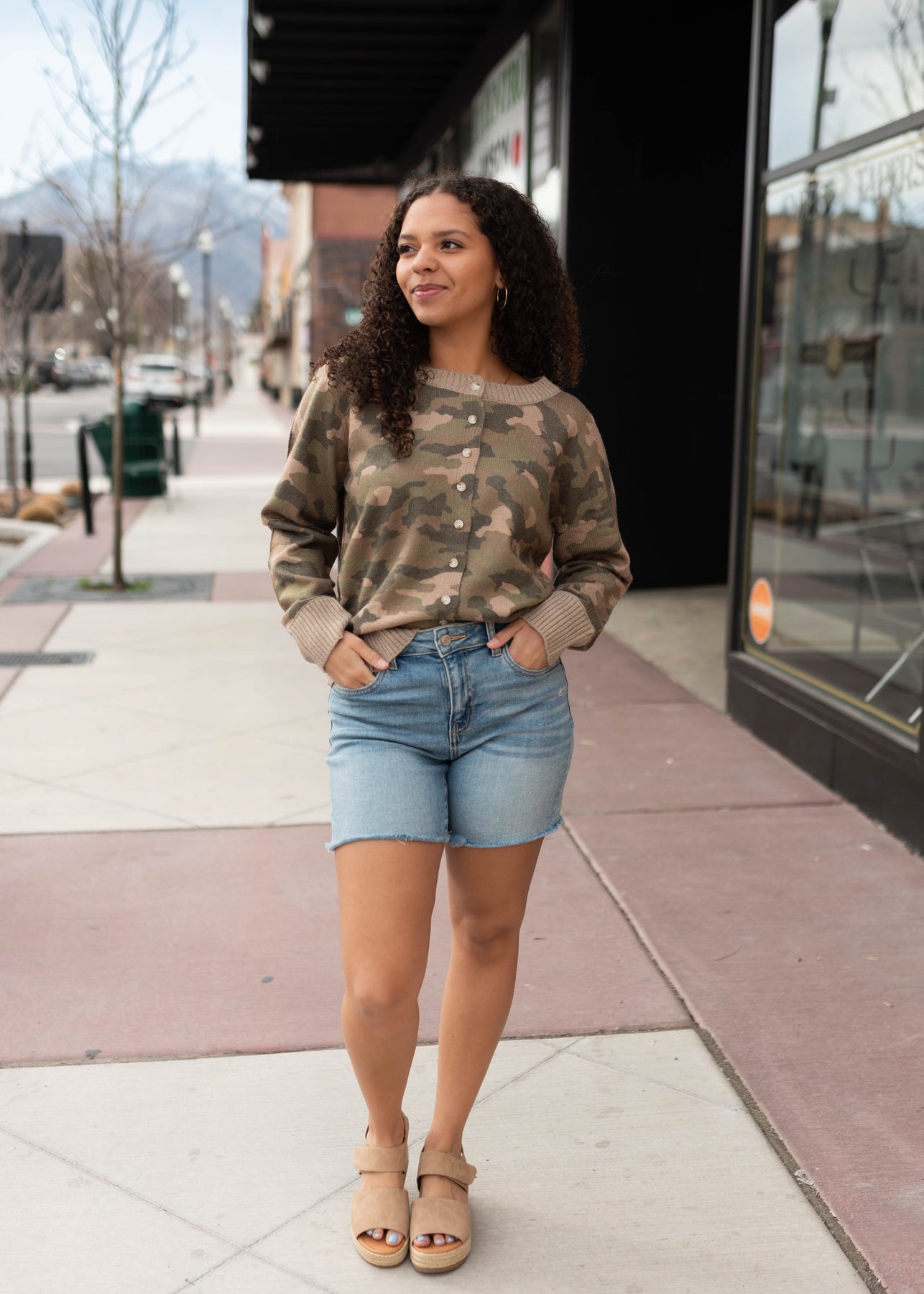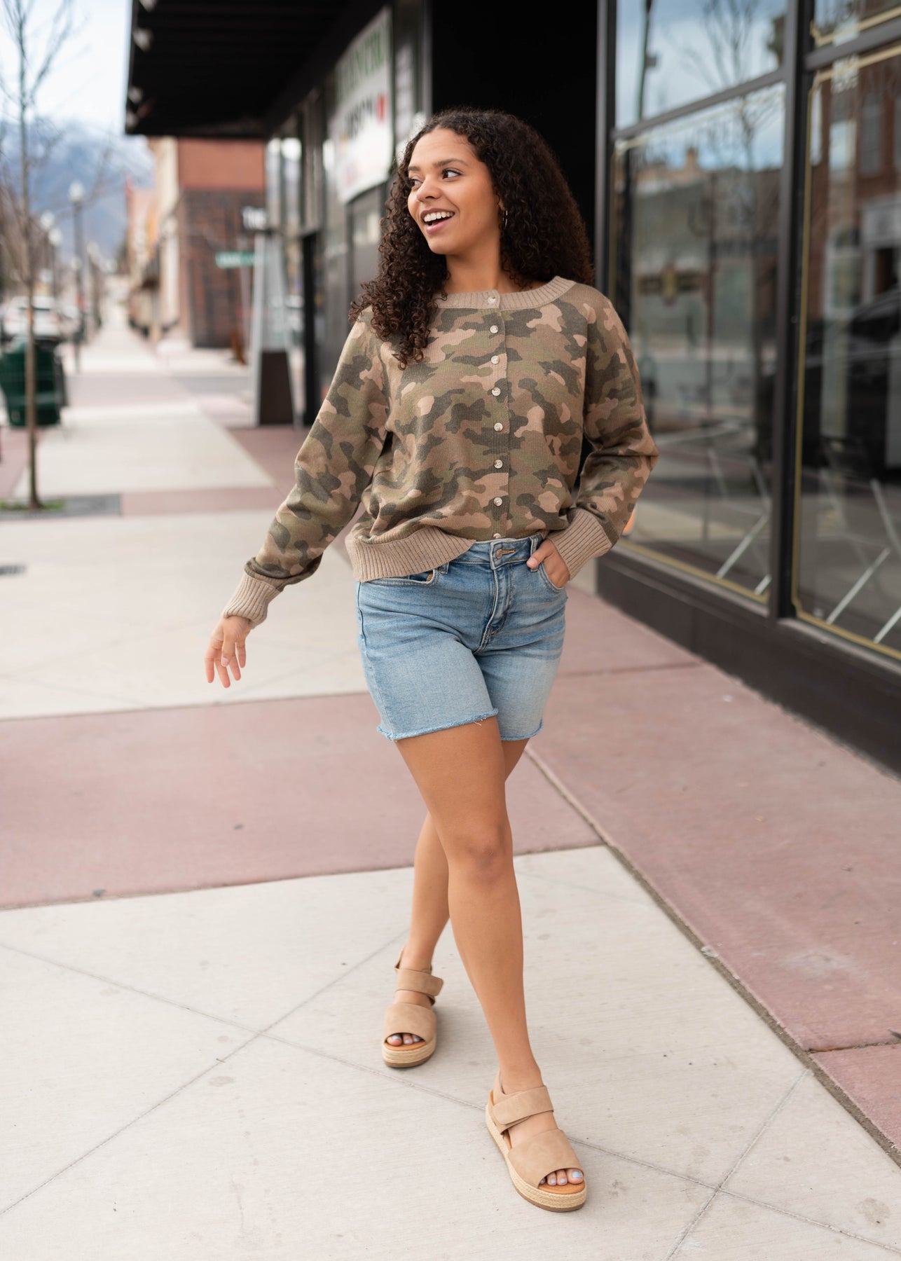 Soft, casual, and a little bit fun — the Iris Camo Cardigan is the perfect lightweight layer for everyday outfits. Designed in a soft camo pattern, this cardigan features a button-up front and a slightly relaxed boat neckline for a laid-back yet polished look. The ribbed trim adds subtle texture, while the super soft, lightweight fabric makes it easy to wear all day long. Whether styled open or buttoned up, it’s a comfortable piece that adds a little personality to your outfit.