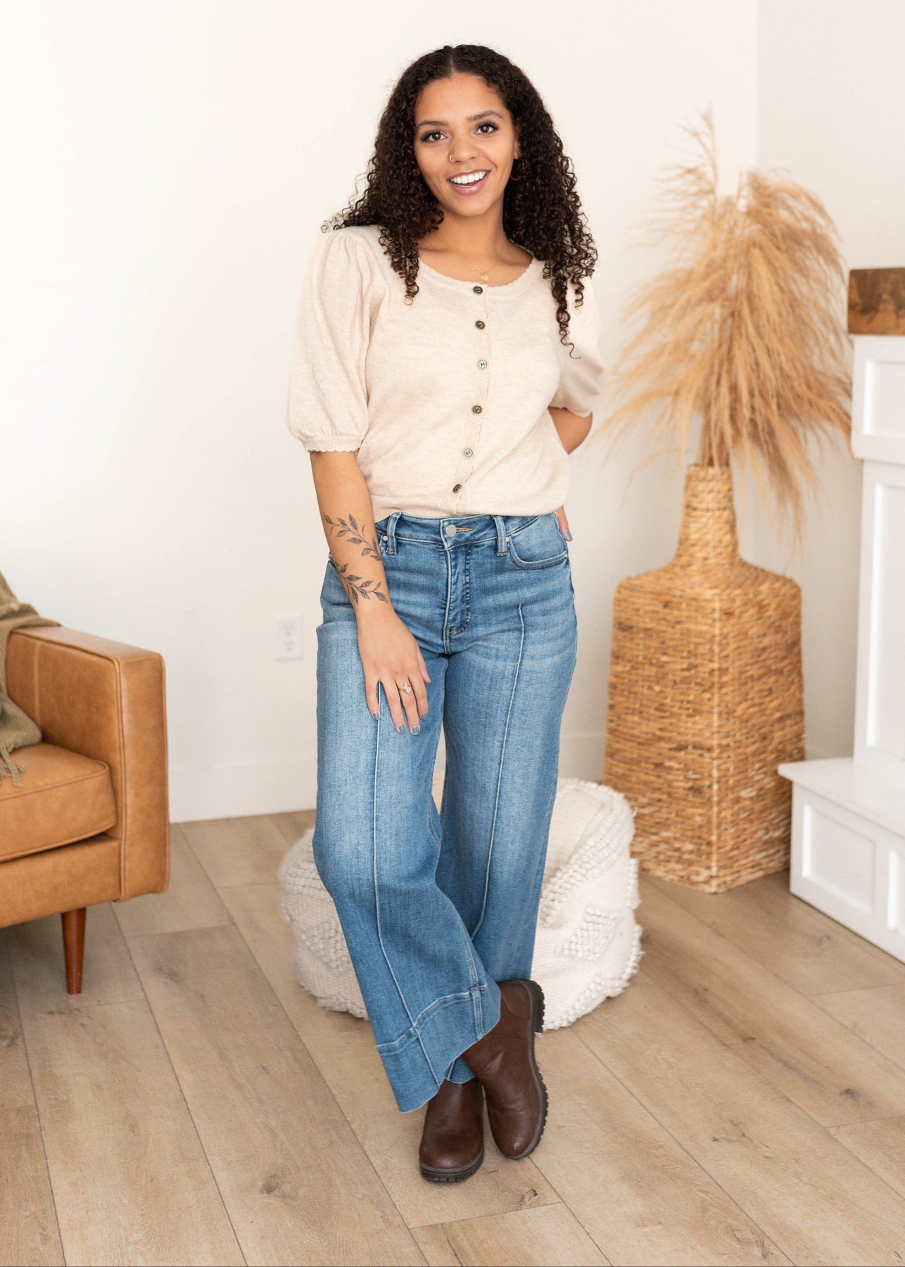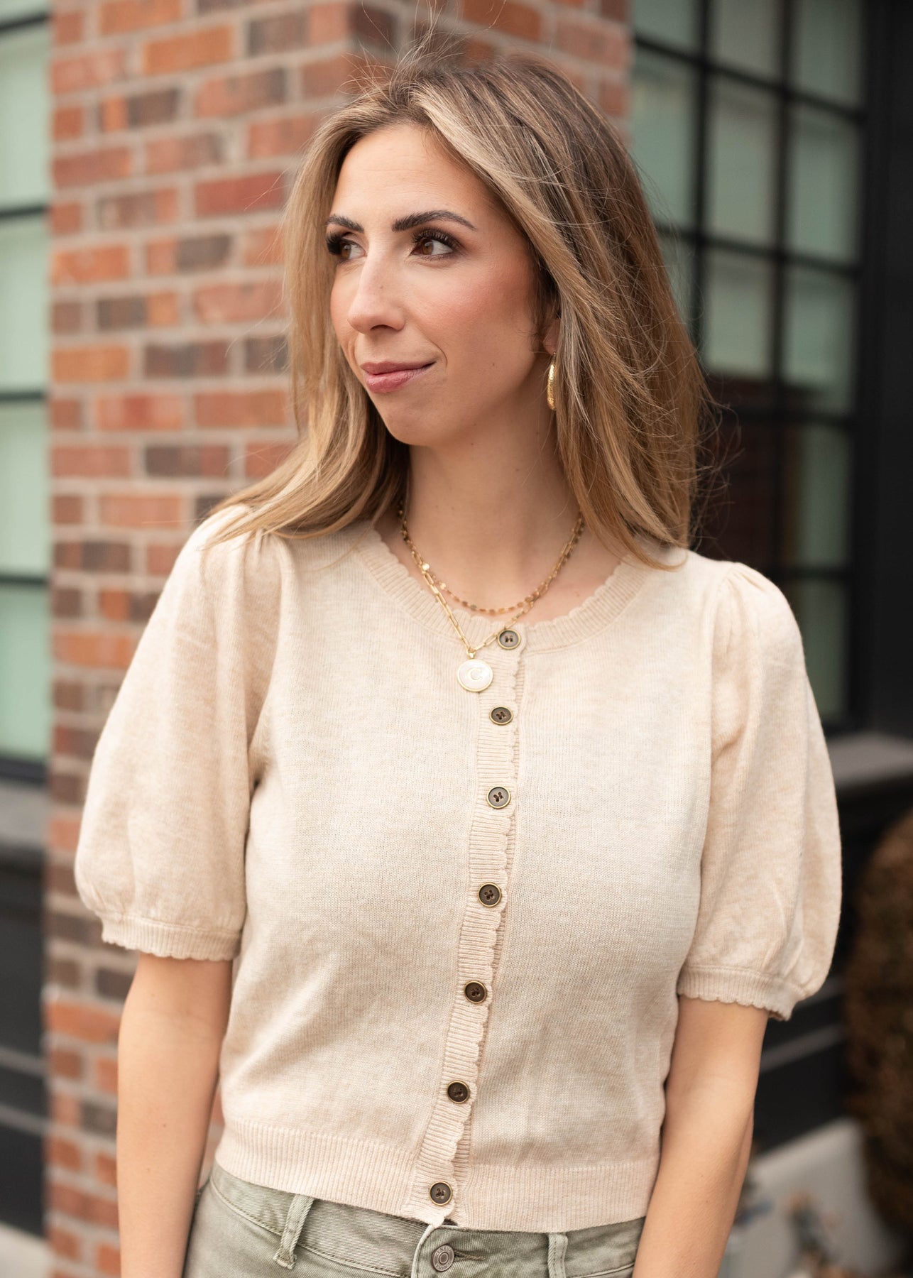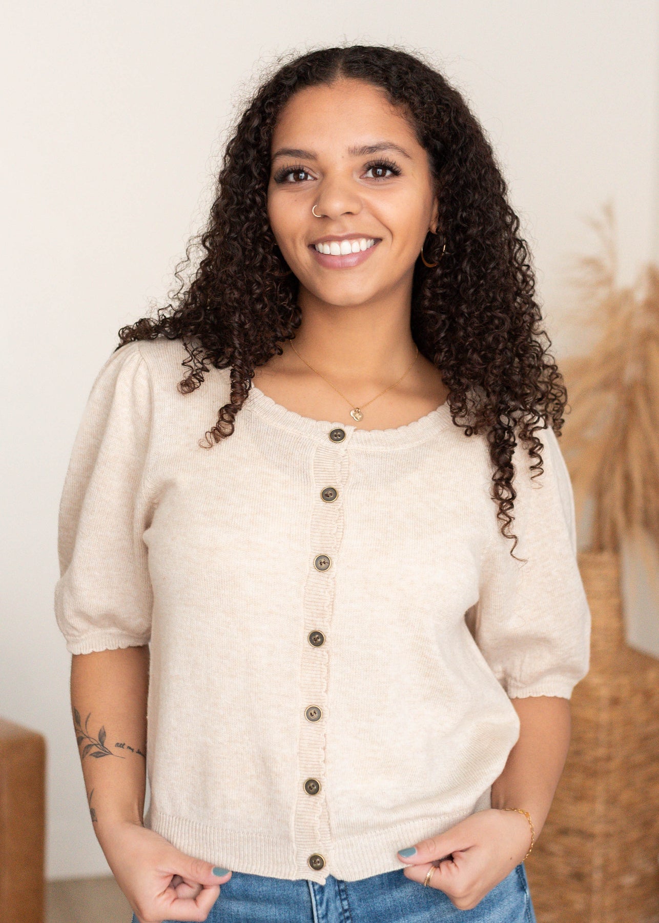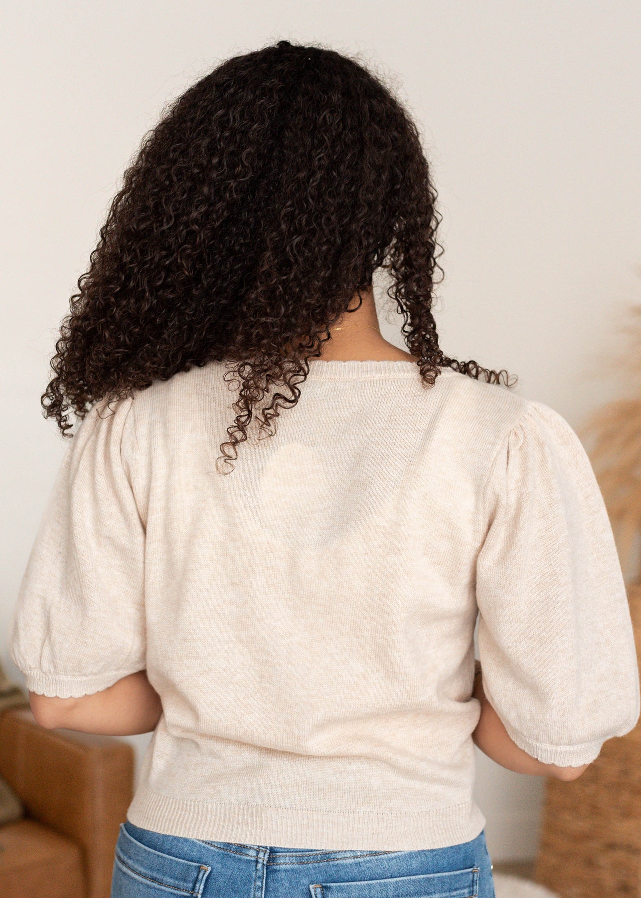 The Zoe Sweater is cozy with a playful twist. Designed with cute puff sleeves, a scoop neckline, and ruffled trim, it brings a soft, feminine feel to a classic button-up sweater. Easy to wear buttoned up or layered open, it’s one you’ll reach for again and again.