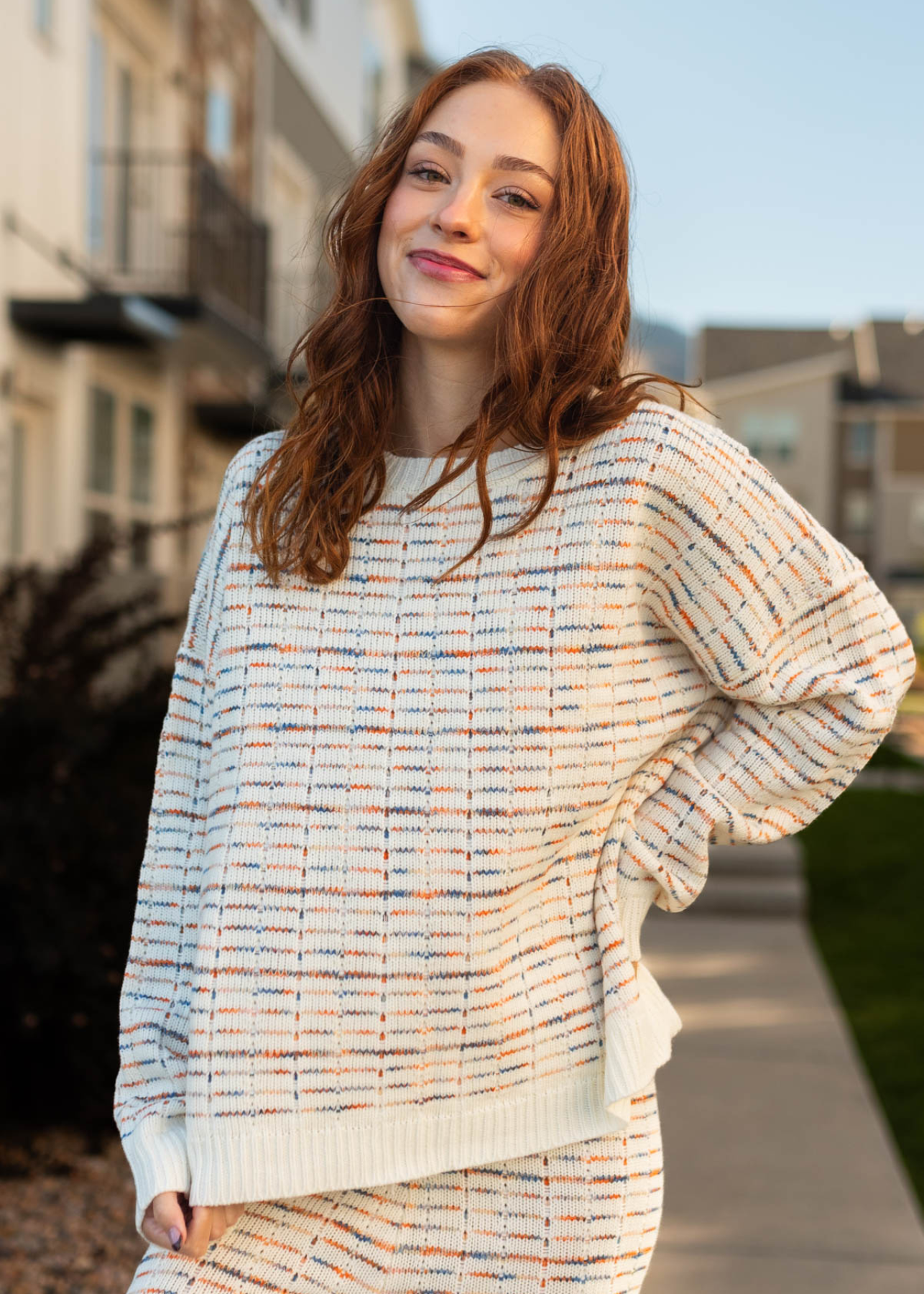 - Ivory background + multi color stripe print