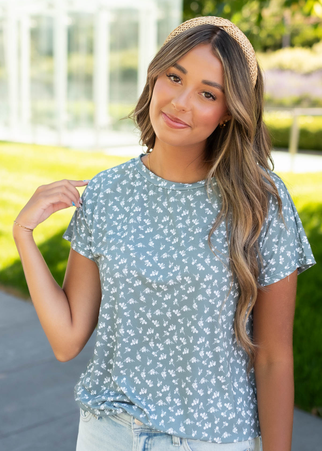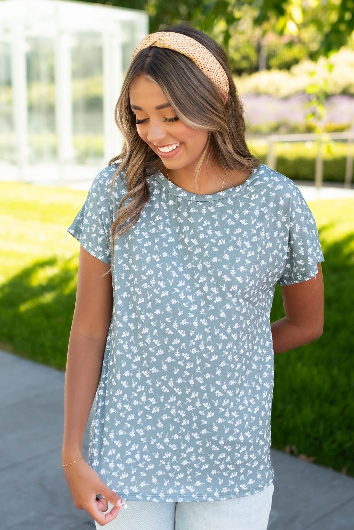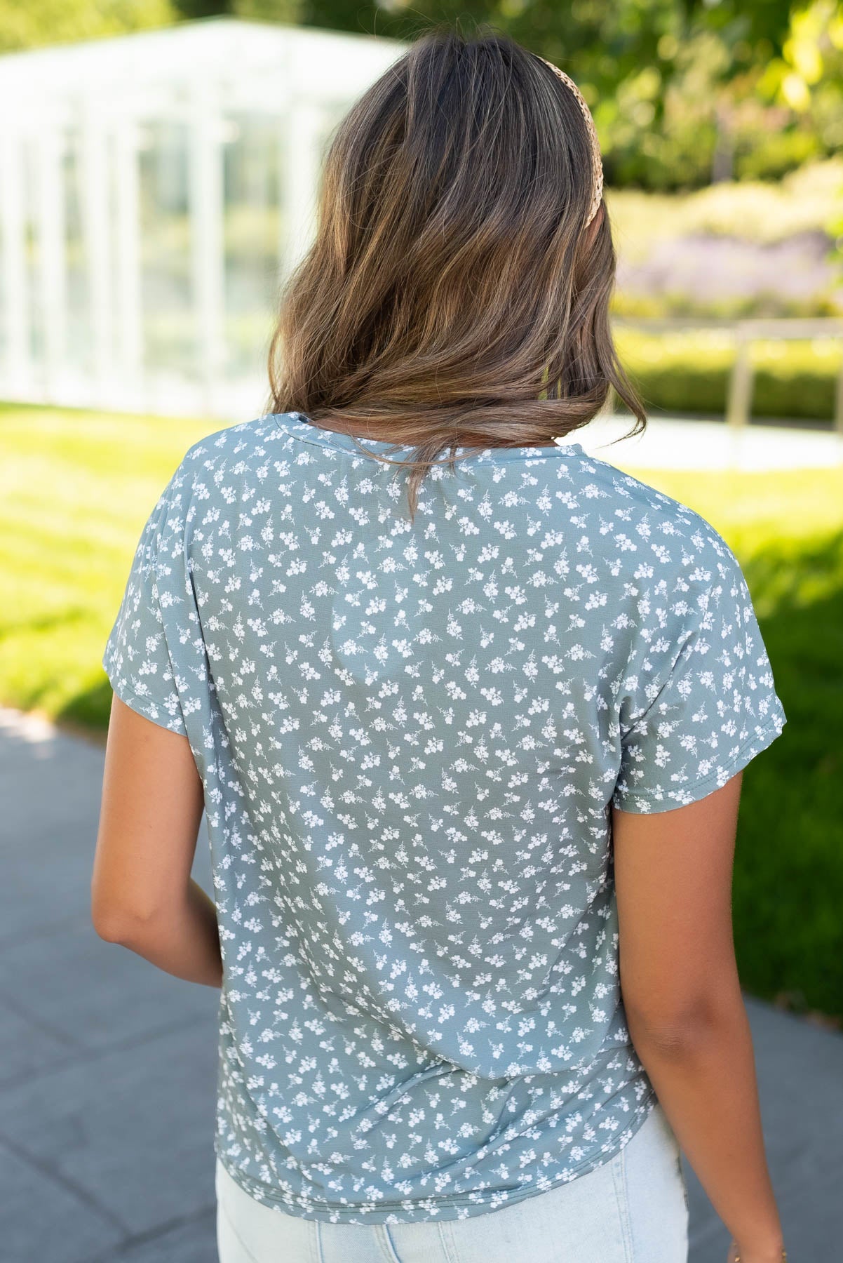 - Subtle white floral print on front and back