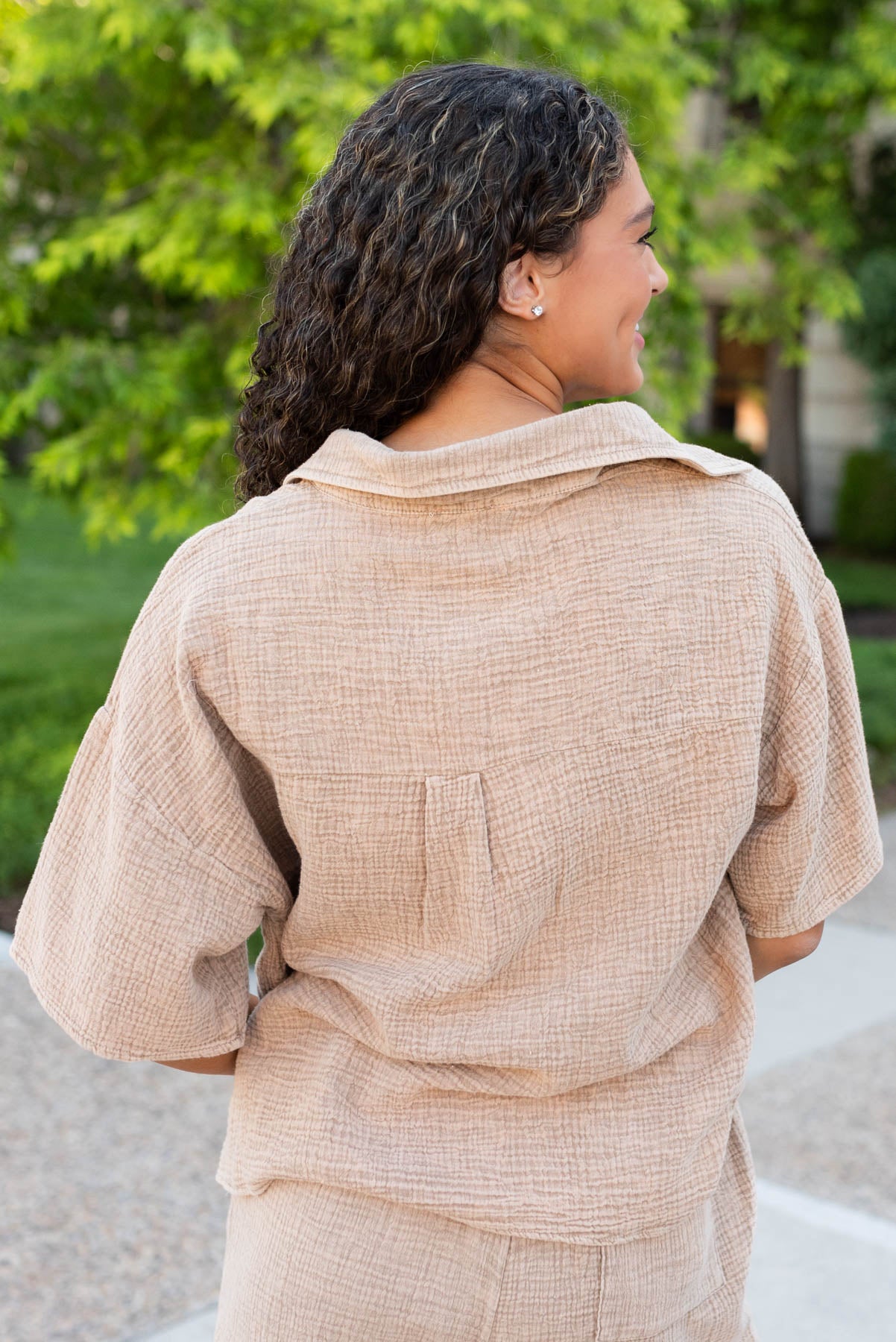 - Cute collar detail and slightly boxy fit