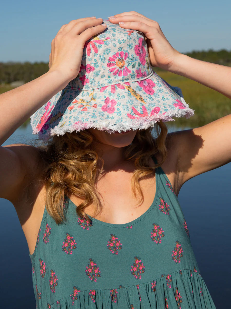 Our distressed bucket hat is simply perfect for the girl-on-the-go! The washed cotton is so soft and floppy, making it completely effortless to style and easy to wear! Our favorite part is the frayed edge detail, it's so fun!