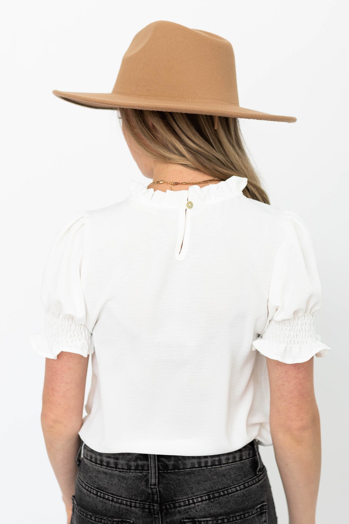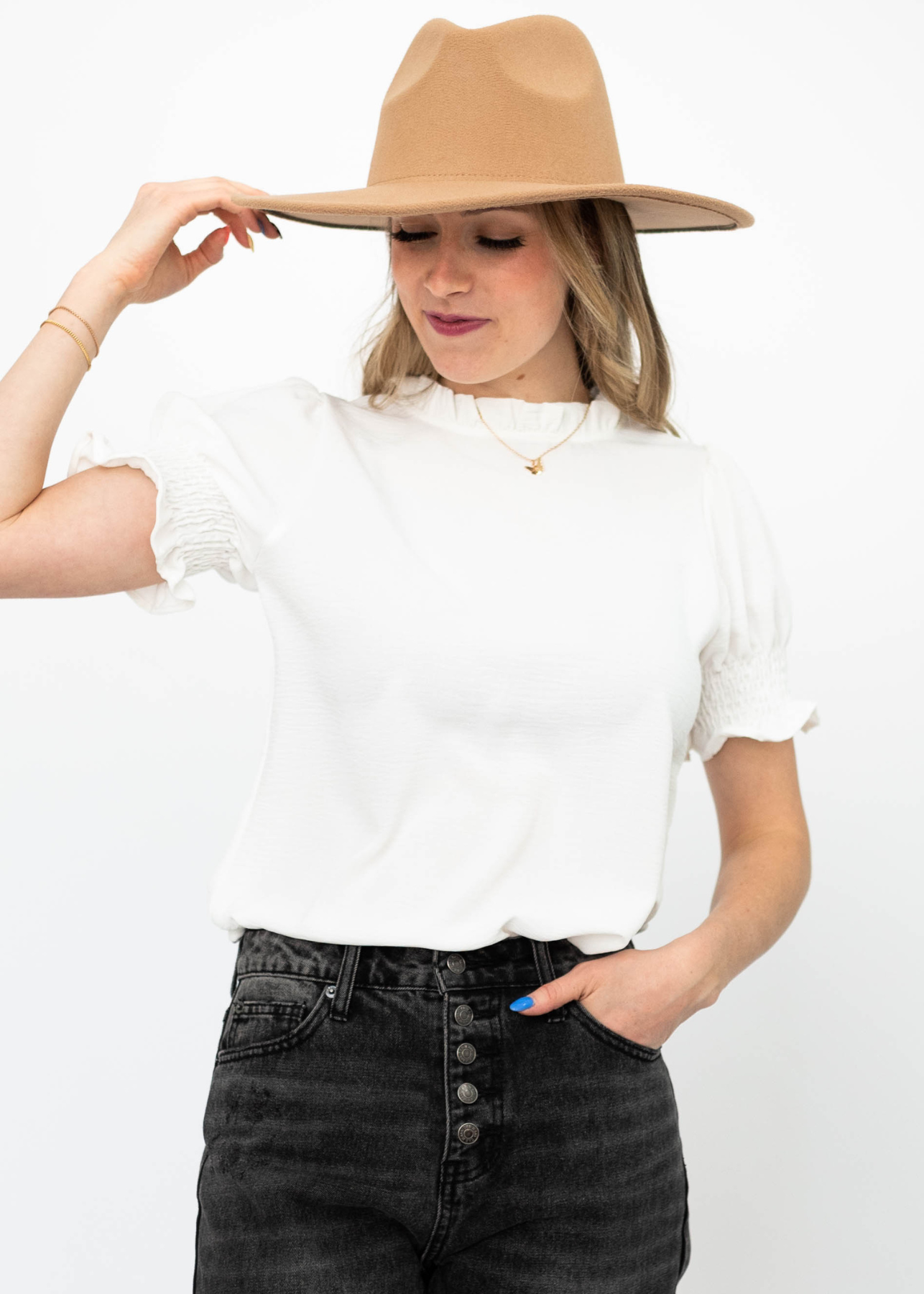Not too long and not too short. Super cute to wear tucked in or out. Super cute top on!