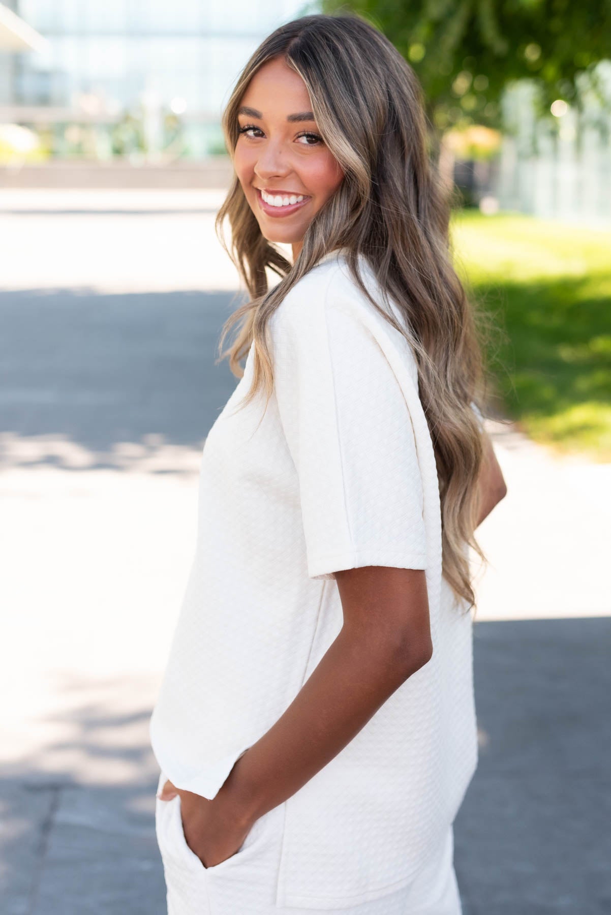 - Slightly oversized, boxy fit