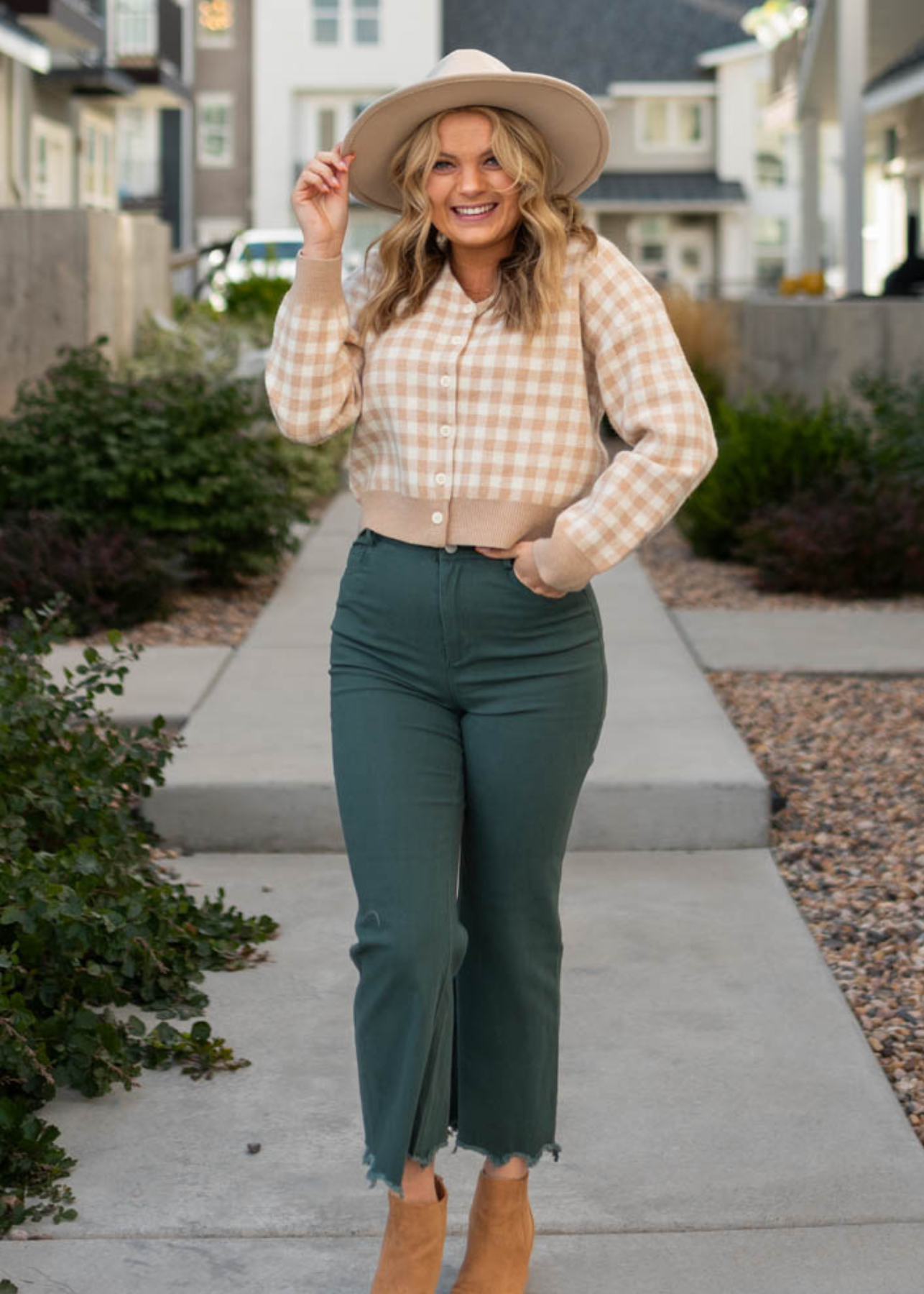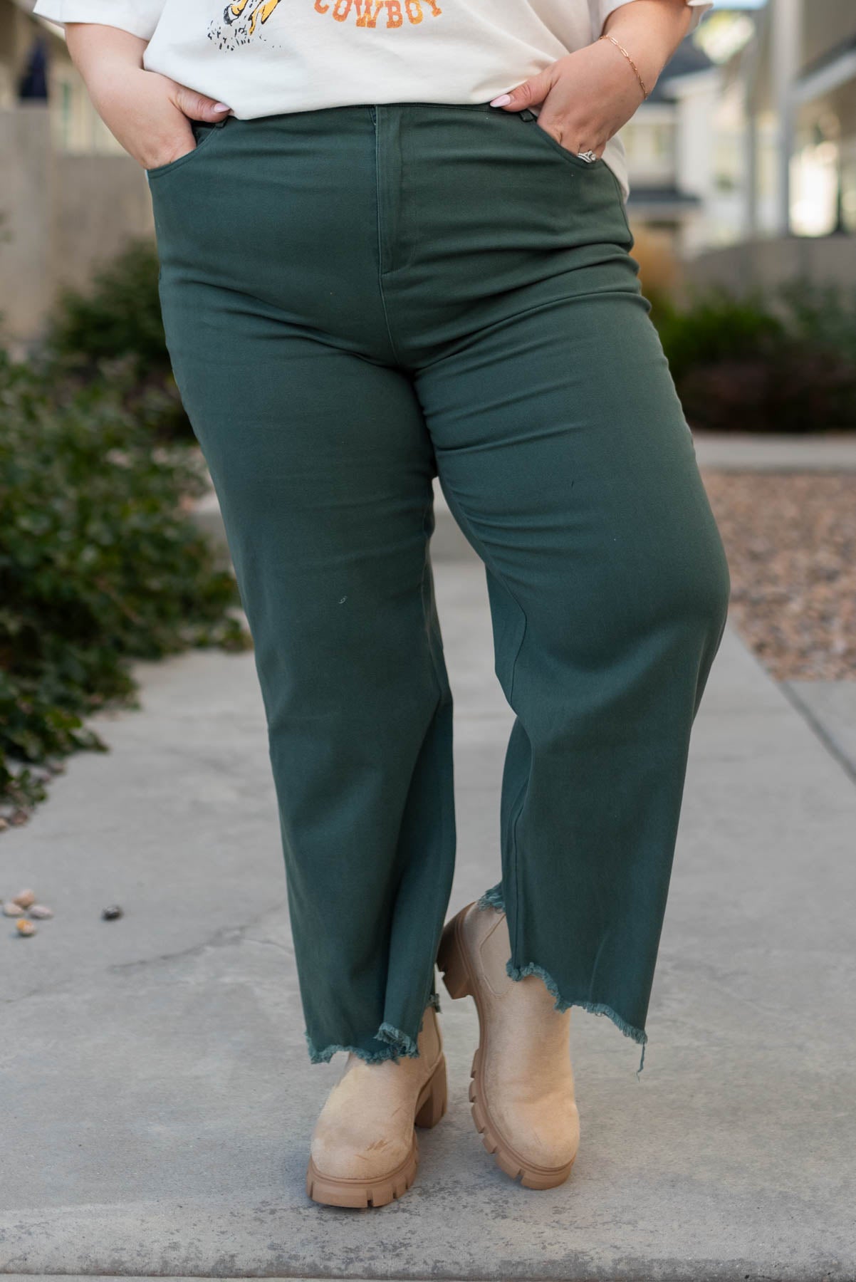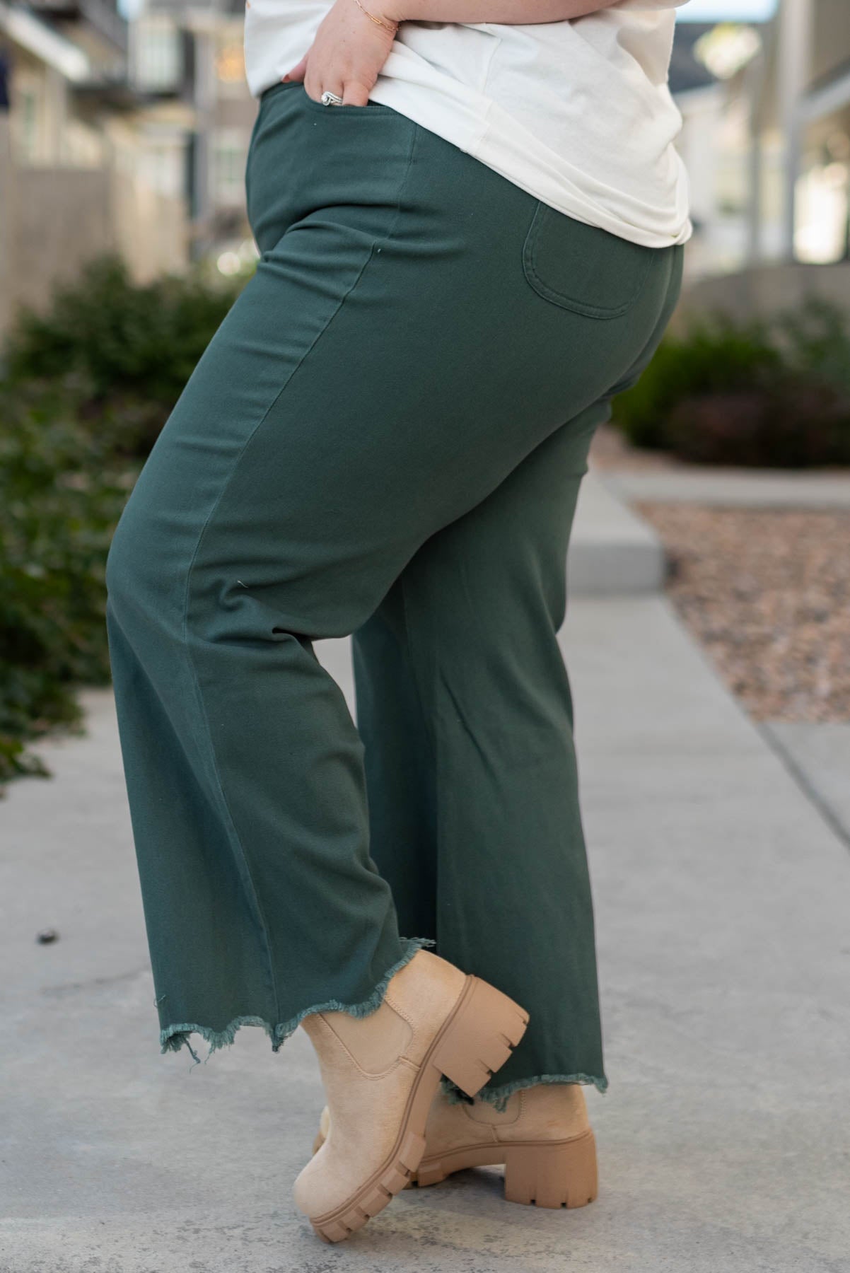- High waisted + slight flare cute with a raw hem