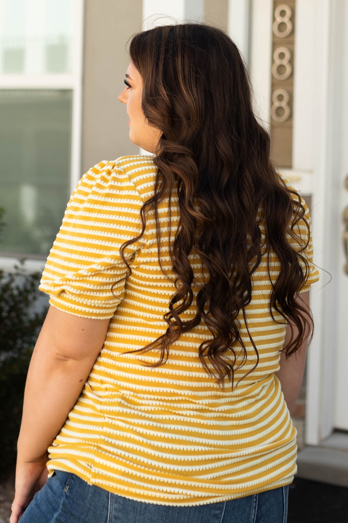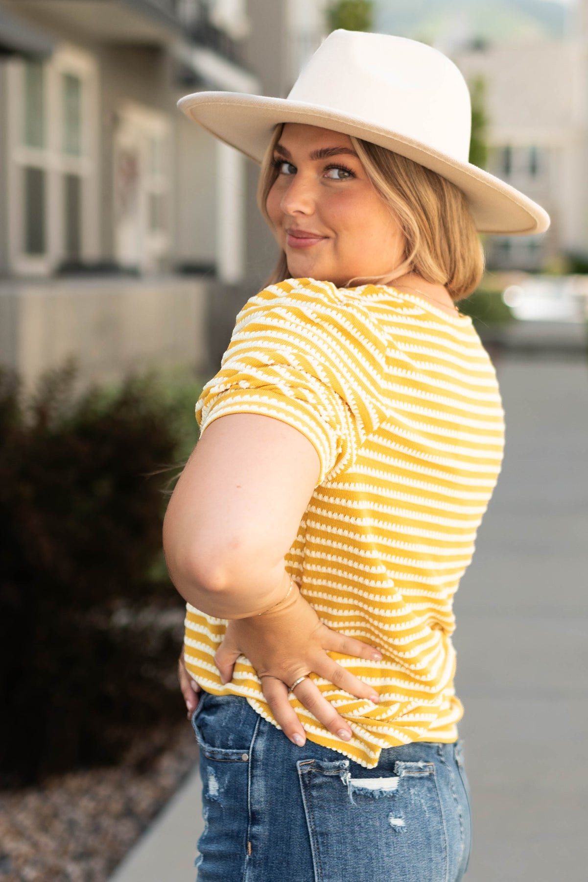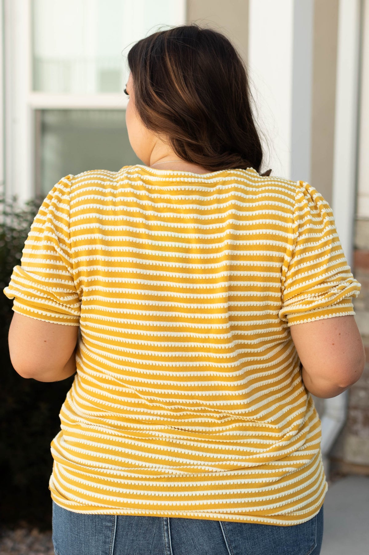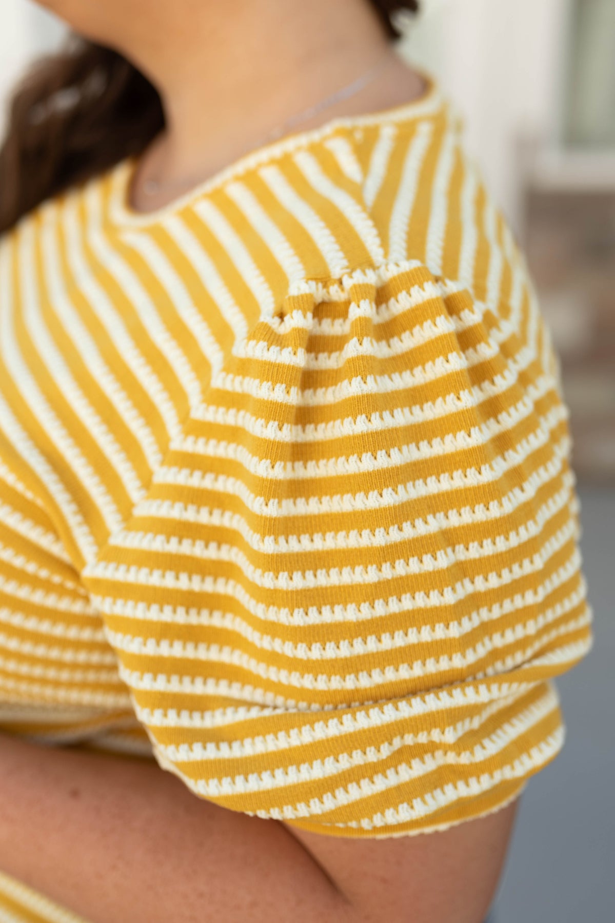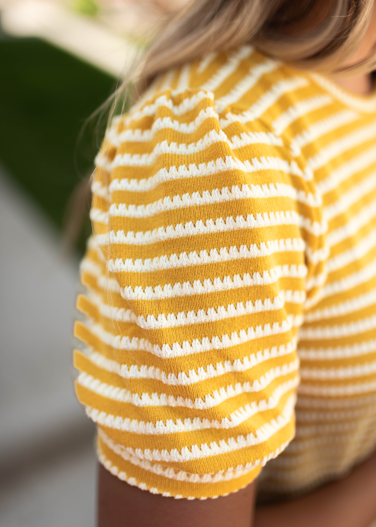 - Summer-y mustard with white striped print