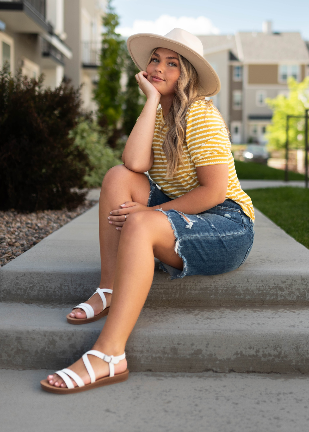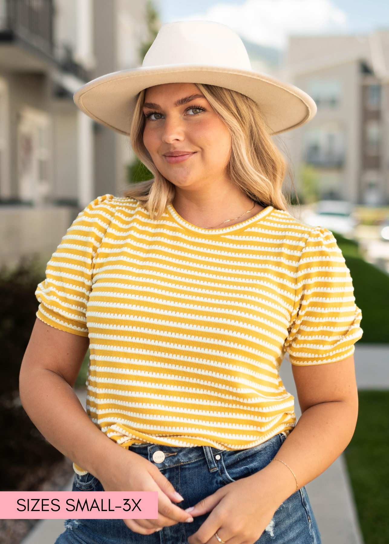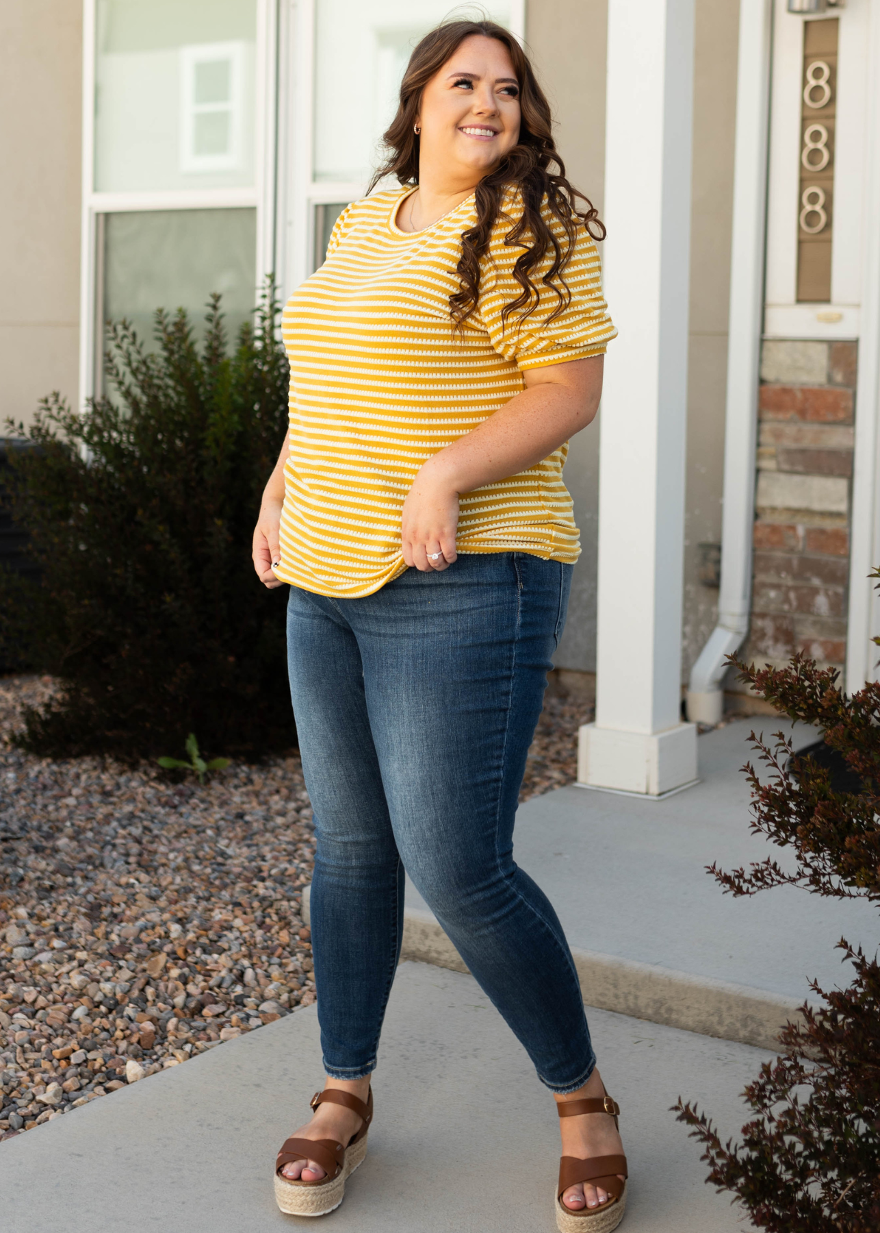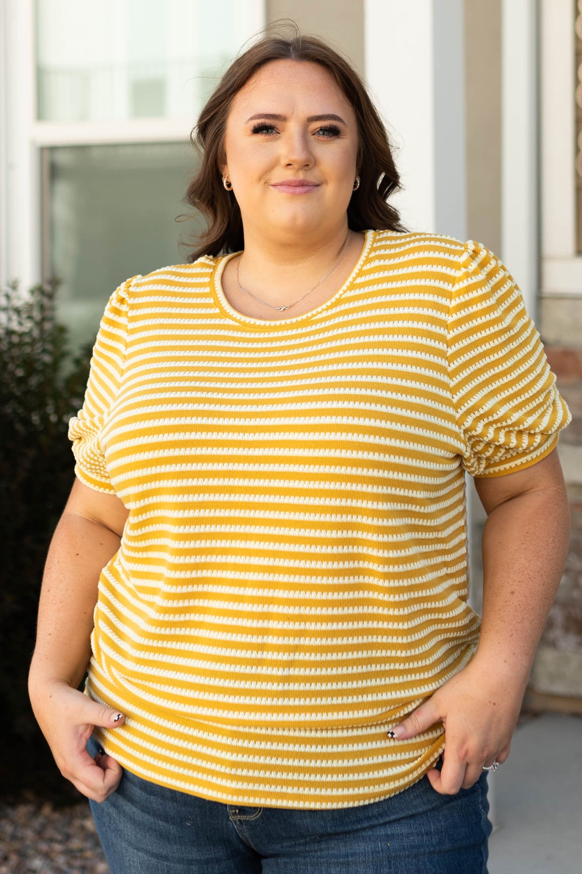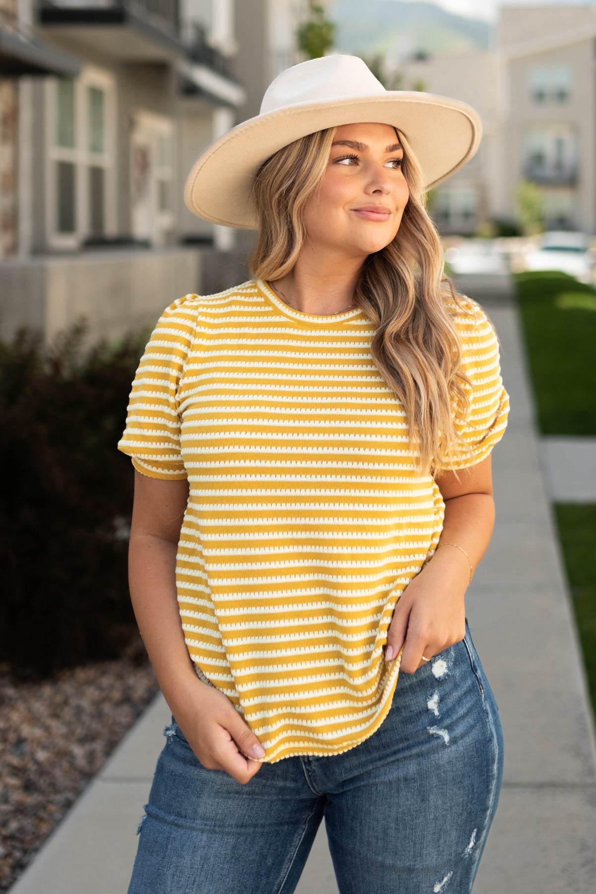 - Summer-y mustard with white striped print