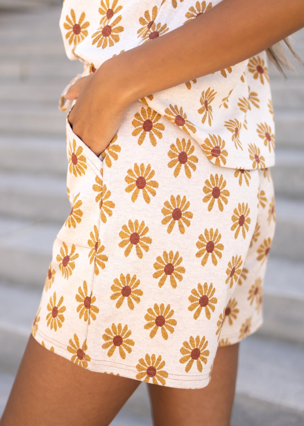 - Adorable cream + mustard daisy print