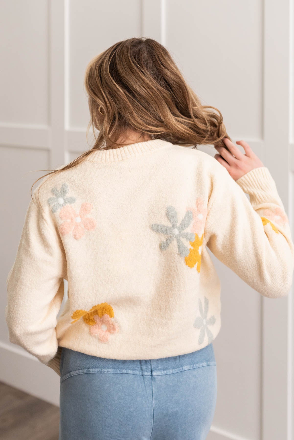 - Pretty cream color with pastel floral that's perfect for winter and spring