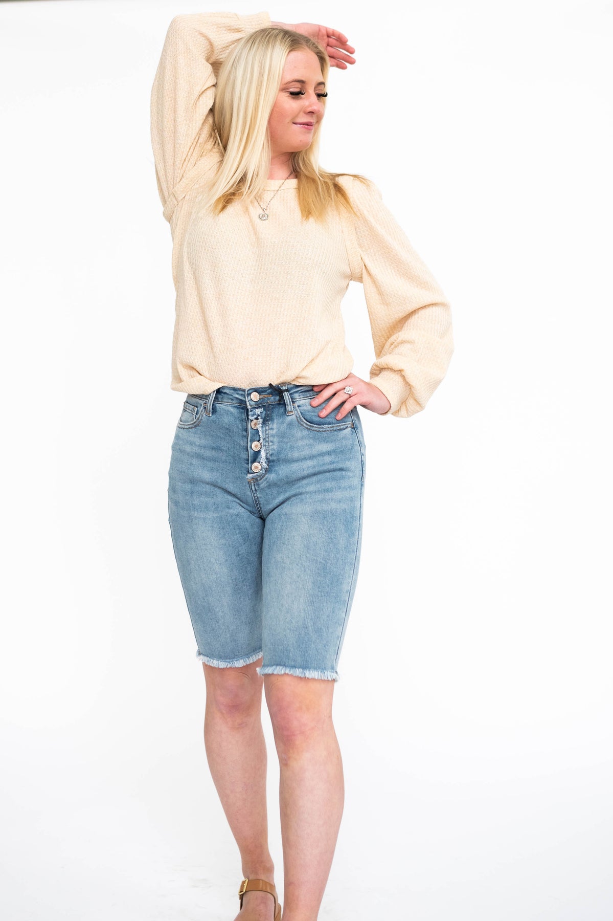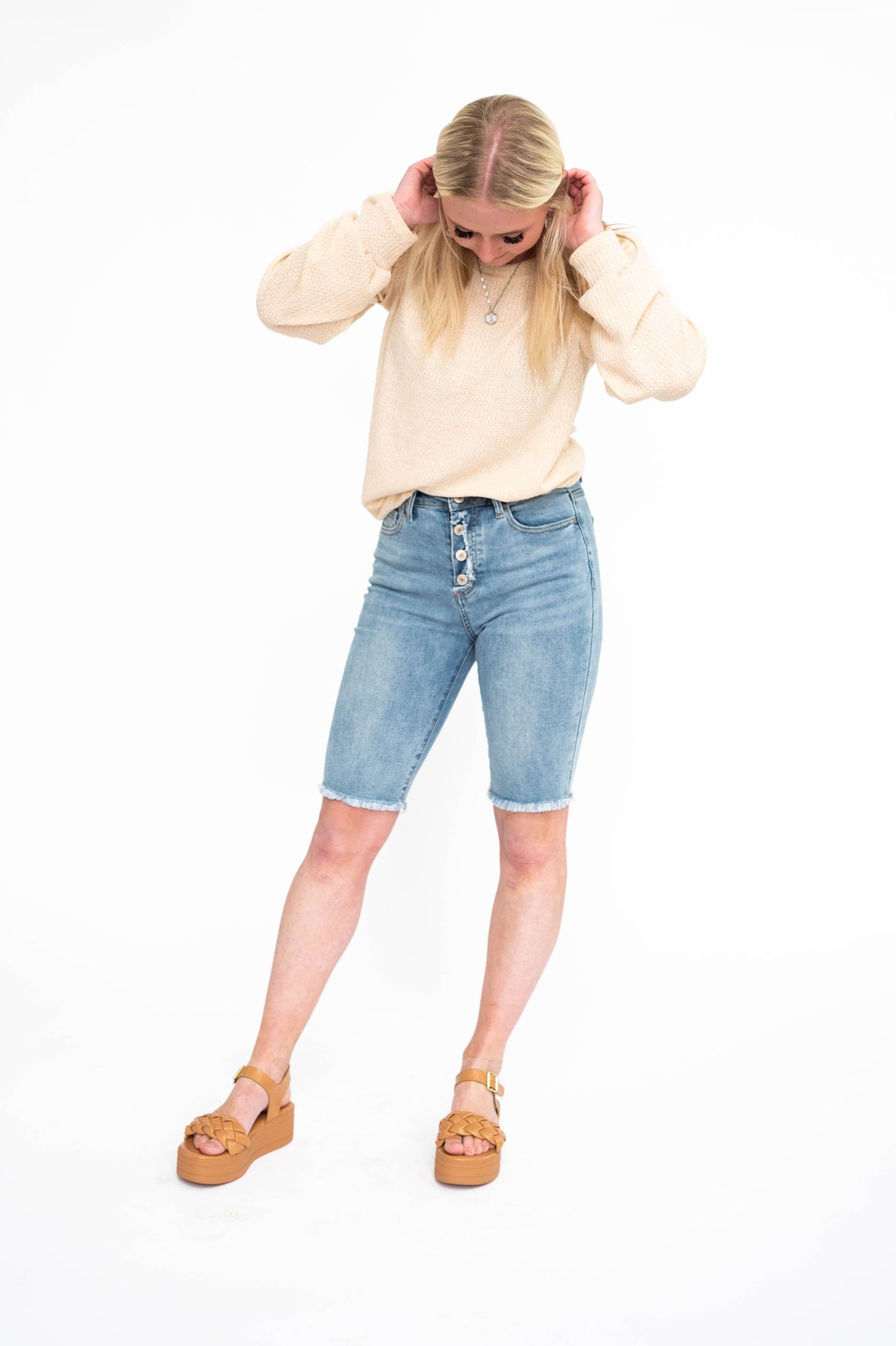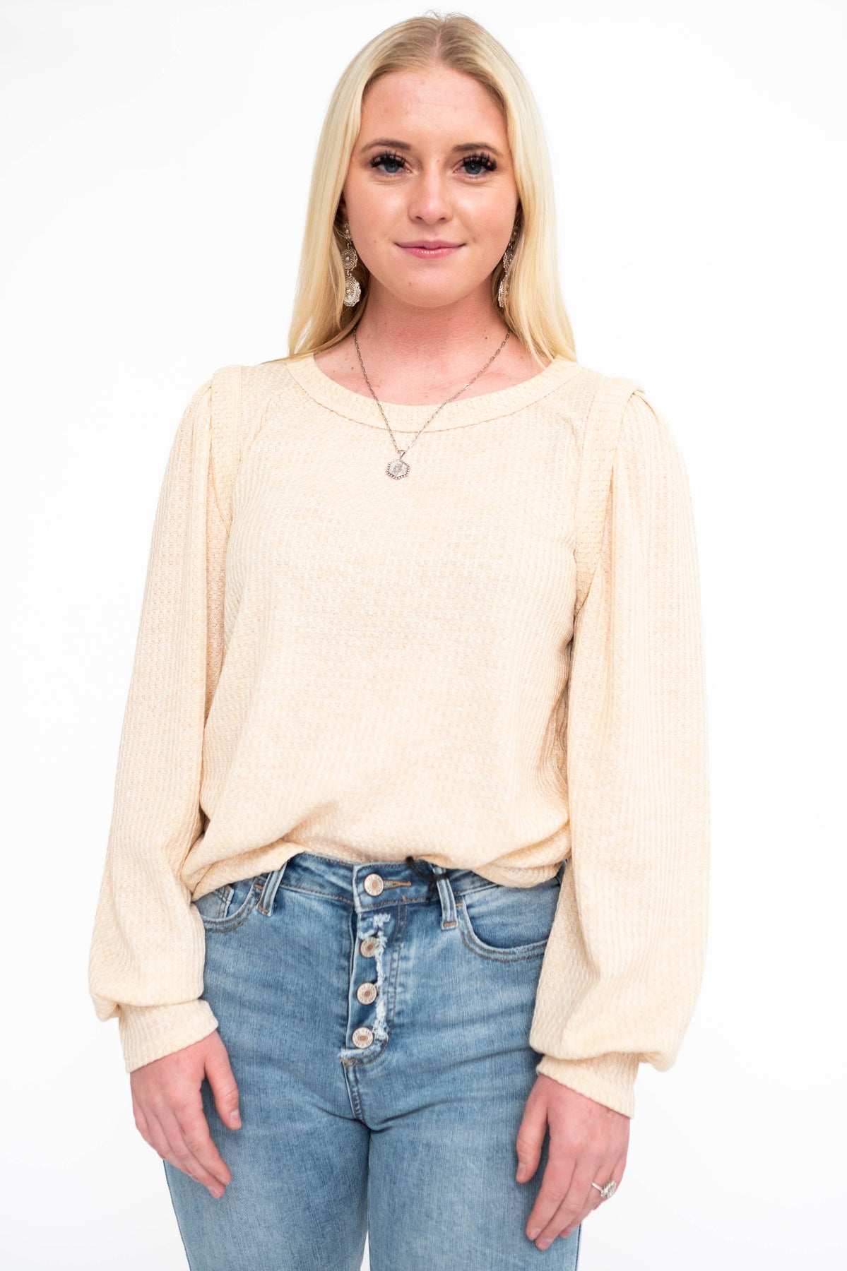 - Neutral oatmeal + soft waffle knit fabric that's lightweight so you won't overheat