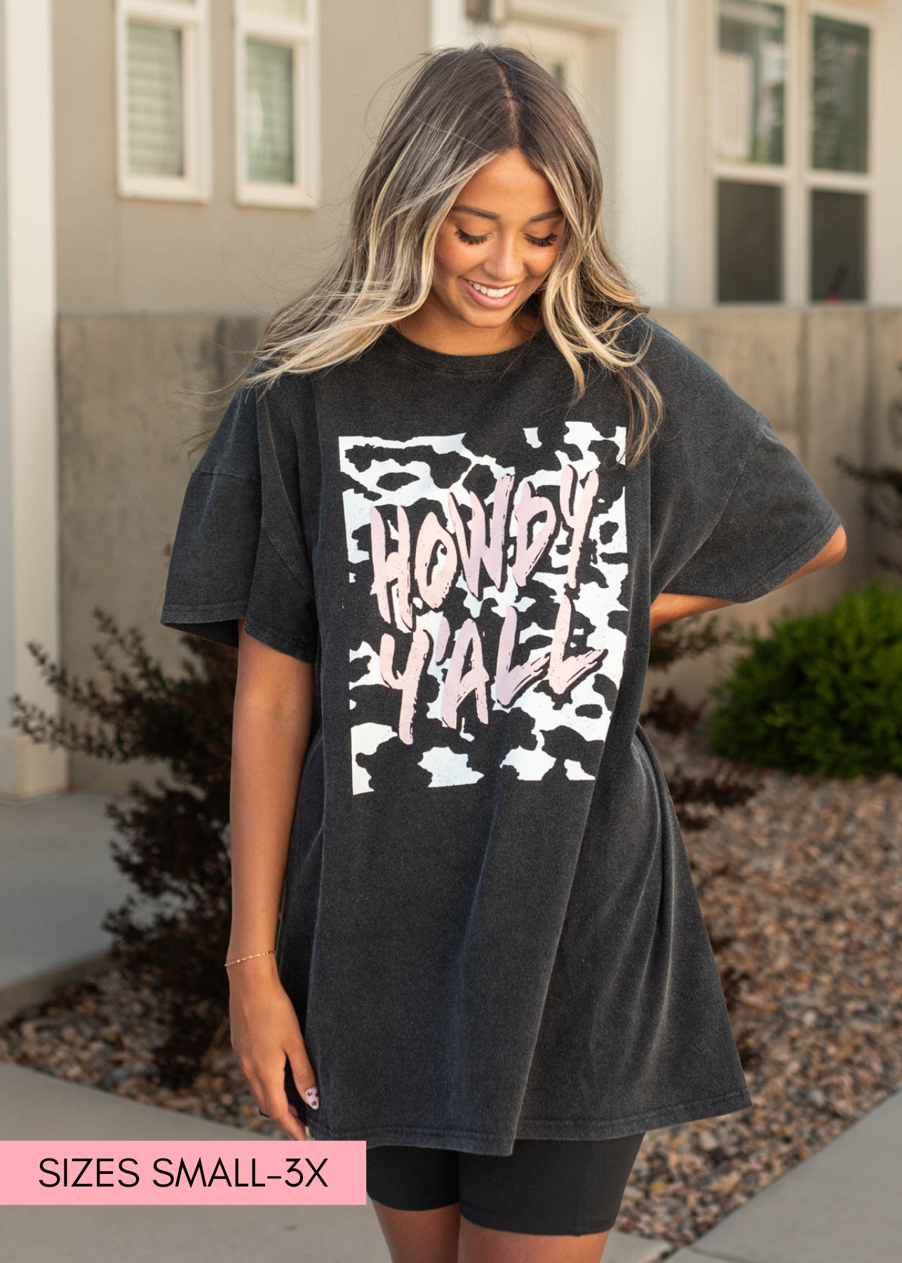 - Charcoal with cute "Howdy Ya'll" graphic with cow print background