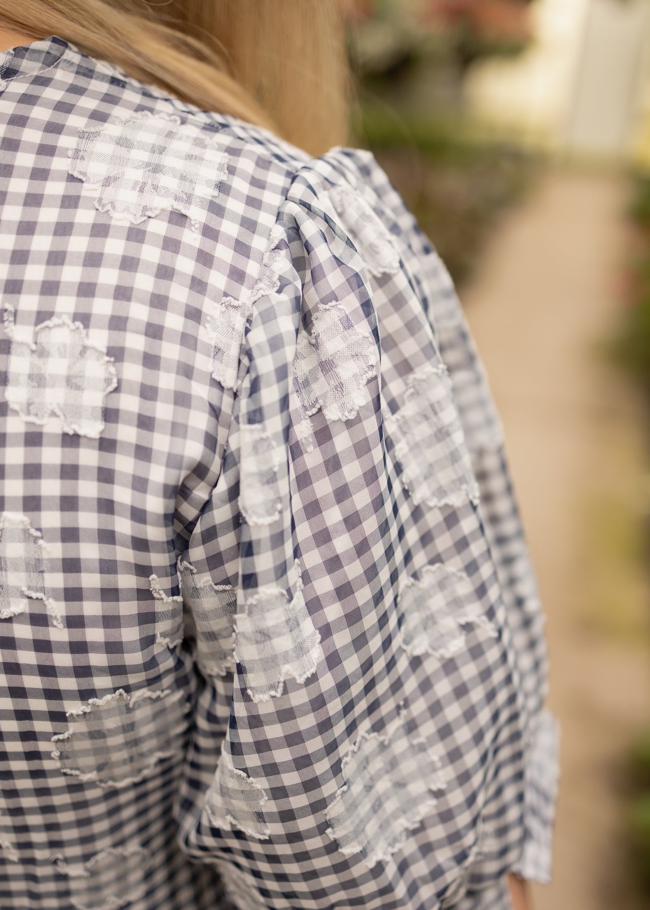 - Textured floral + gingham print