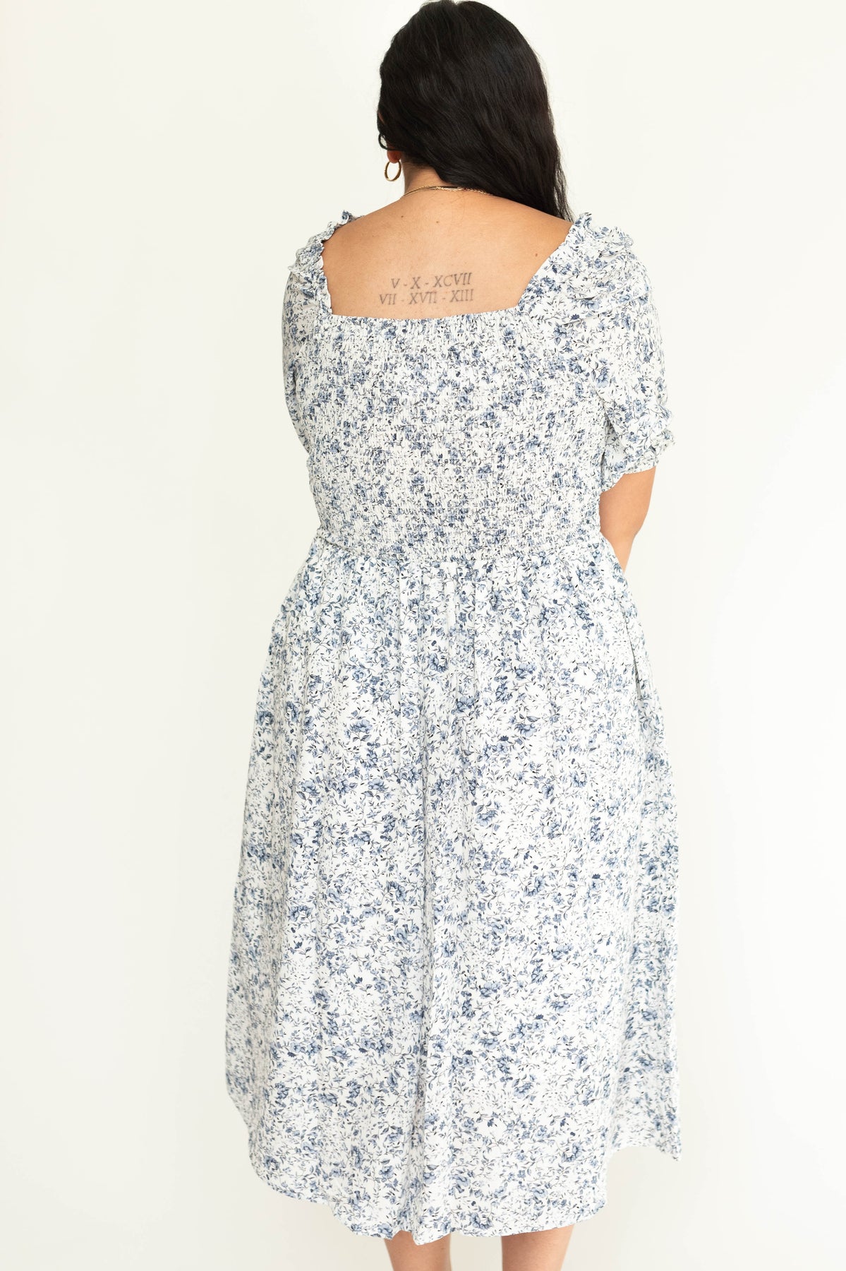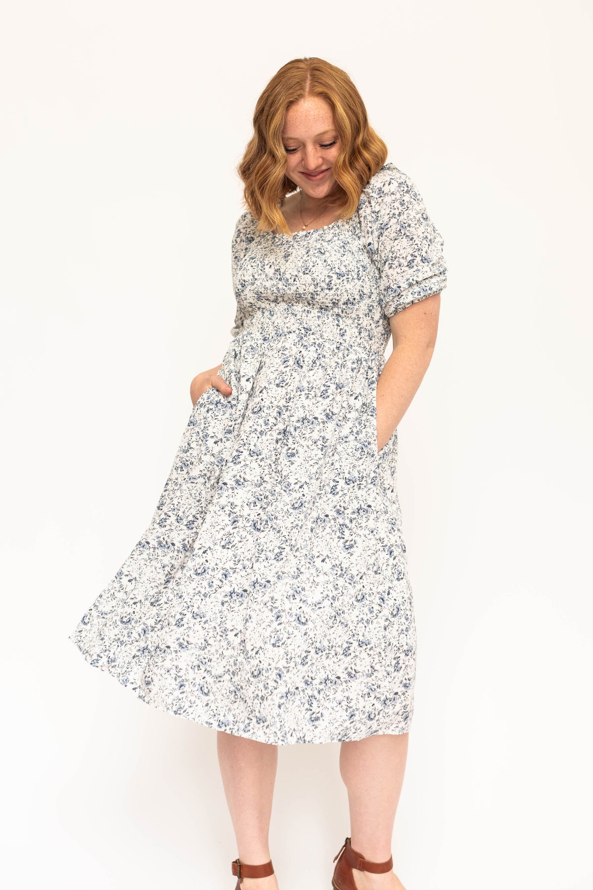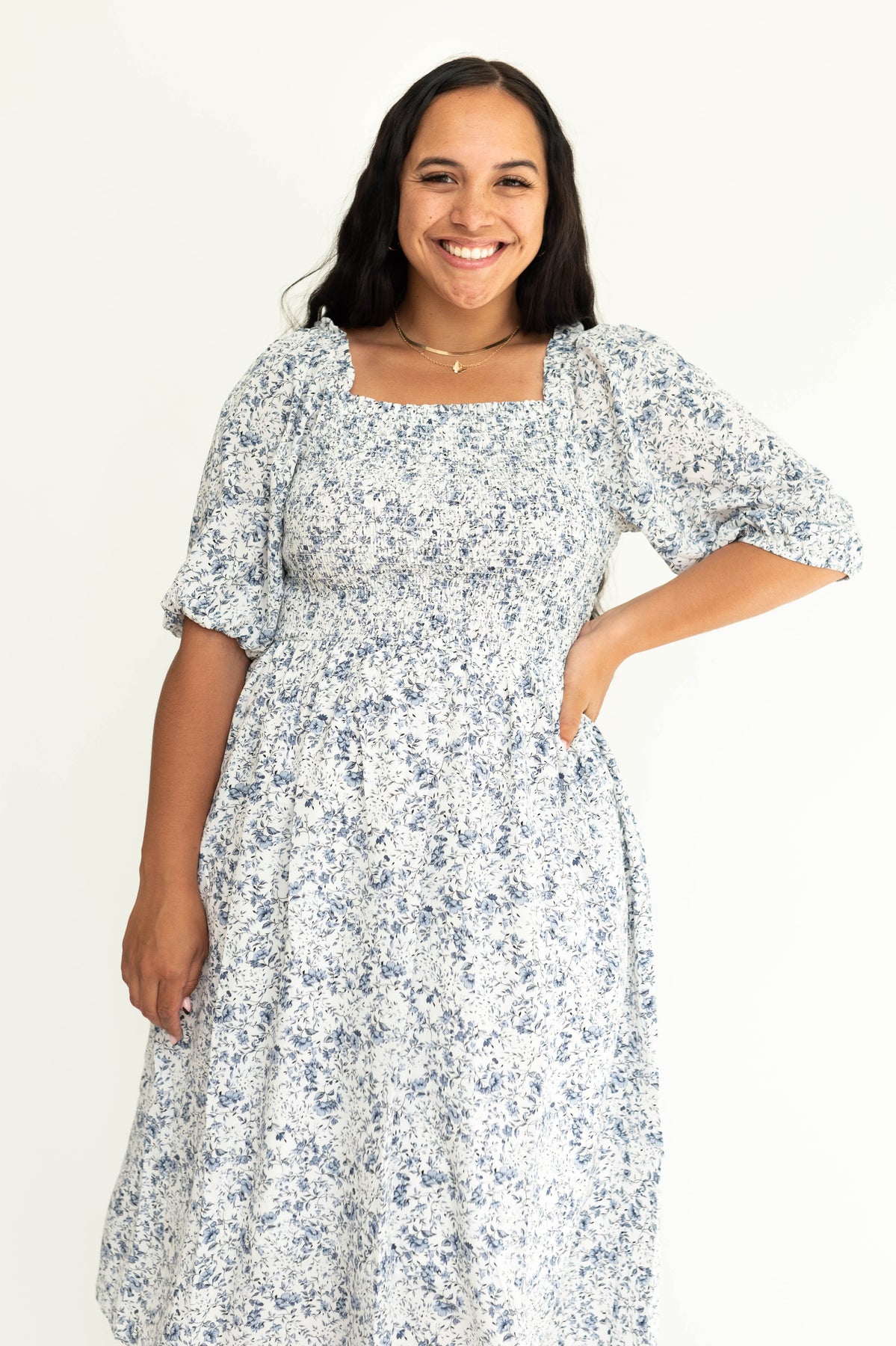 - Runs TTS with a smocked bodice & elastic waistband. Size down if in-between