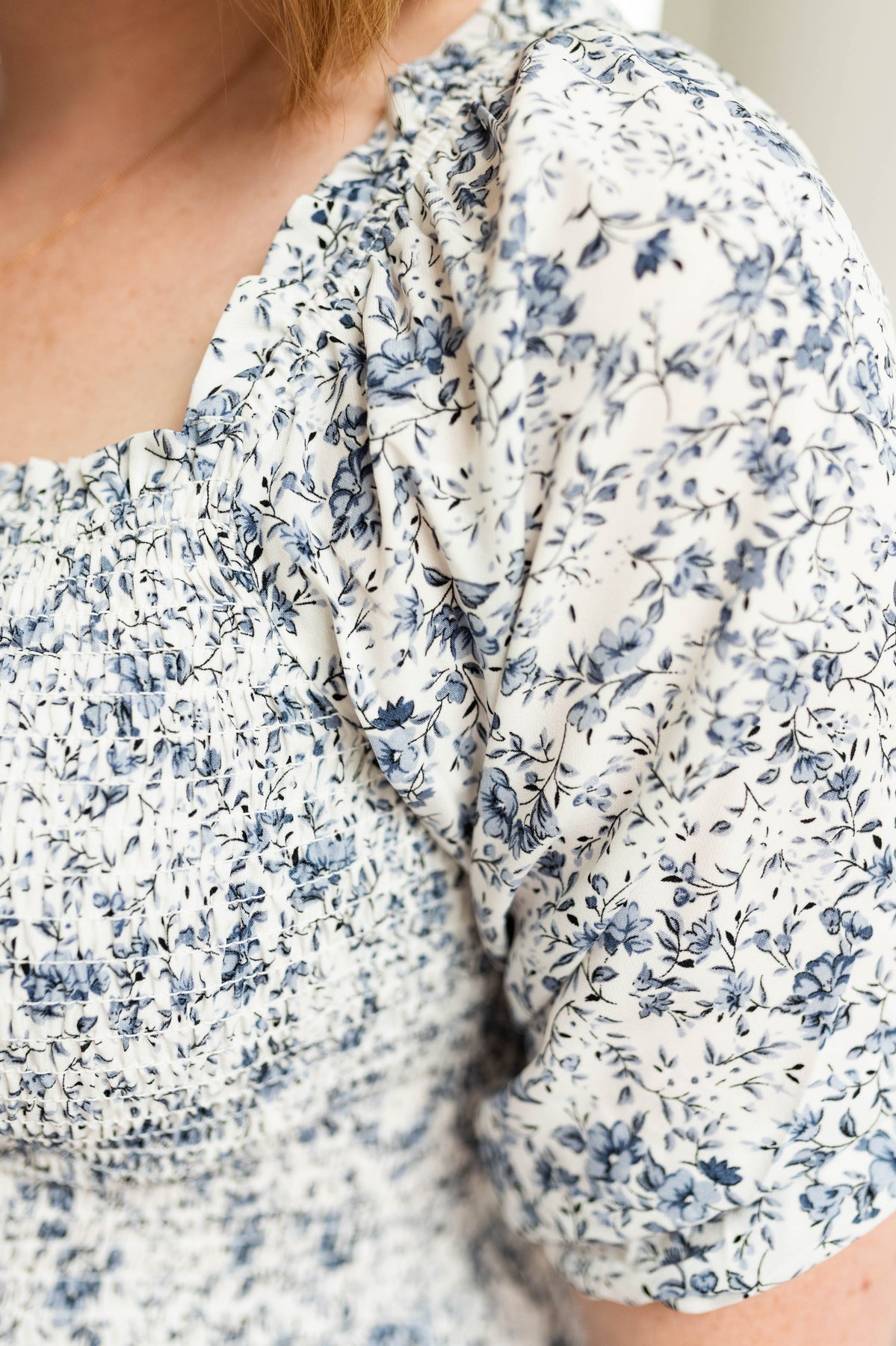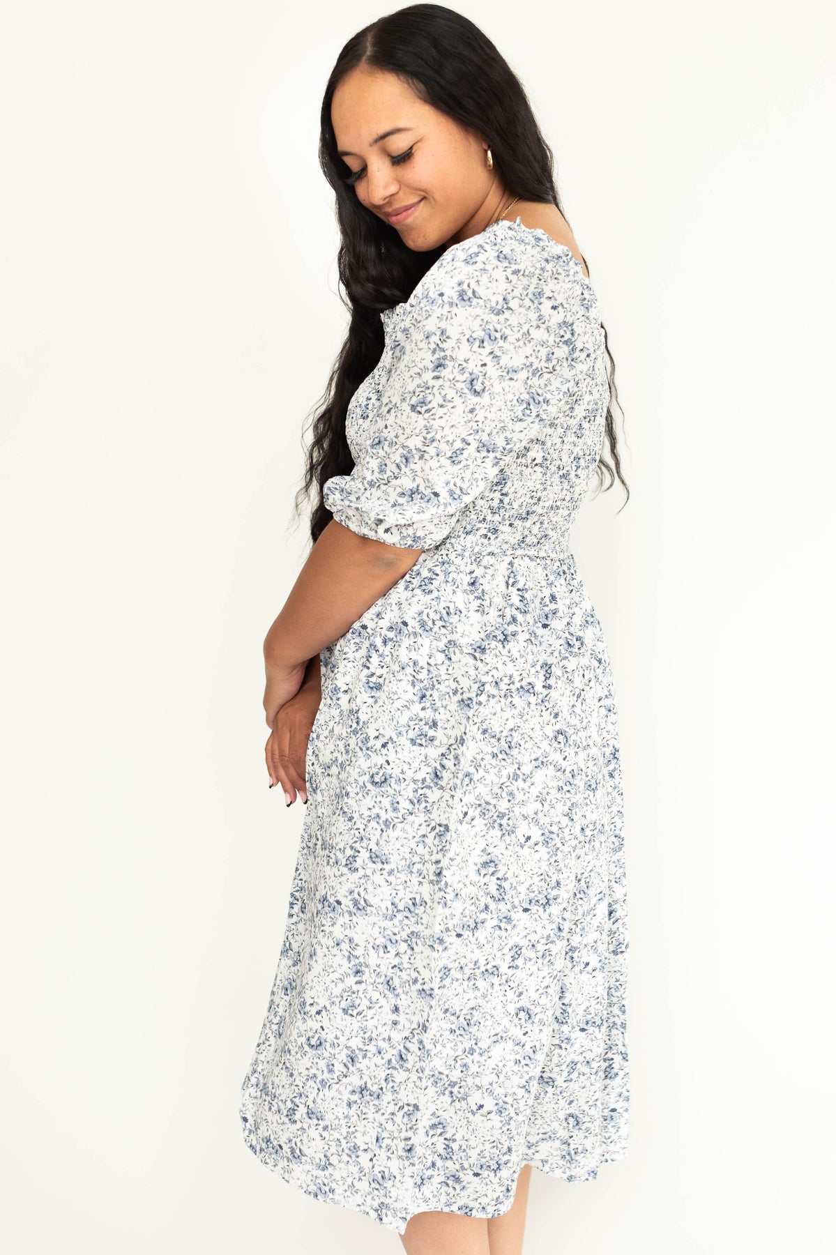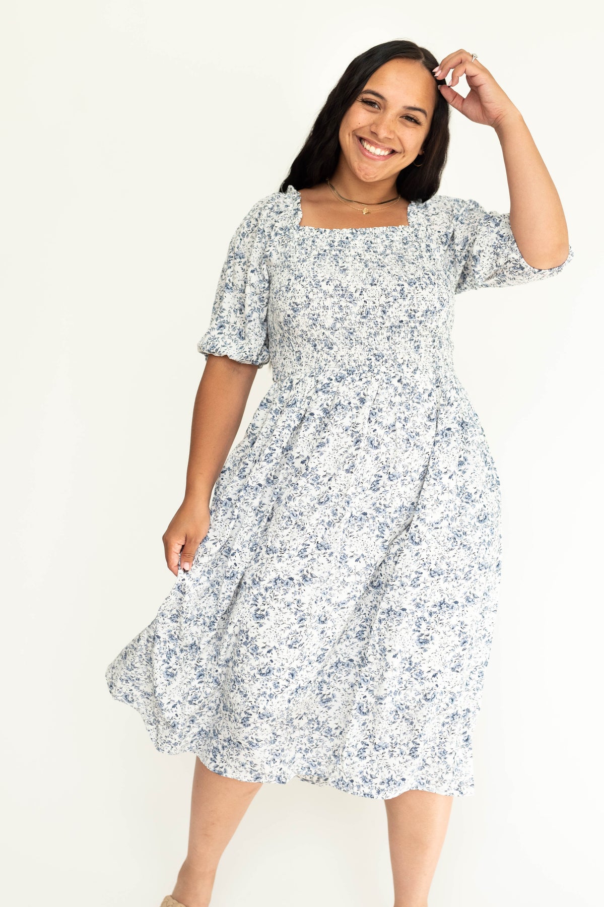 - Runs TTS with a smocked bodice & elastic waistband. Size down if in-between