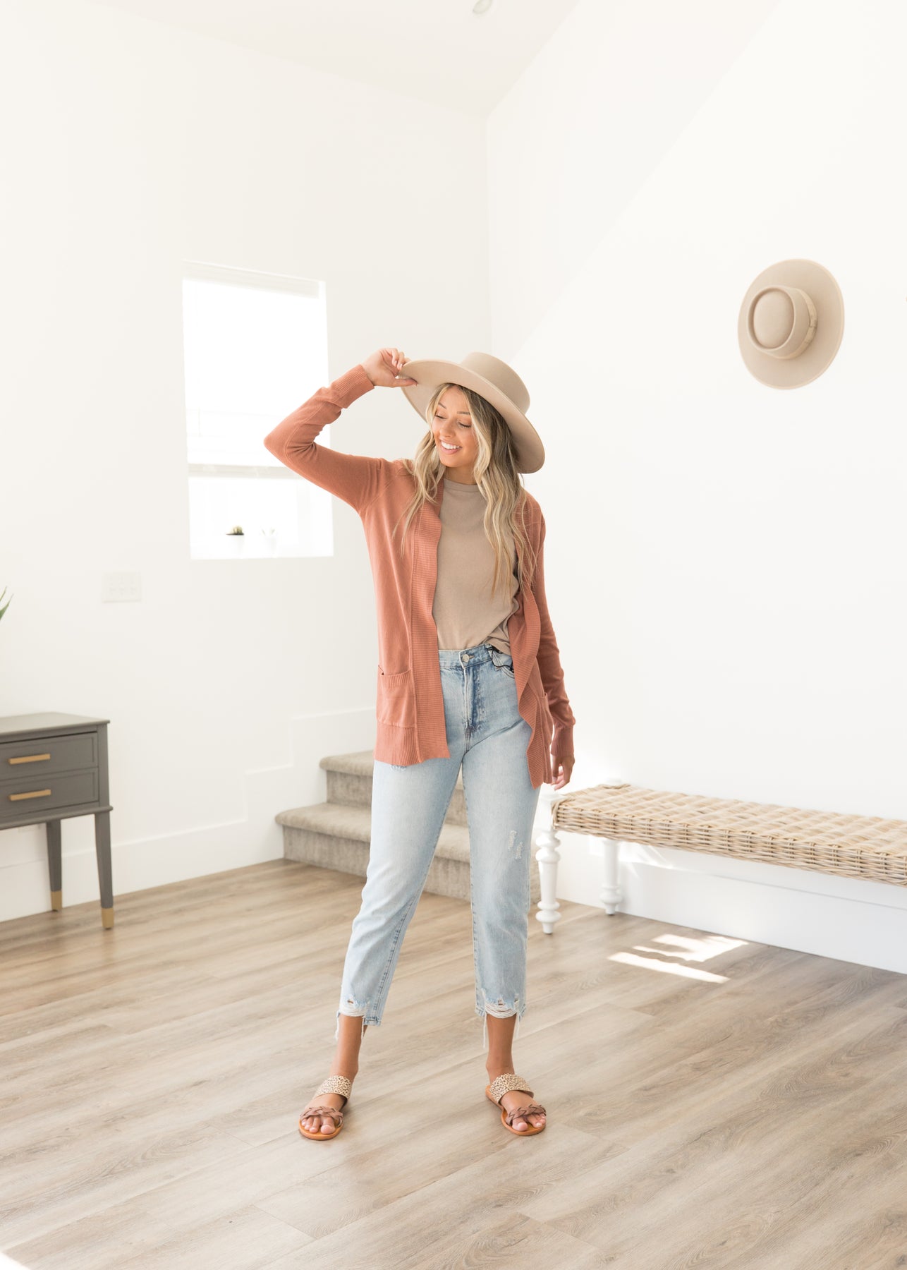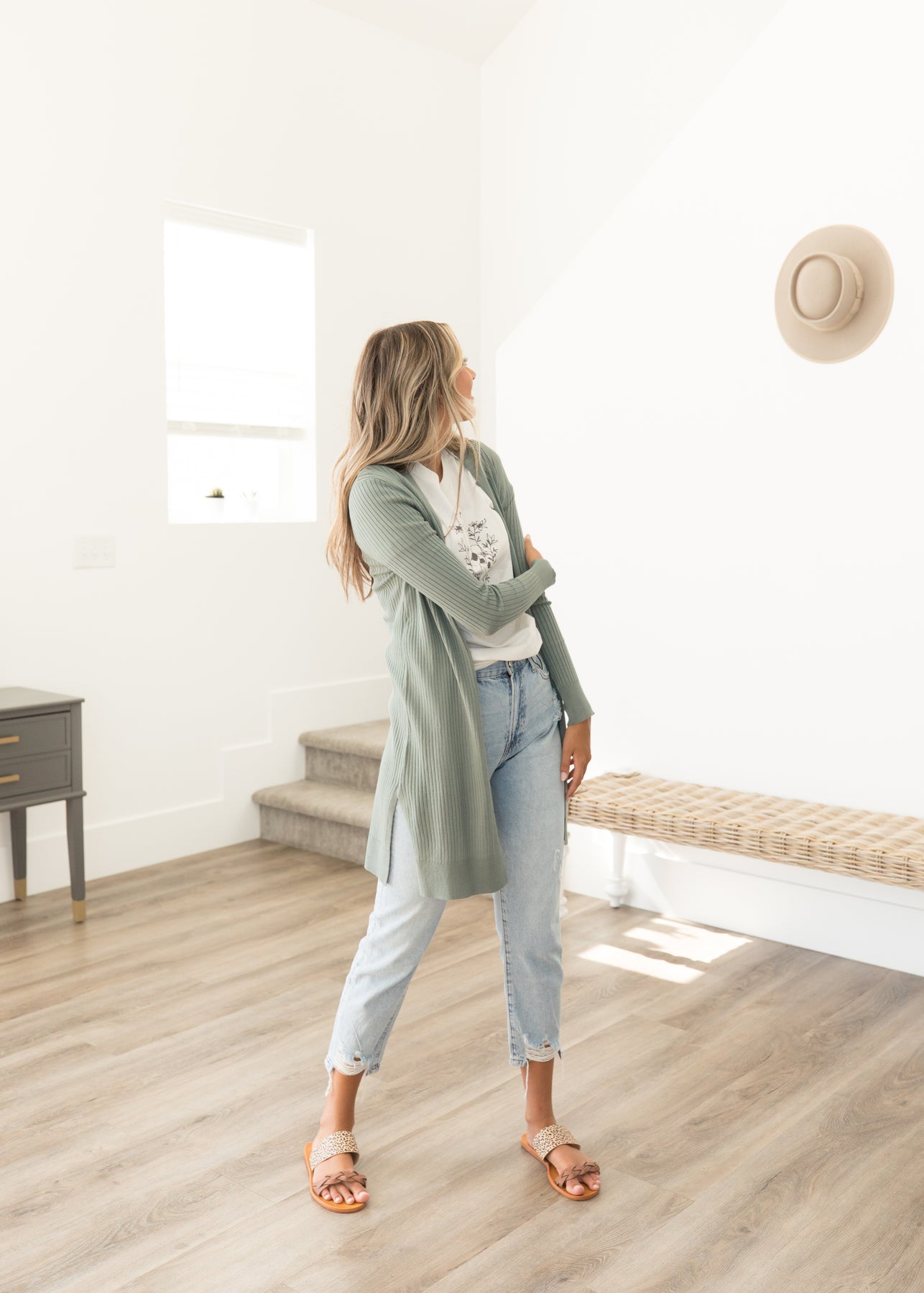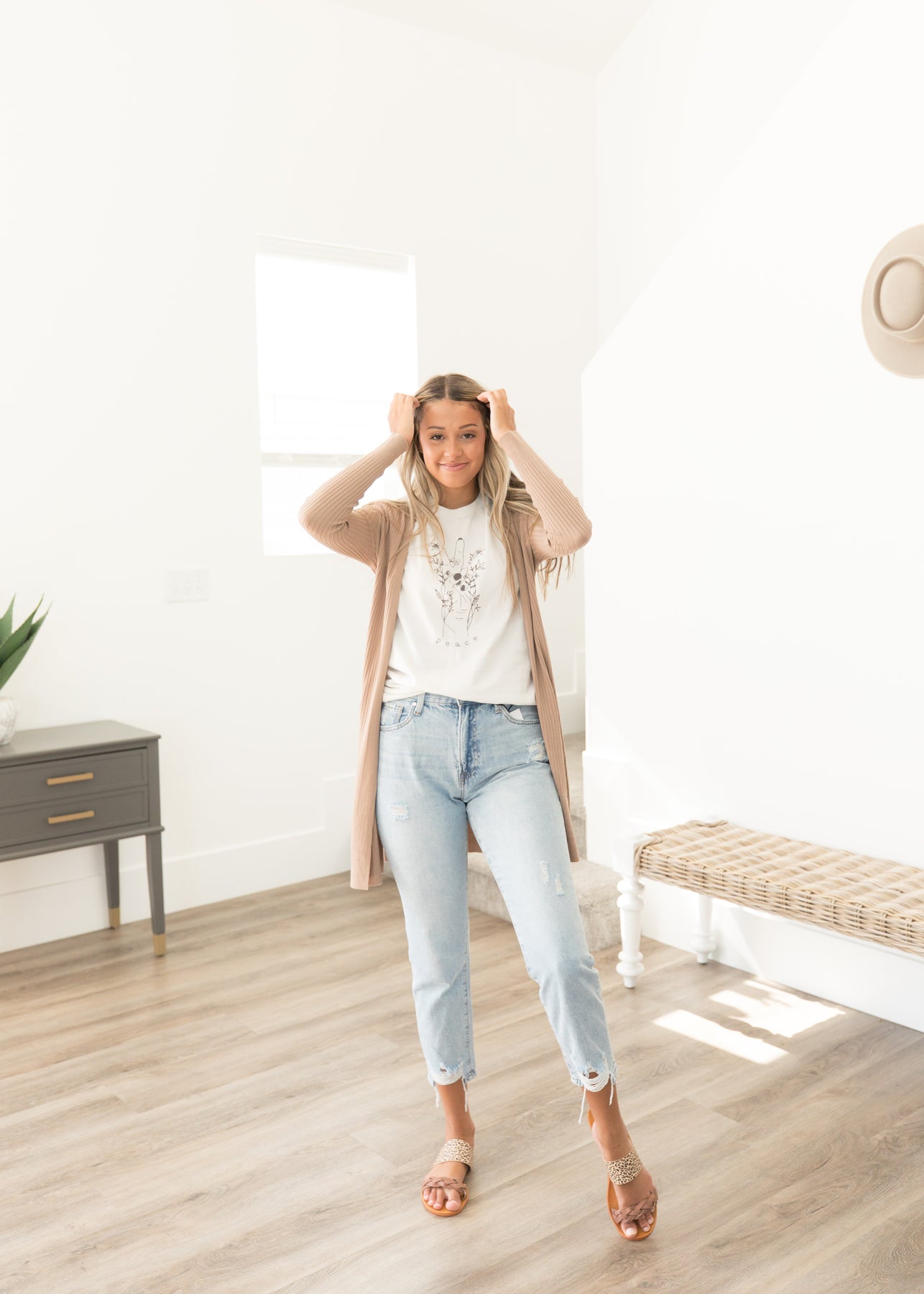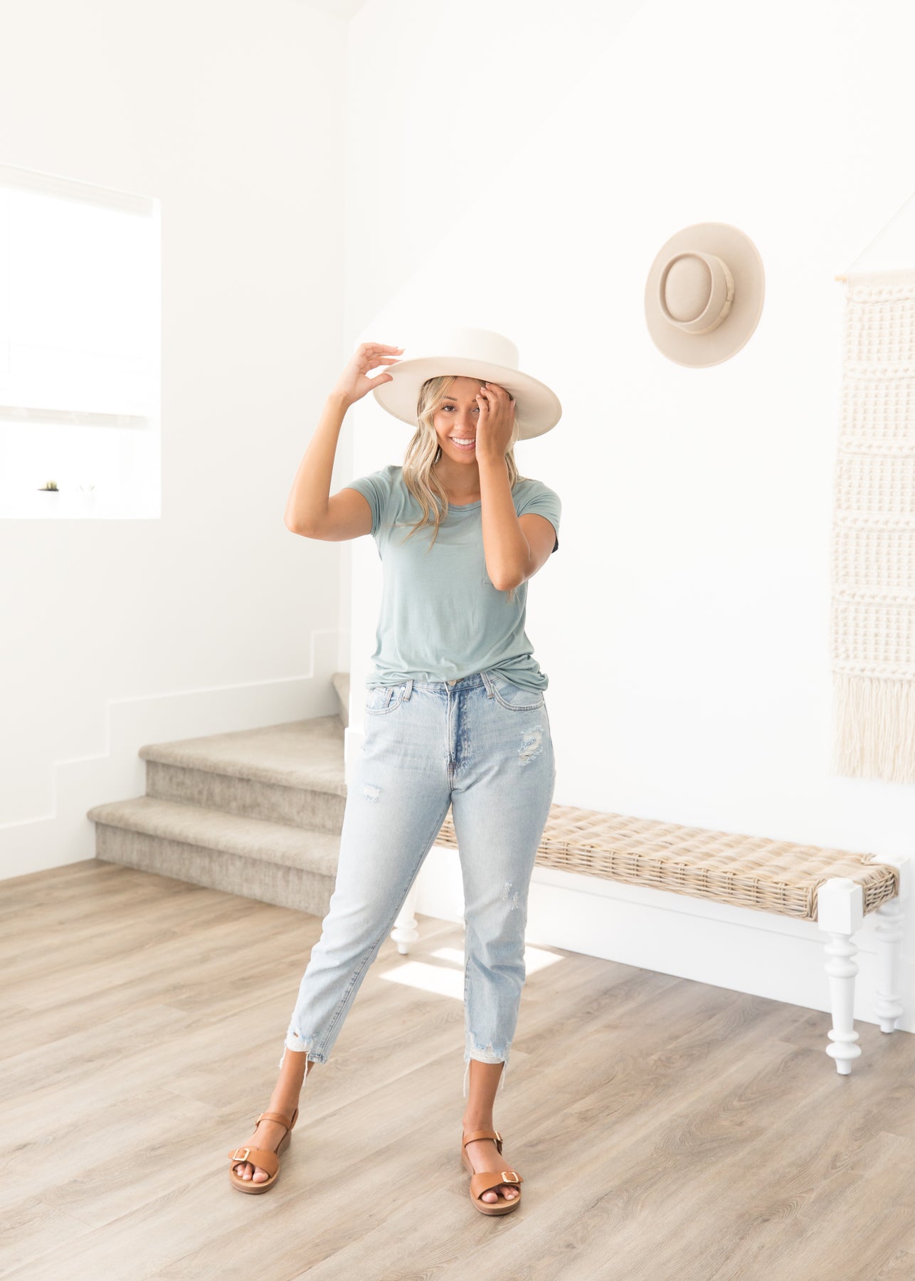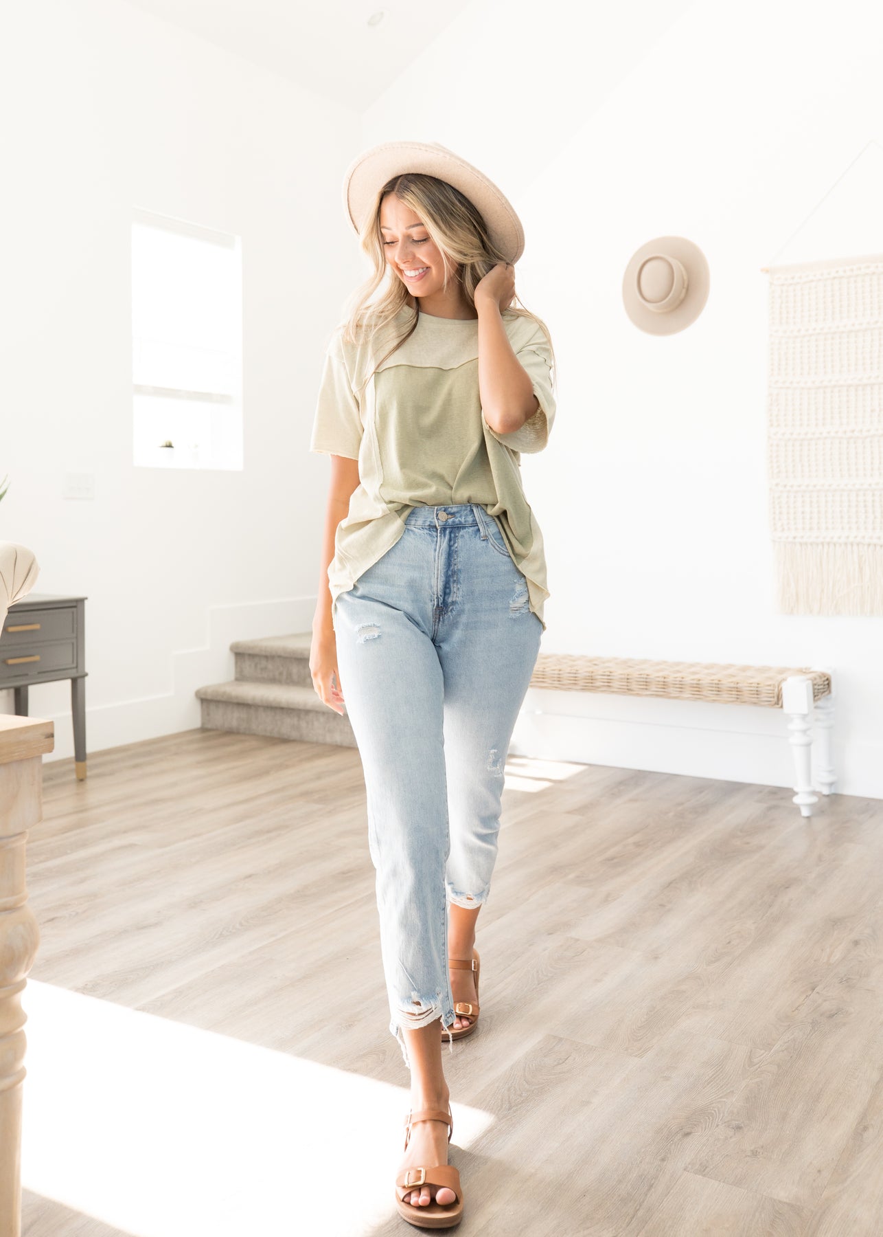 We are living for the mom jean/casual fit, and the Emma High Rise Distressed Jeans are SO flattering. The cutest straight cut silhouette and super high-waisted with the cutest distressing. Congrats, girl! You've found your new favorite pair of denim.