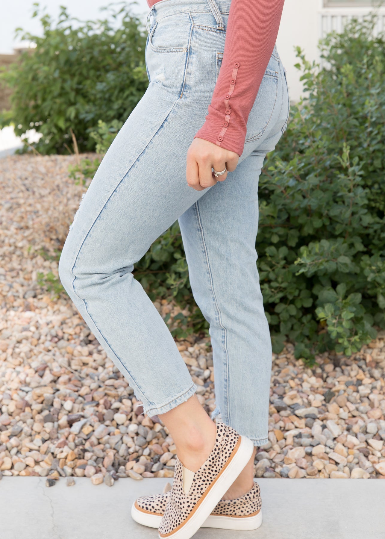 - Beautiful light wash with pops of distressing - so trendy right now