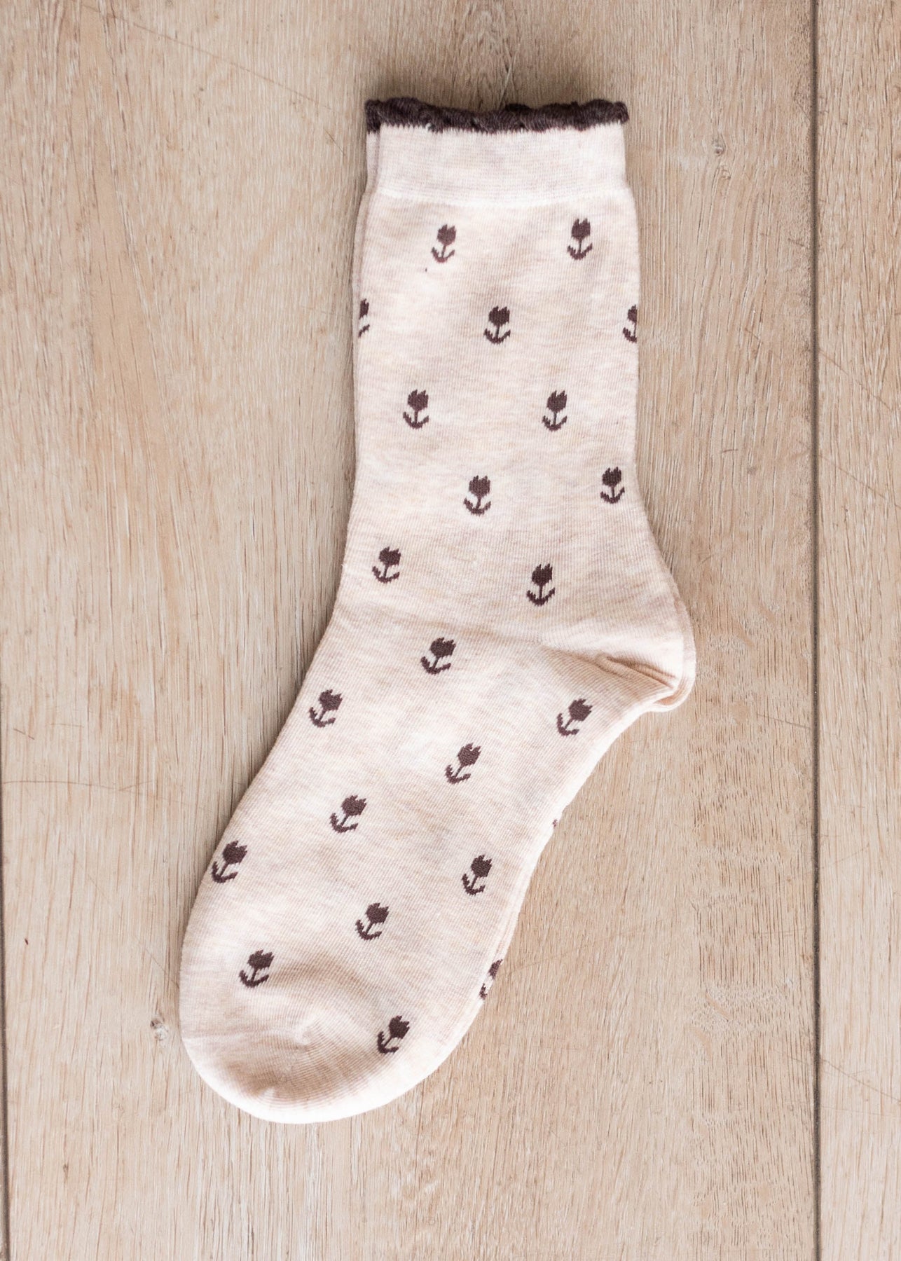 Beige Socks with Brown Flowers