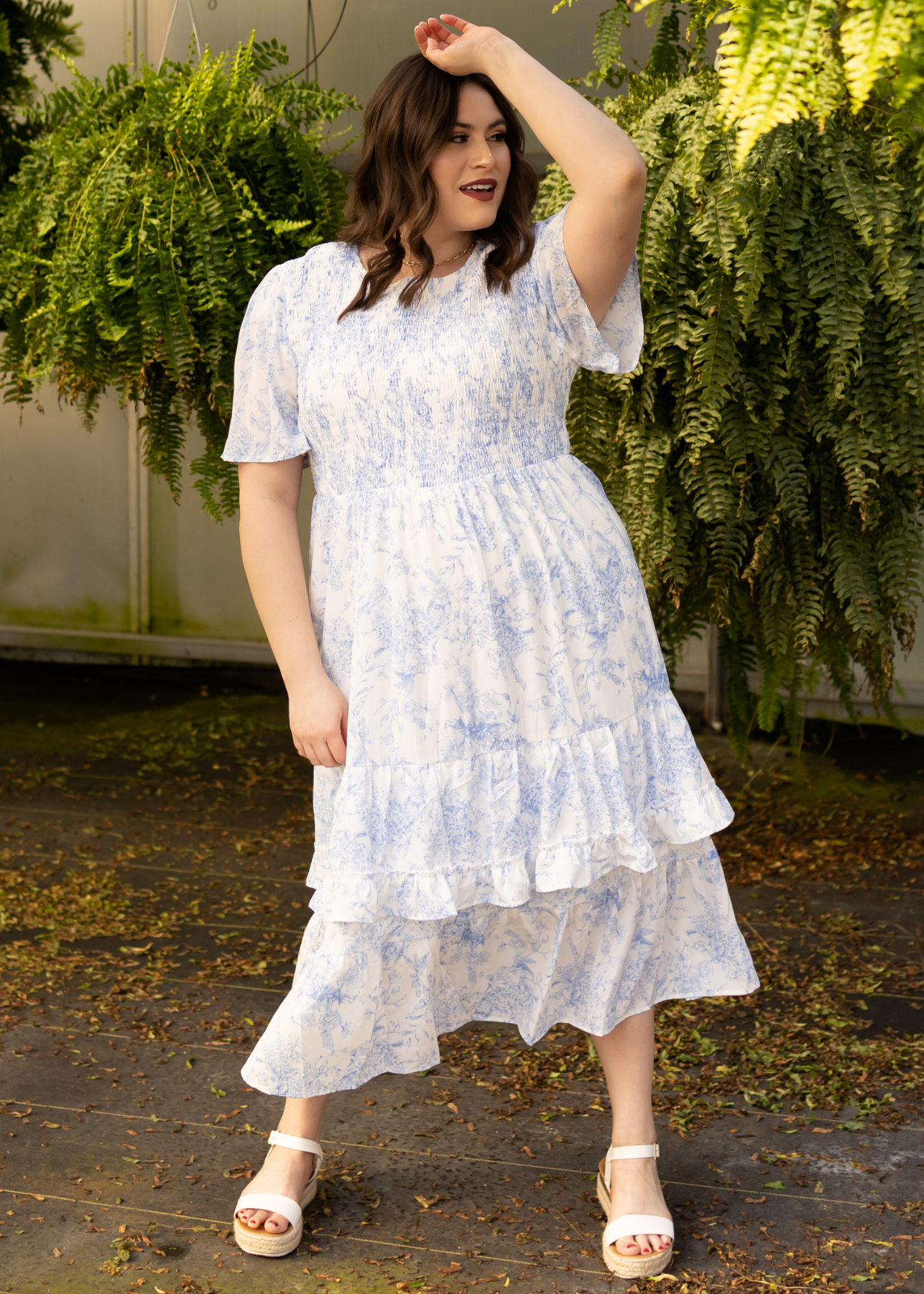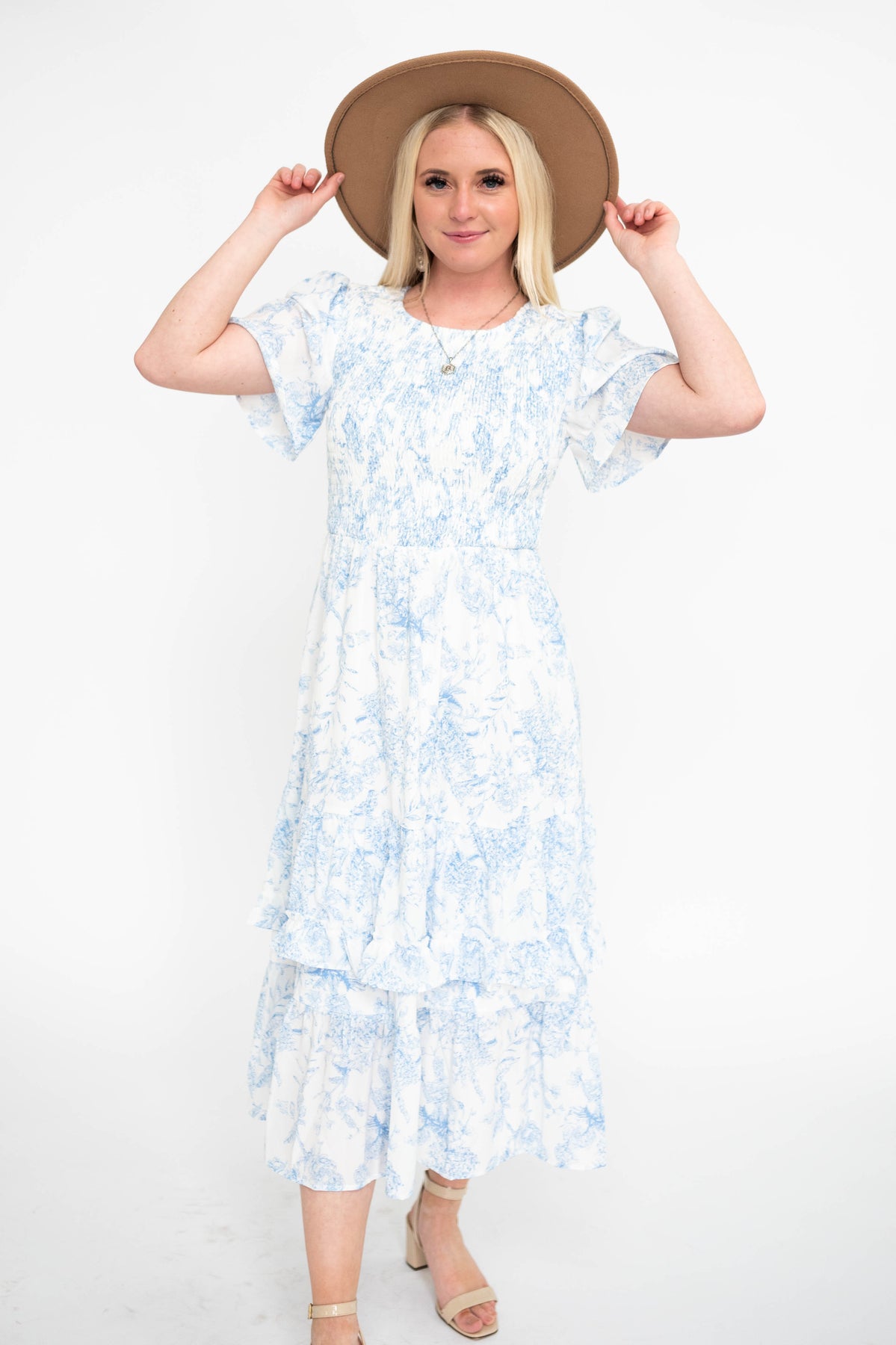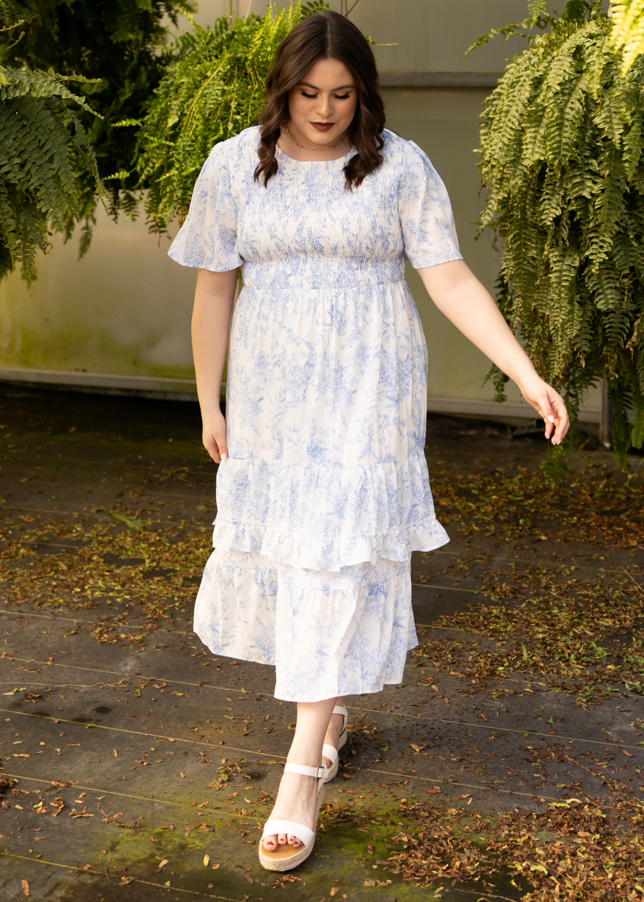 - Runs TTS with stretchy smocked fabric on bodice. Size down if in-between