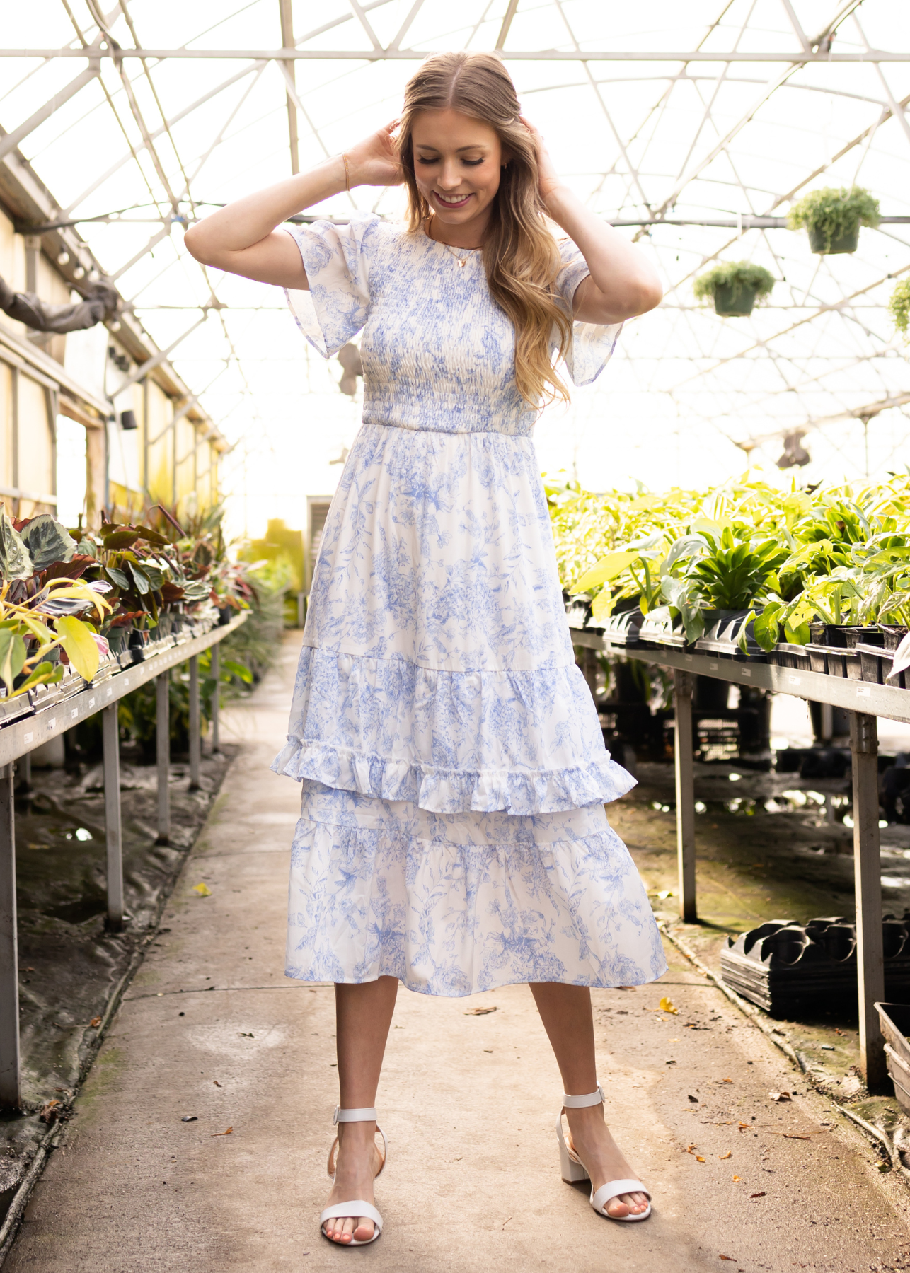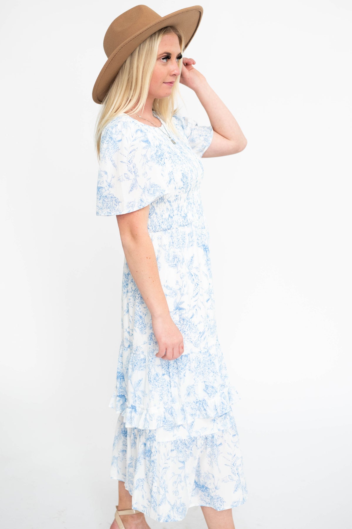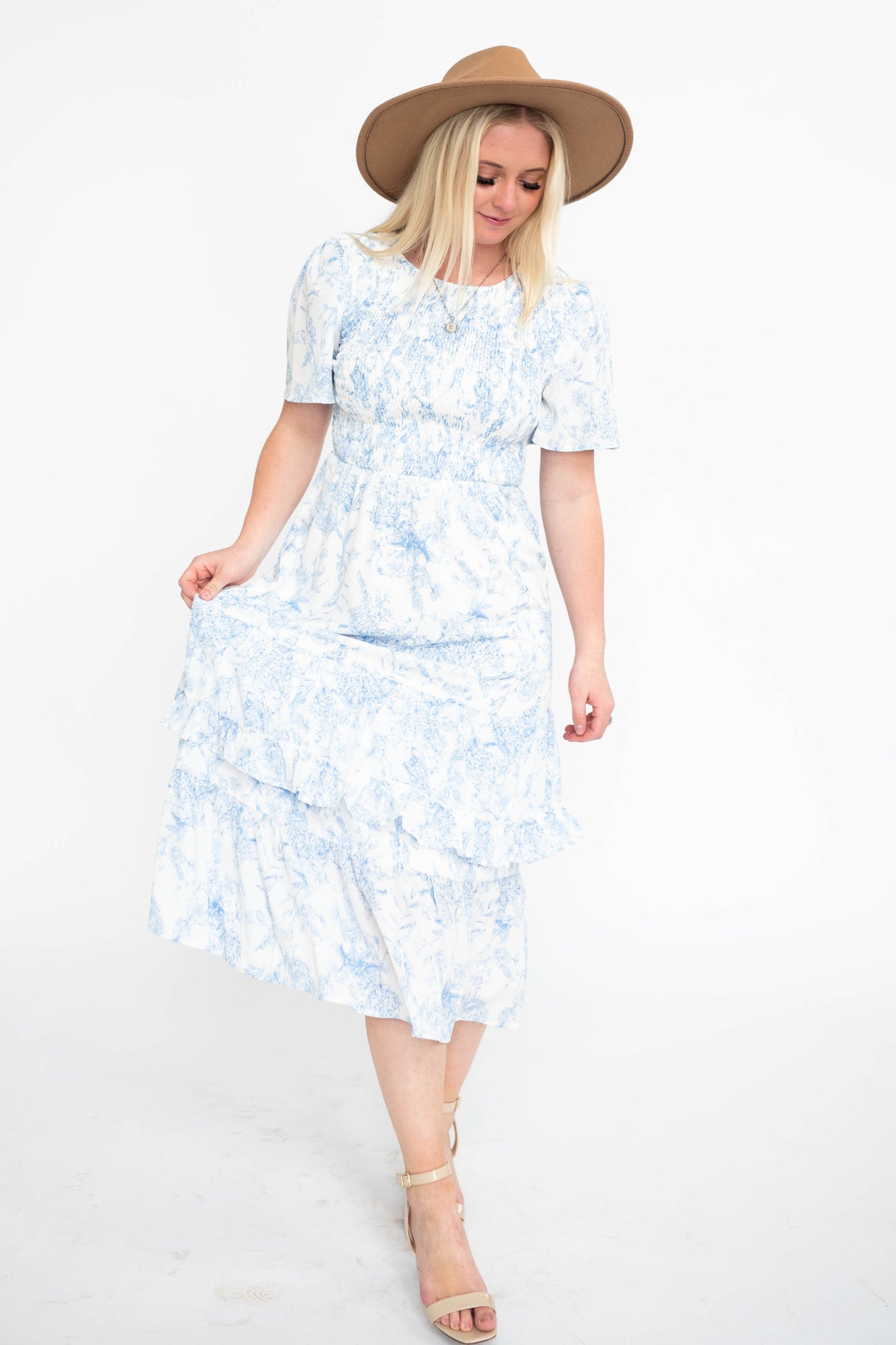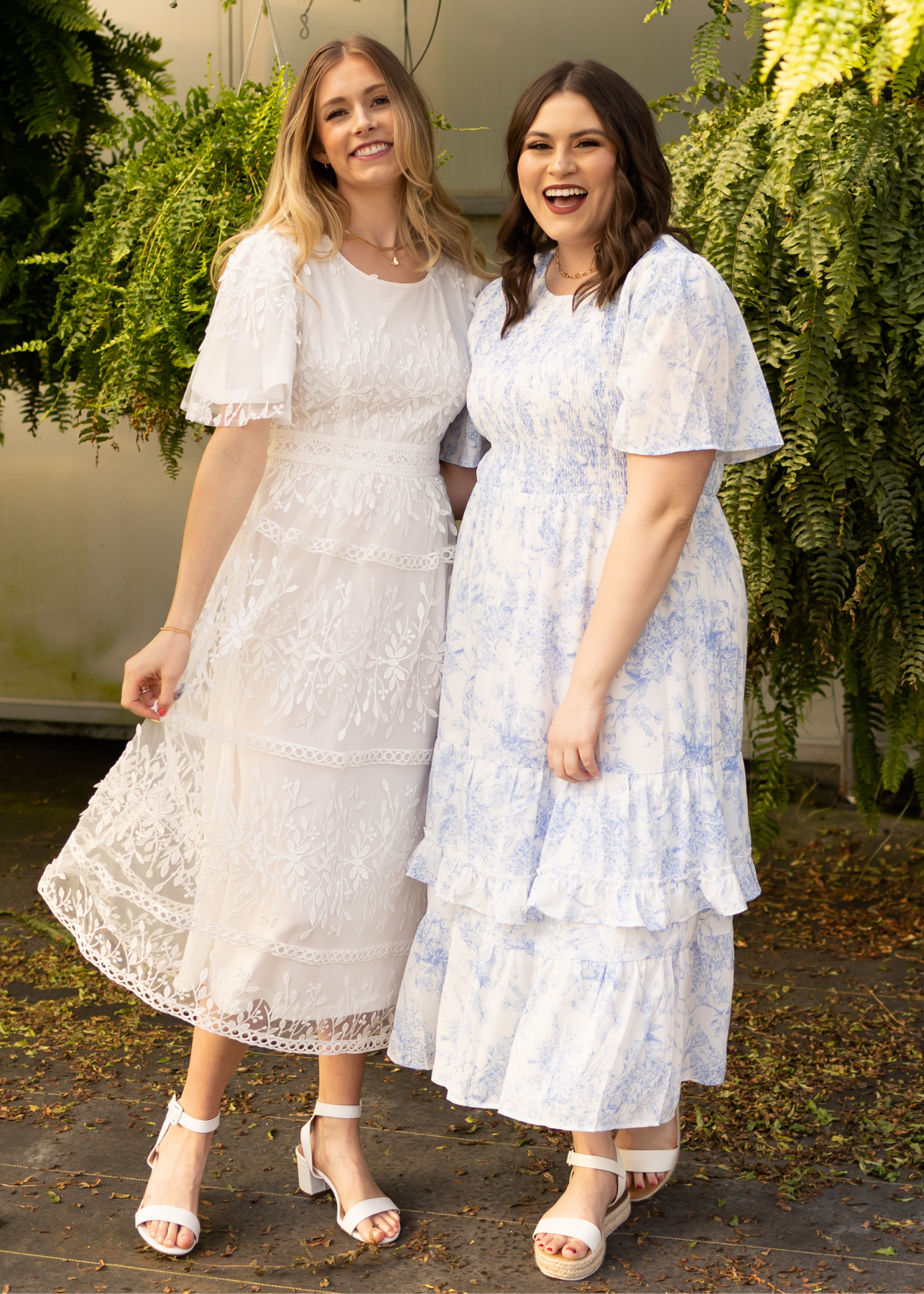- Runs TTS with stretchy smocked fabric on bodice. Size down if in-between