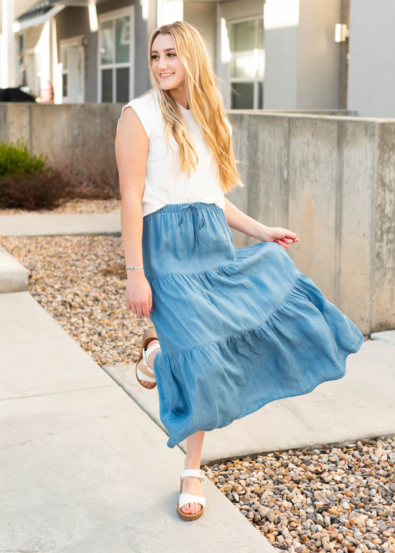 - Tiered skirt for fun movement