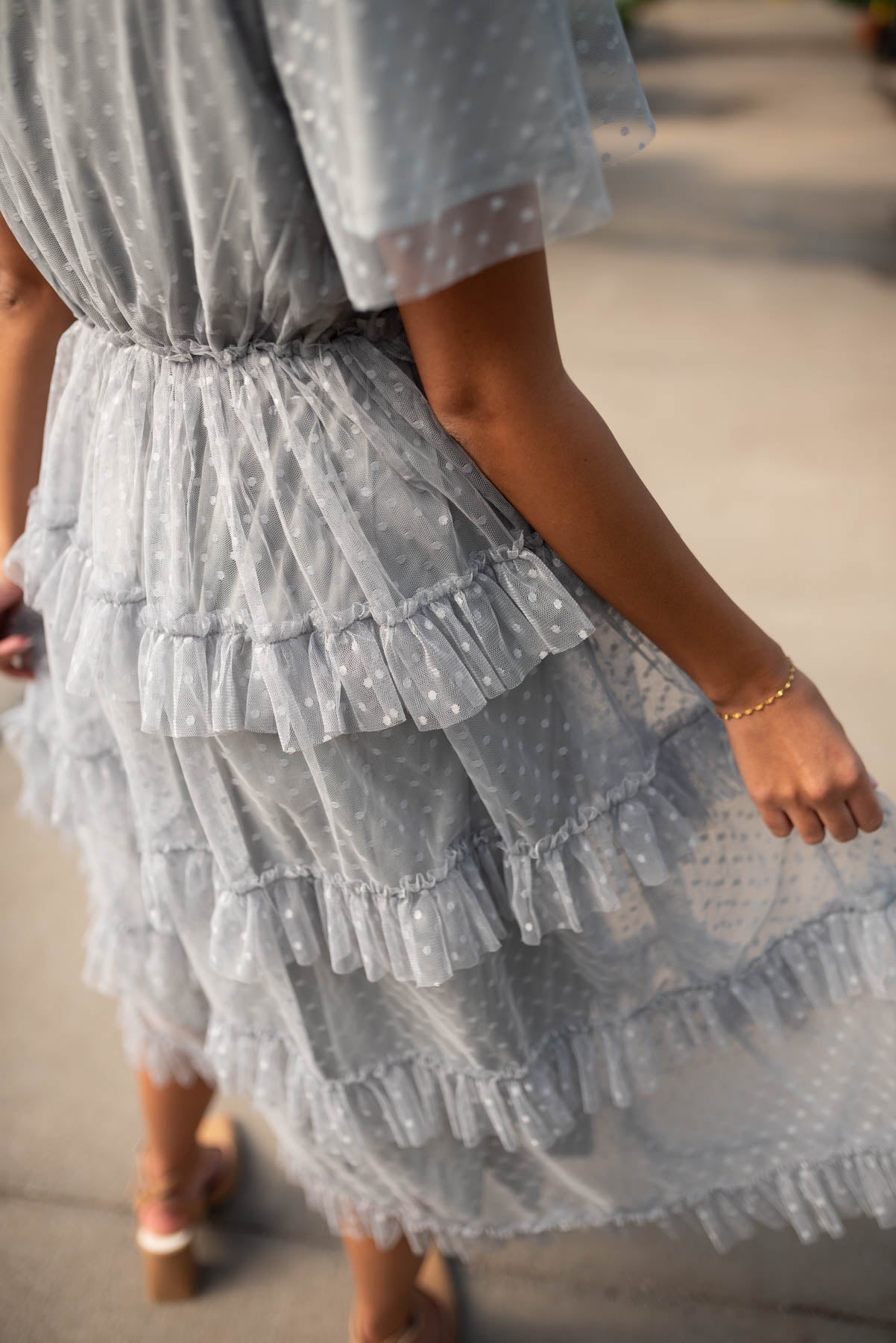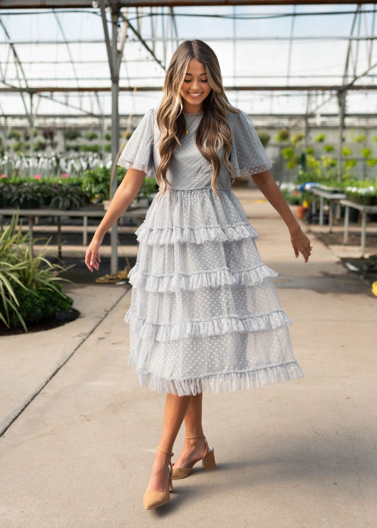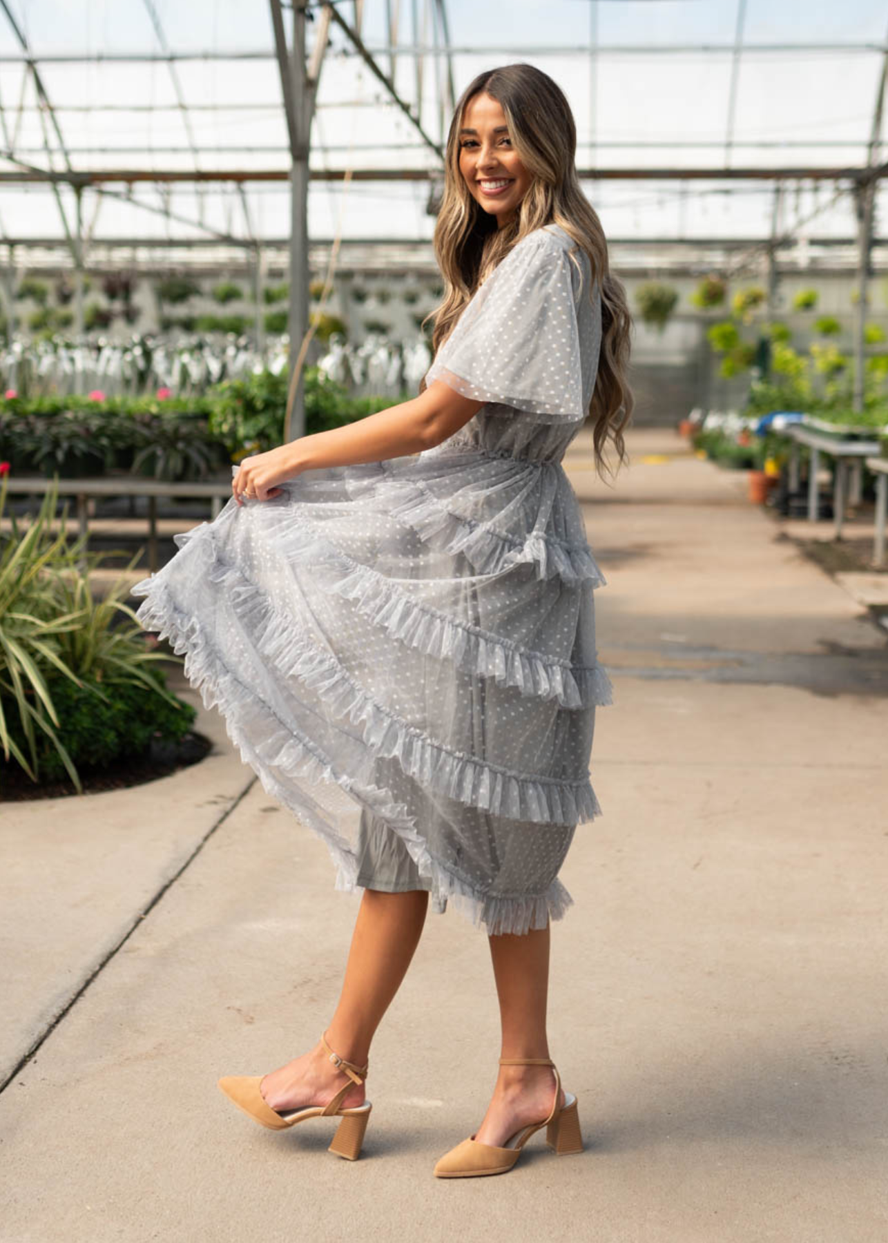 - Dotted, mesh overlay to give the dress a very flirty feel