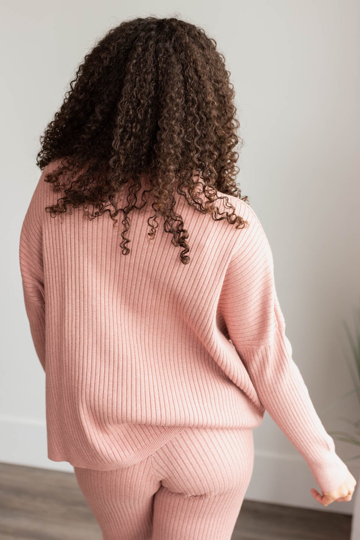Back view of the blush sweater