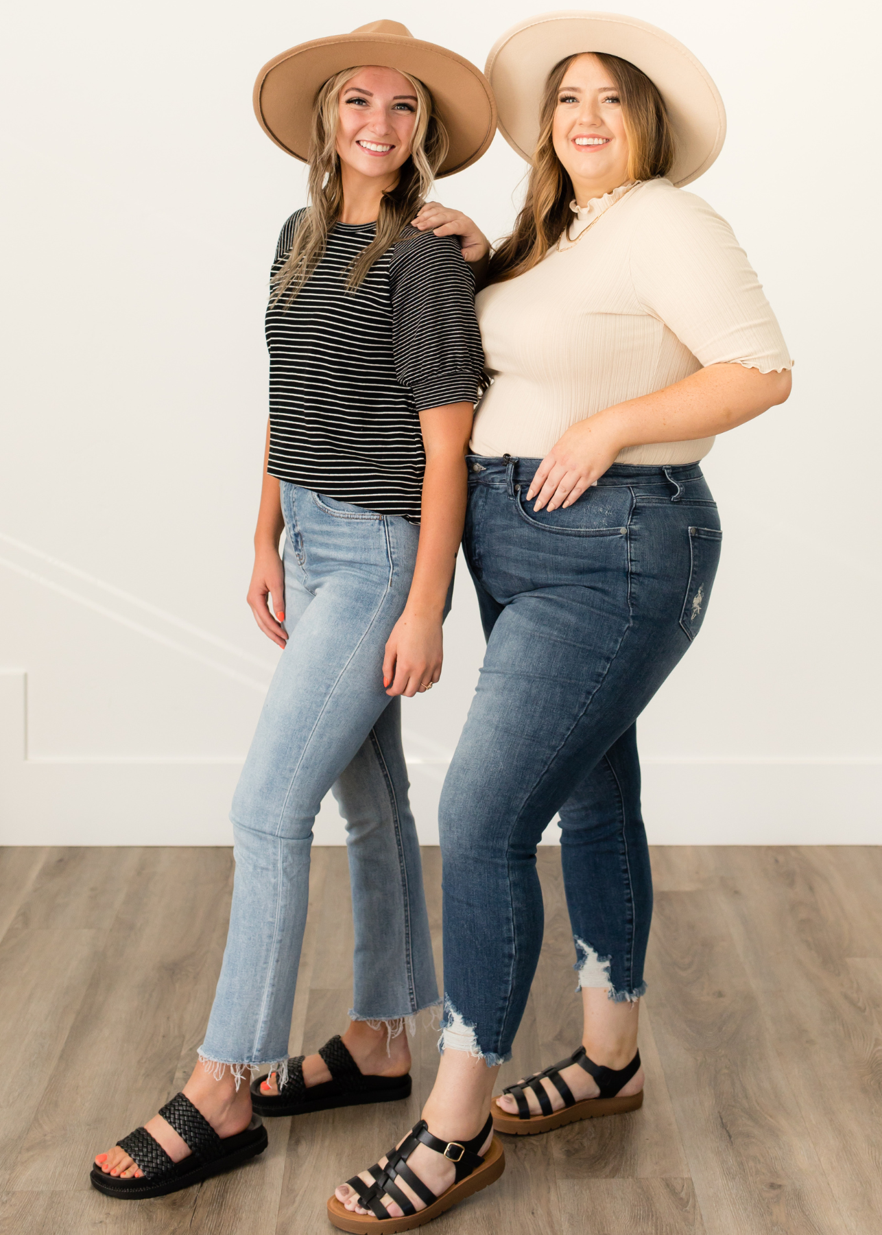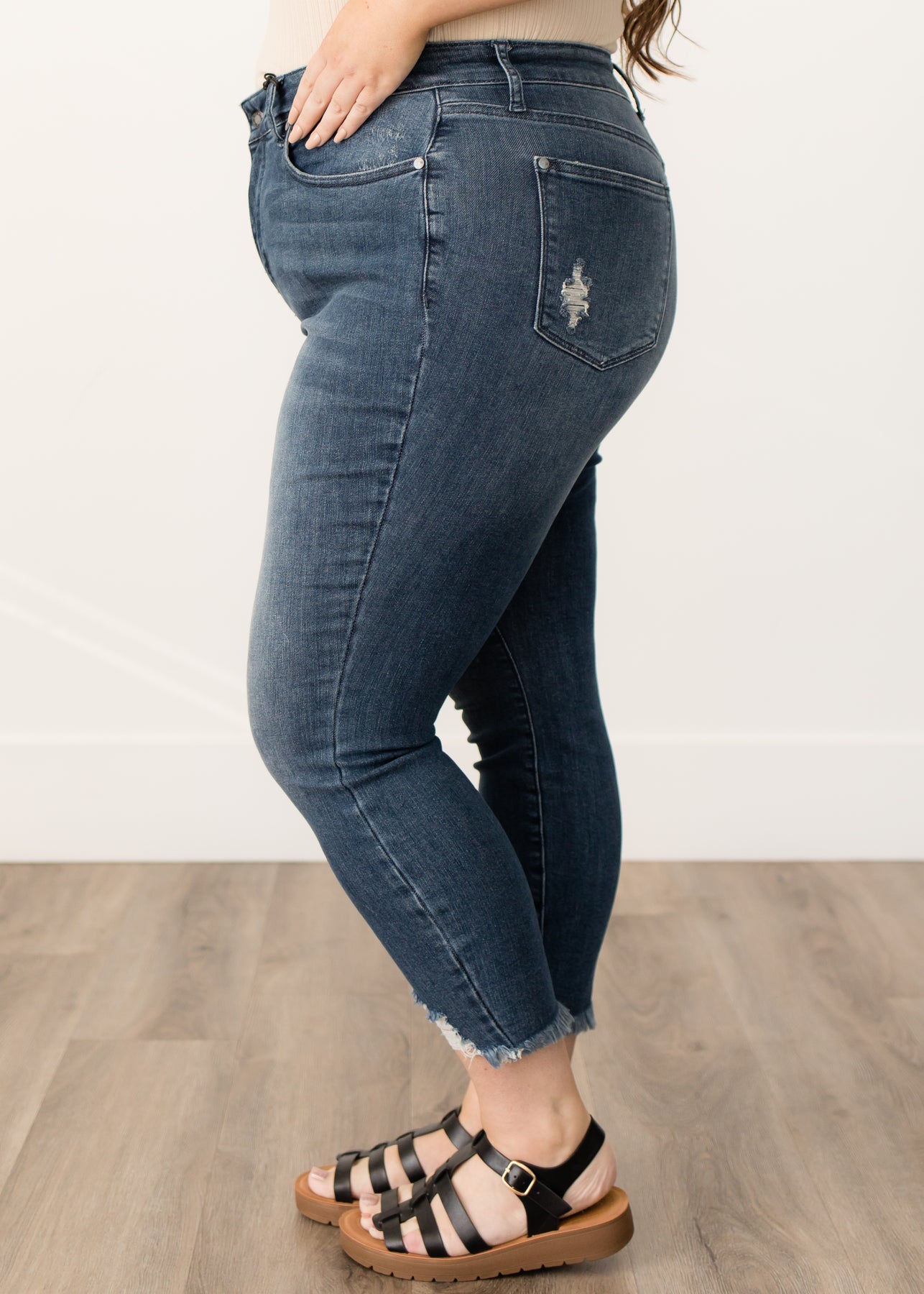 - Stretchy skinny jean + high-waisted fit