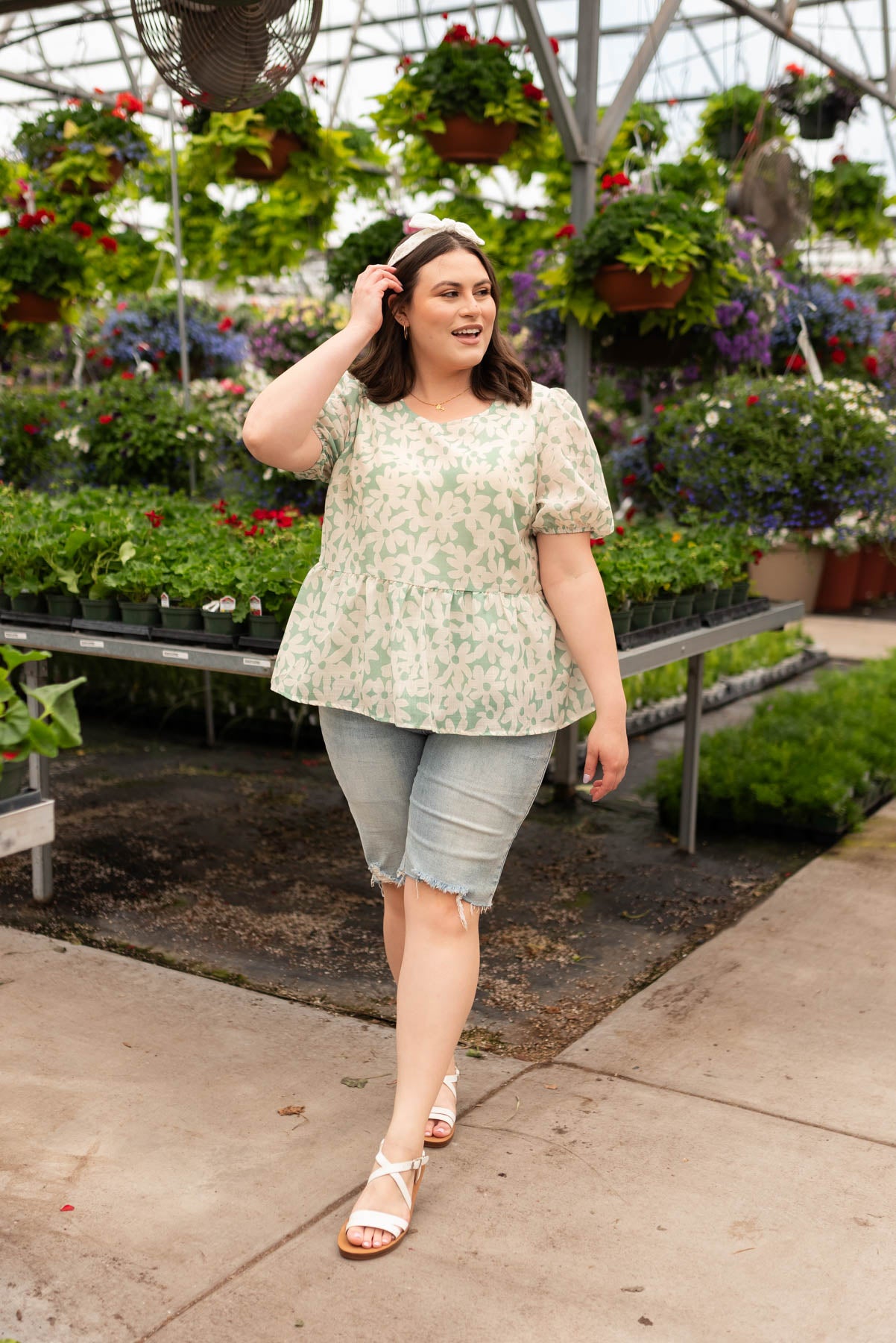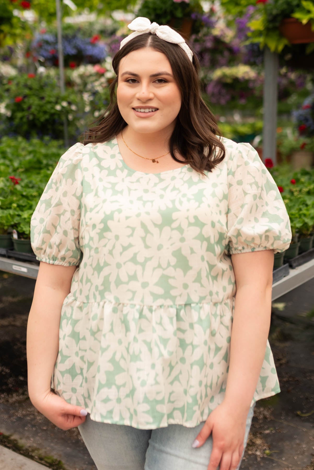 - Large green and white floral print