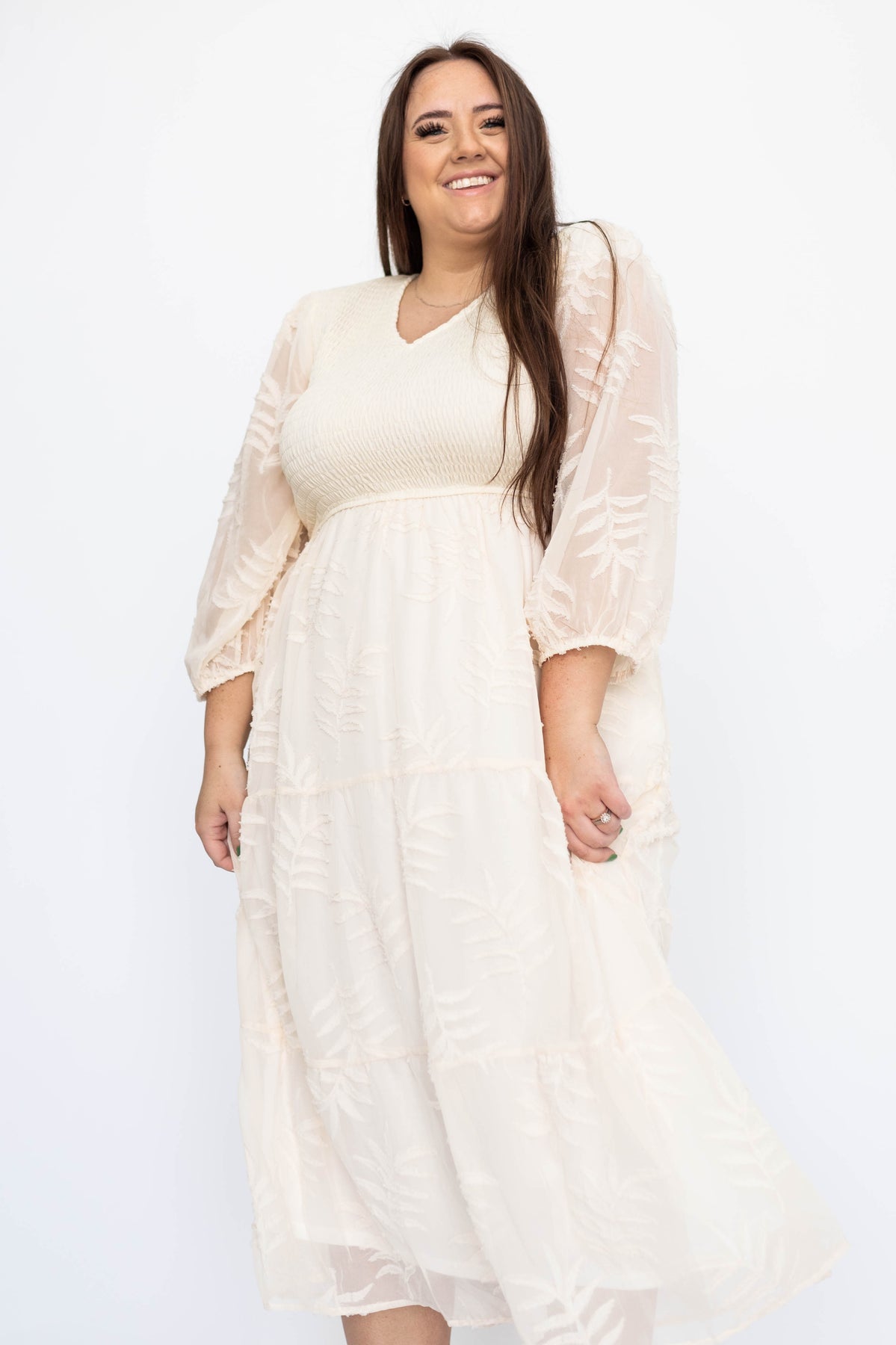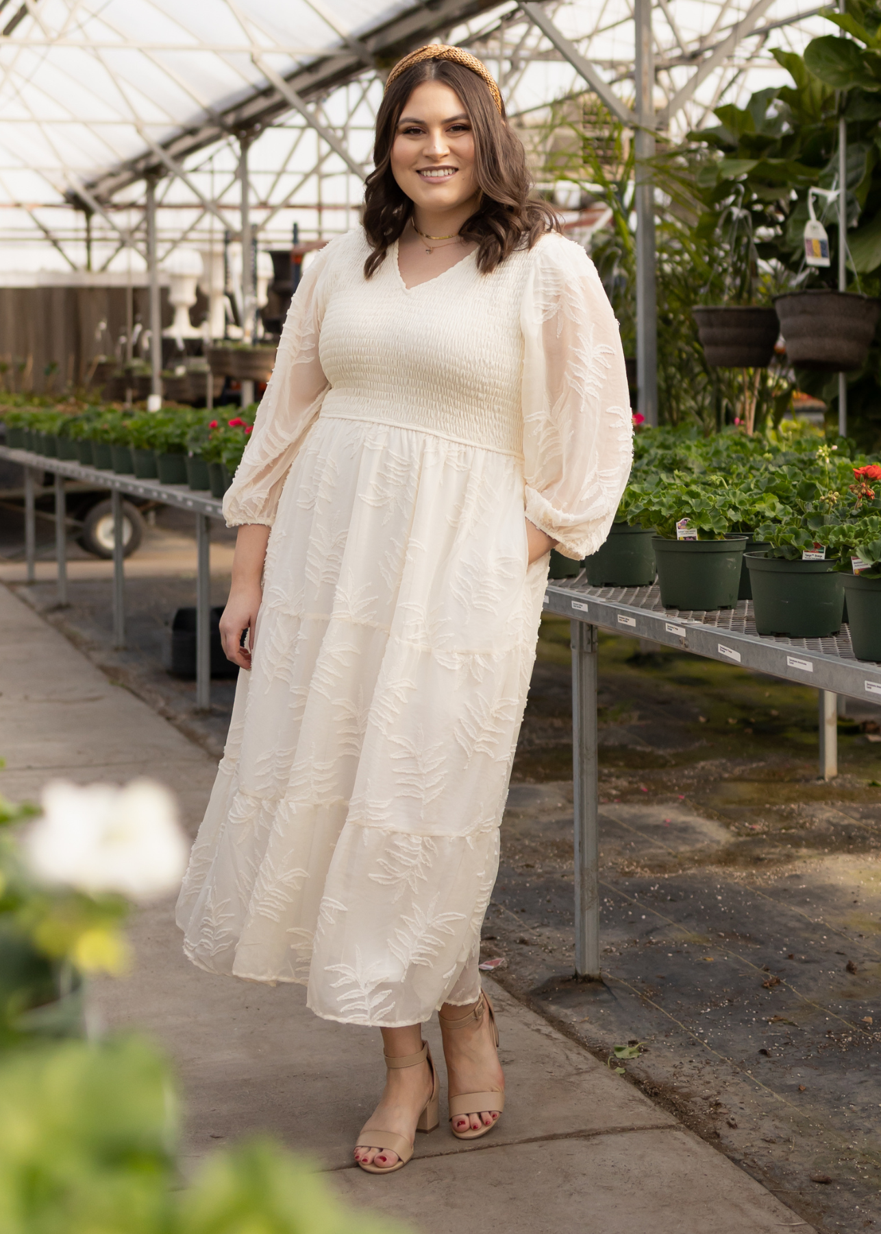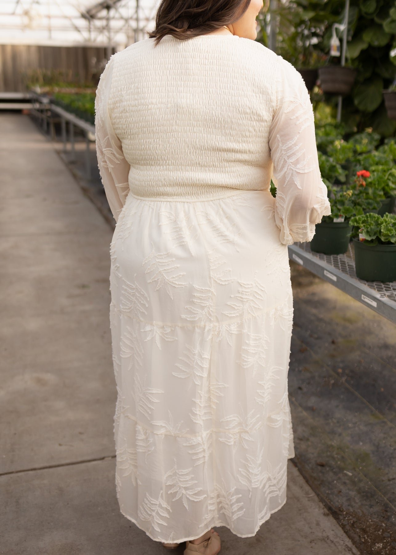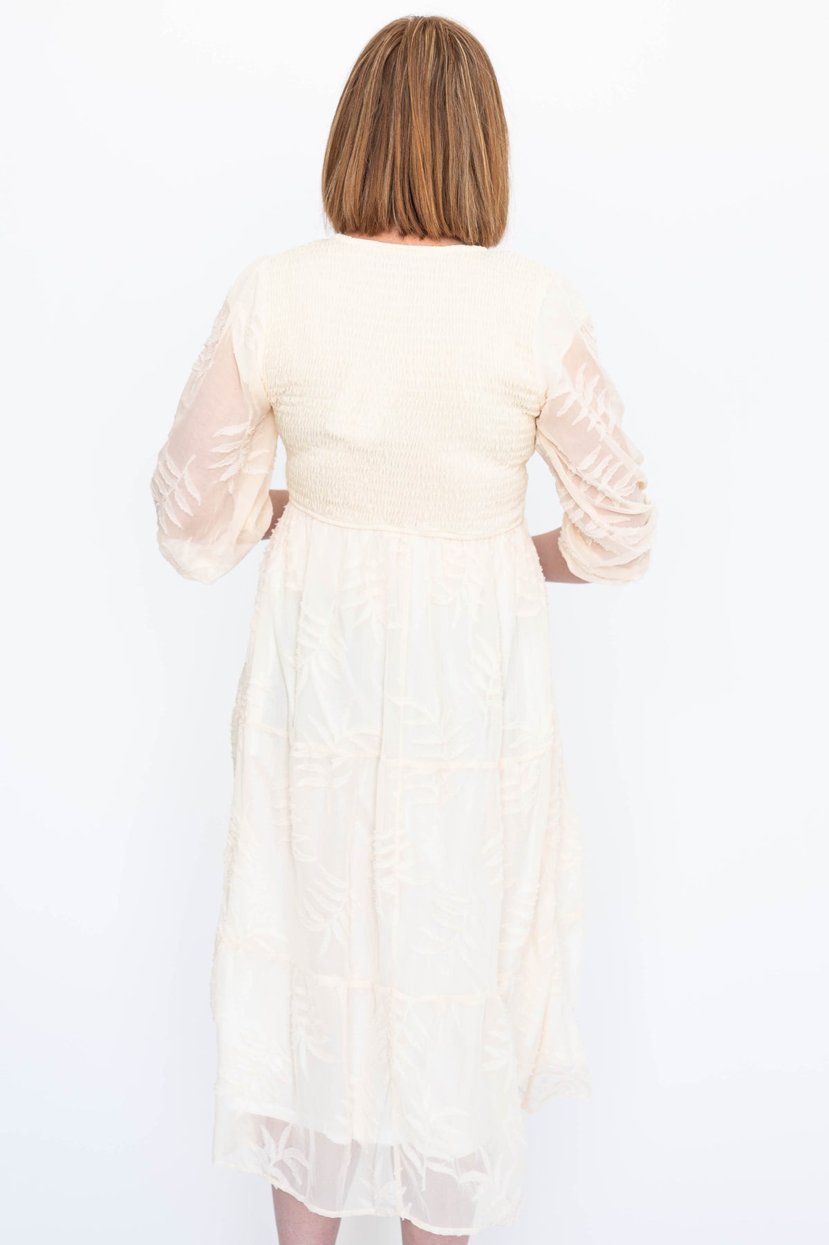 - Soft cream + gorgeous textured floral pattern
