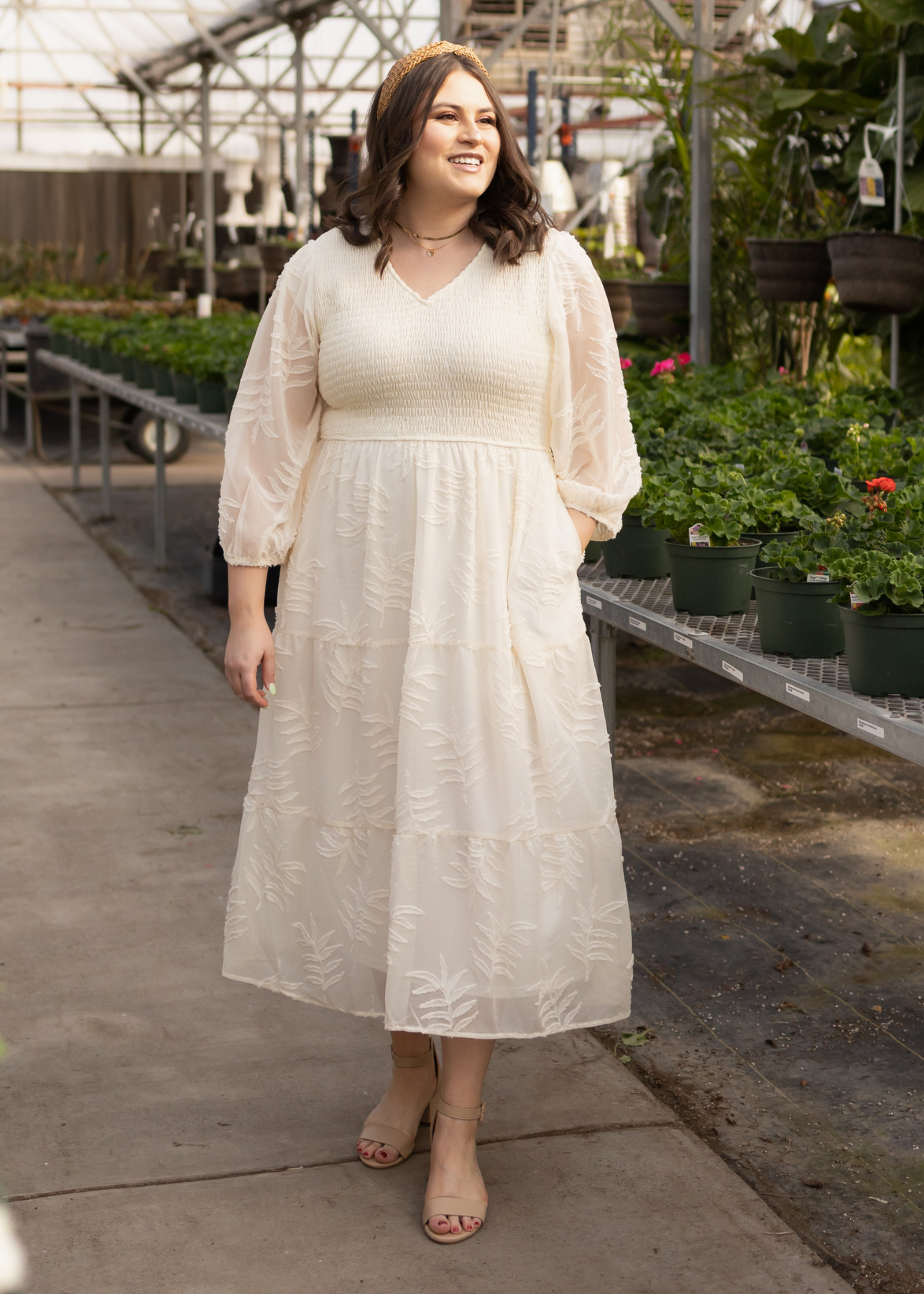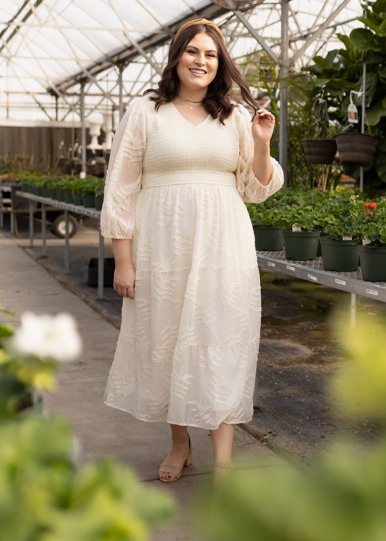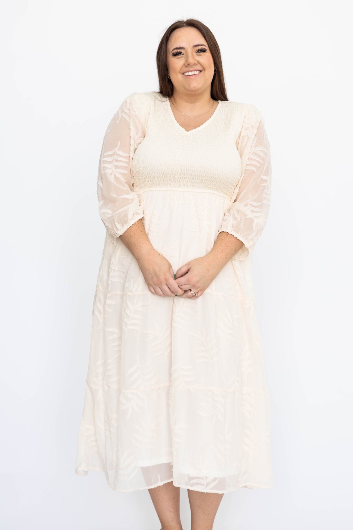 - Soft cream + gorgeous textured floral pattern