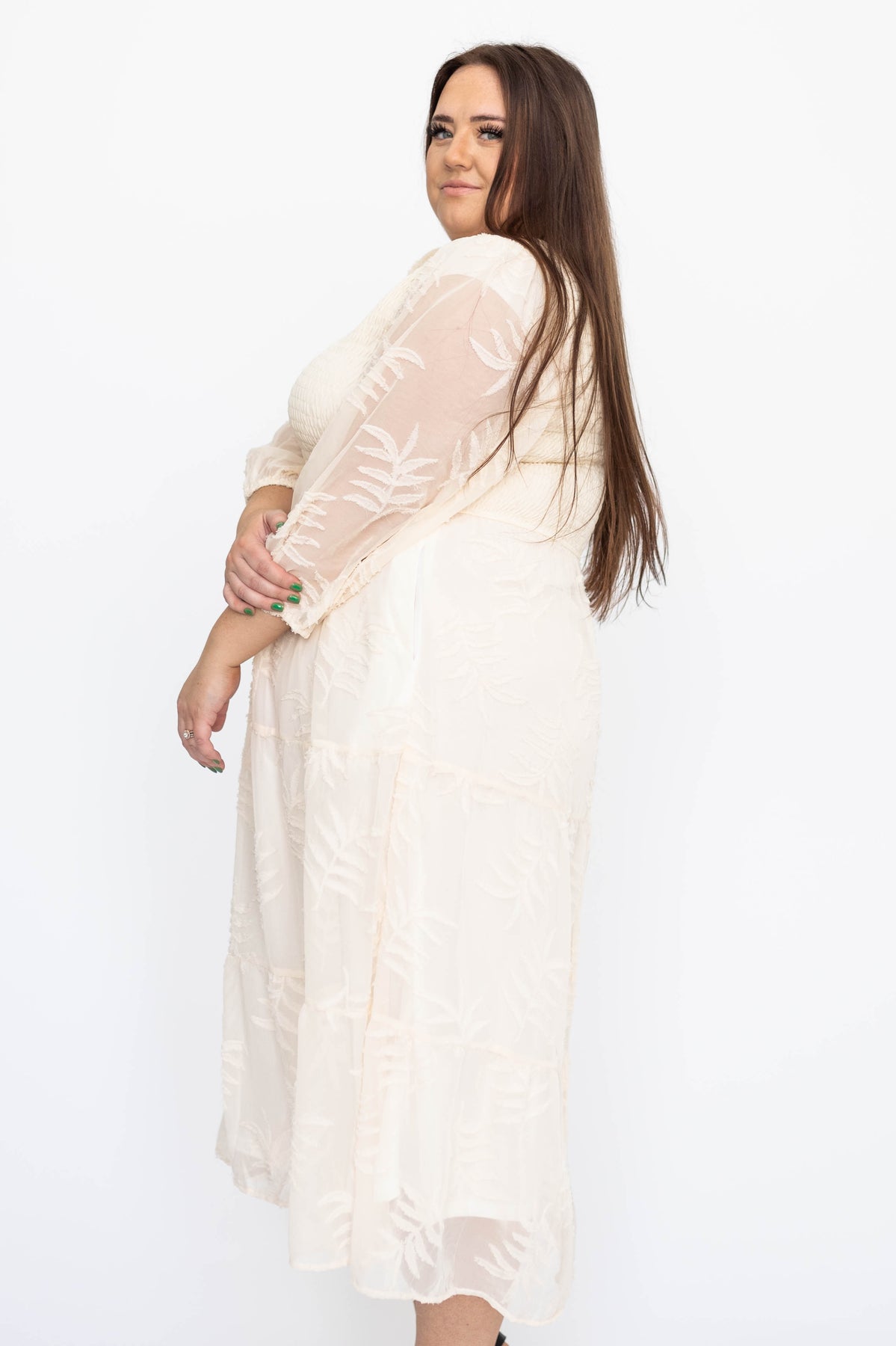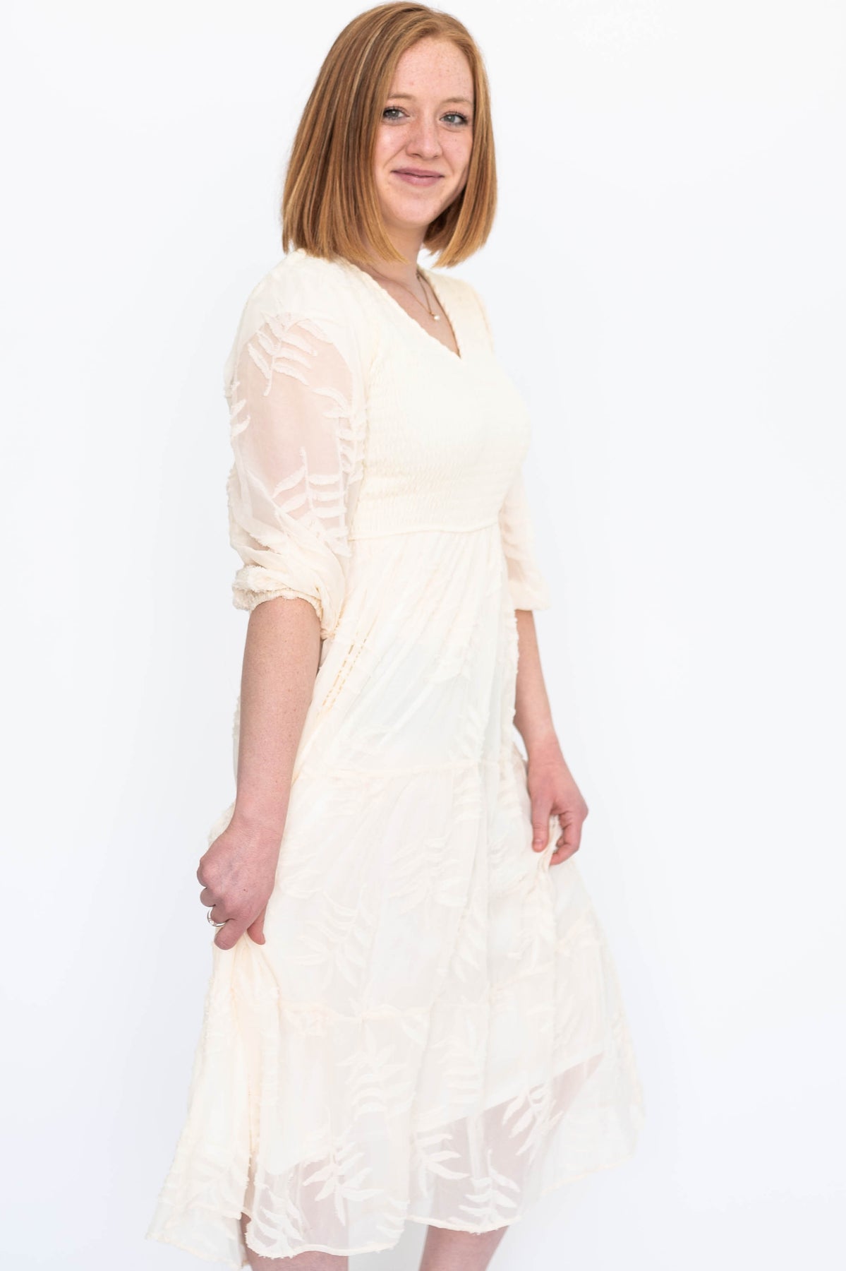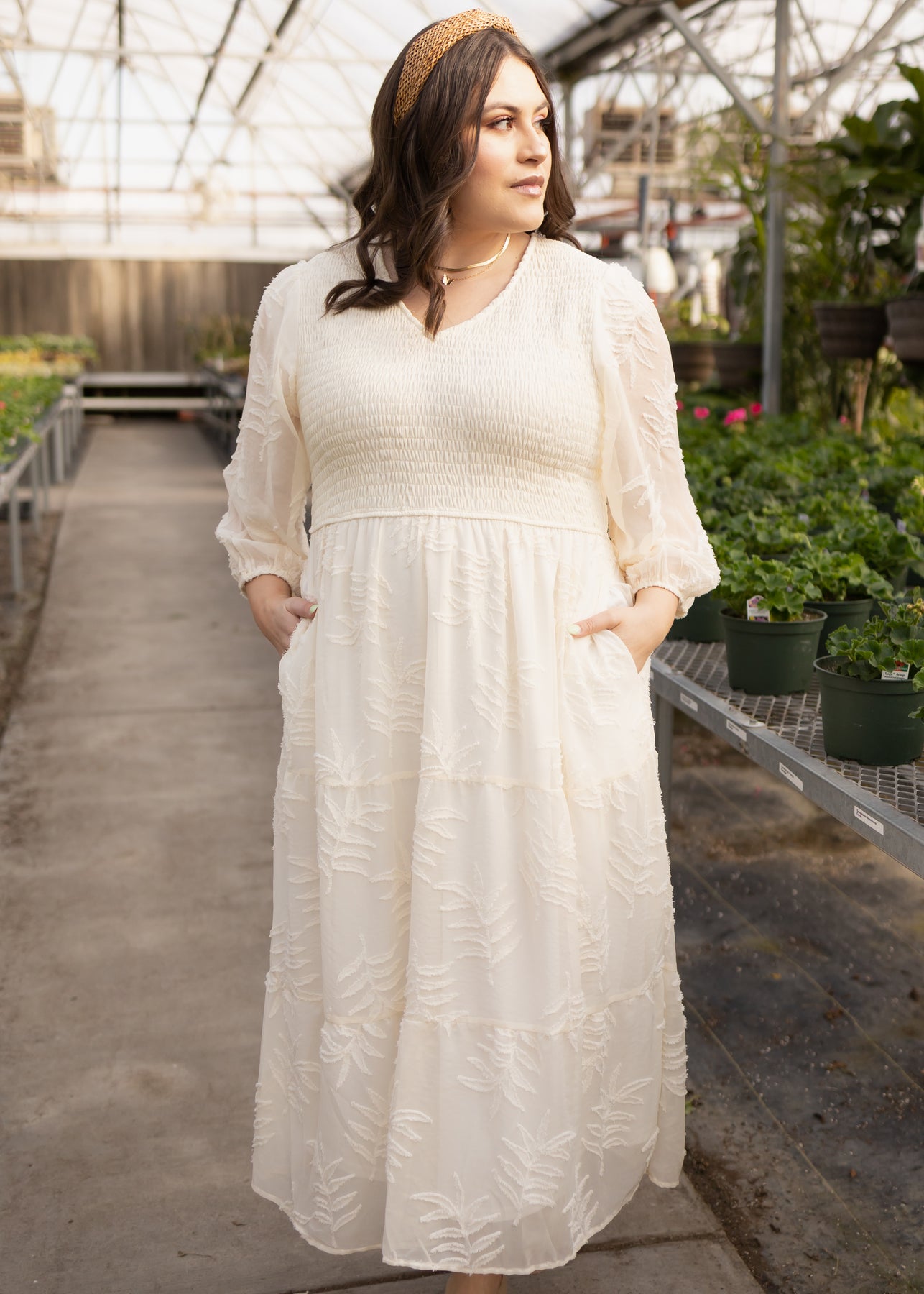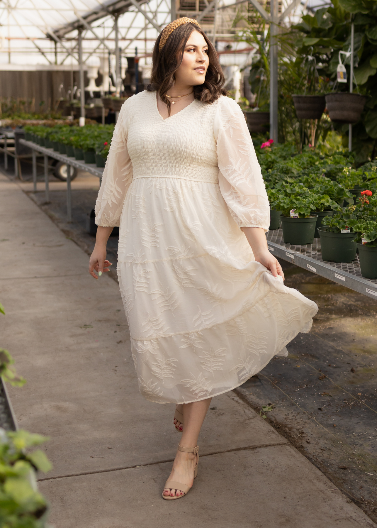 - Soft cream + gorgeous textured floral pattern