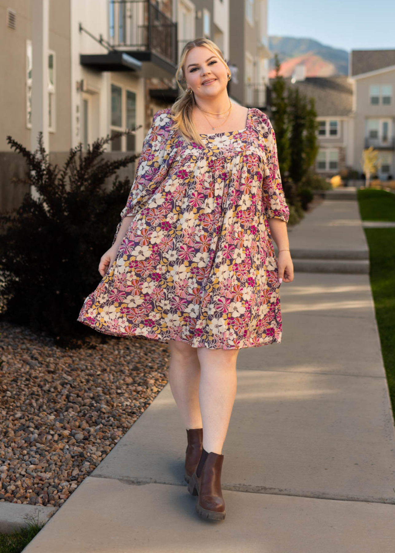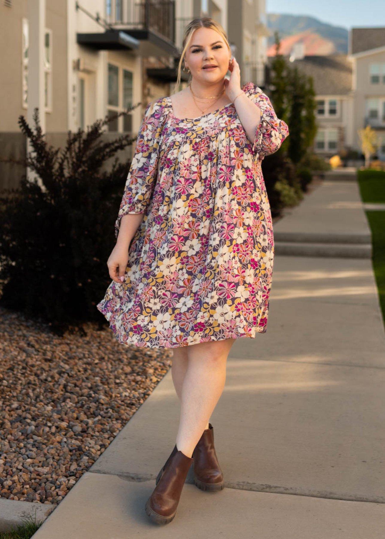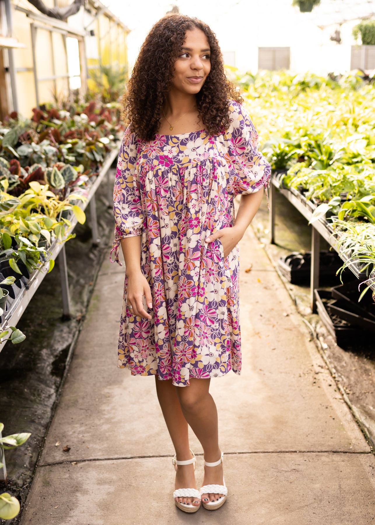 - Flattering square neckline + longer sleeves with functioning tie detail
