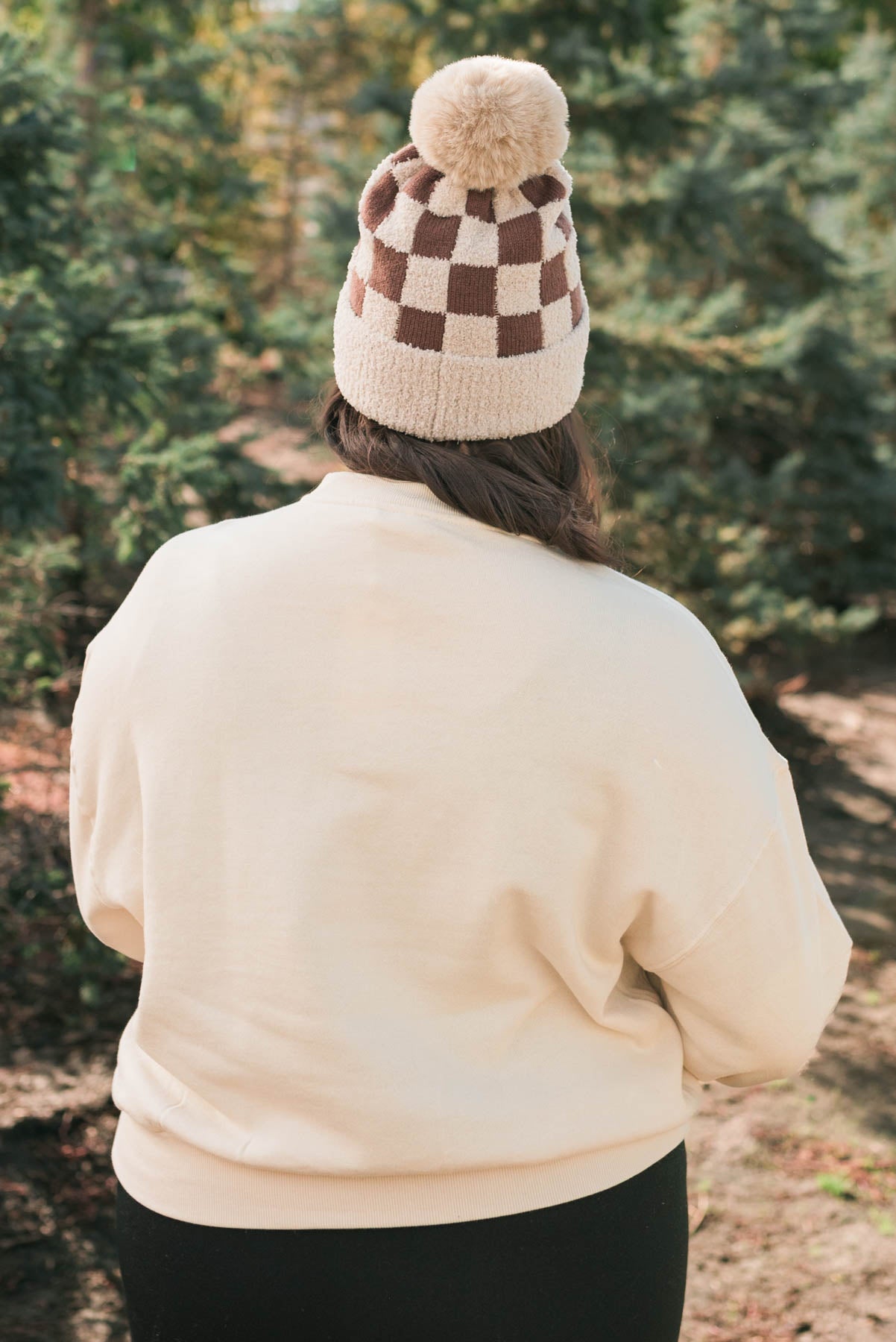 Back view of a plus size cream fleece sweatshirt