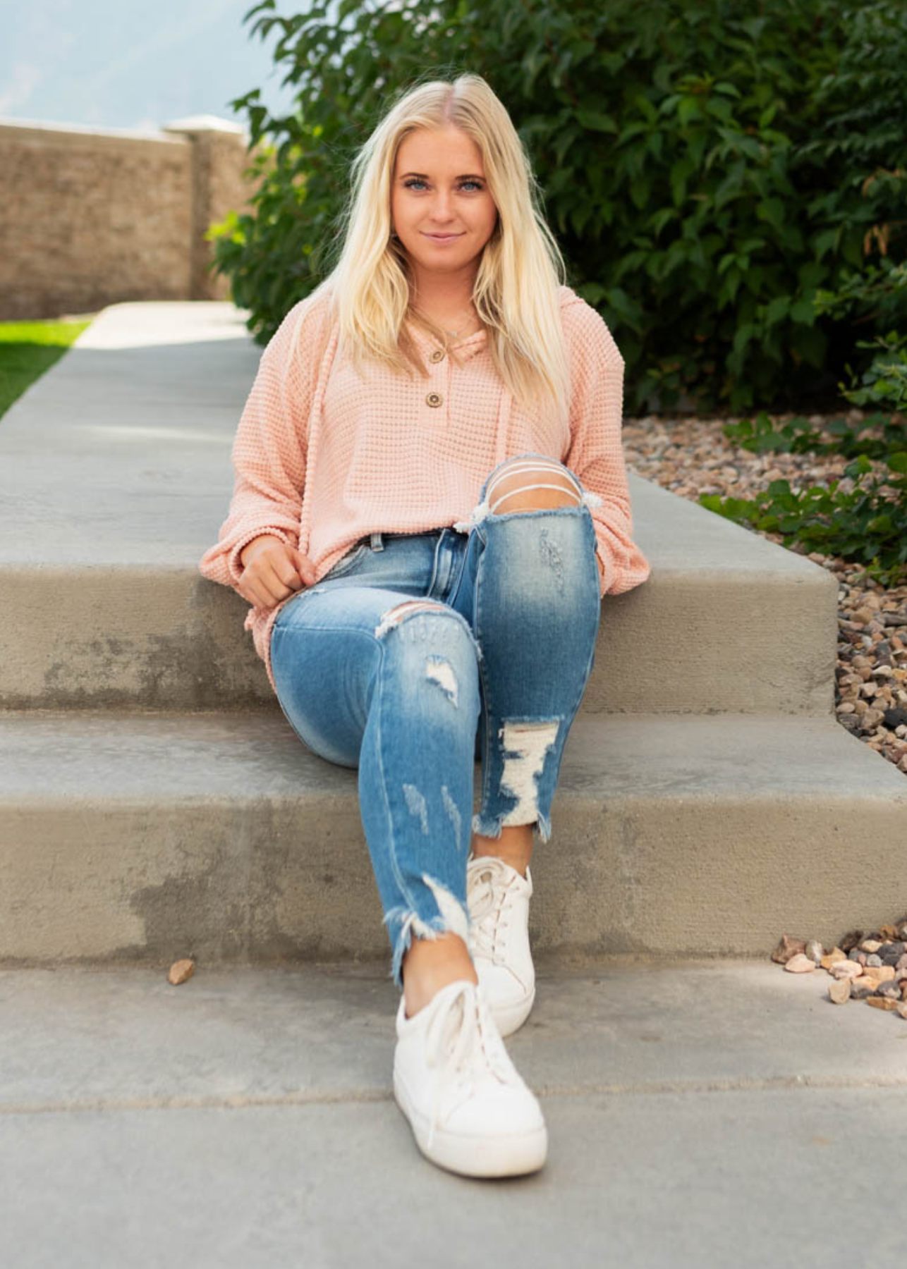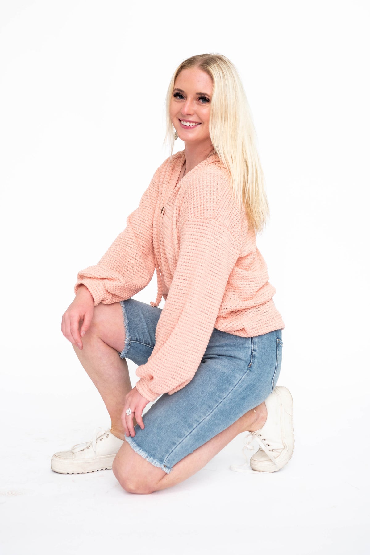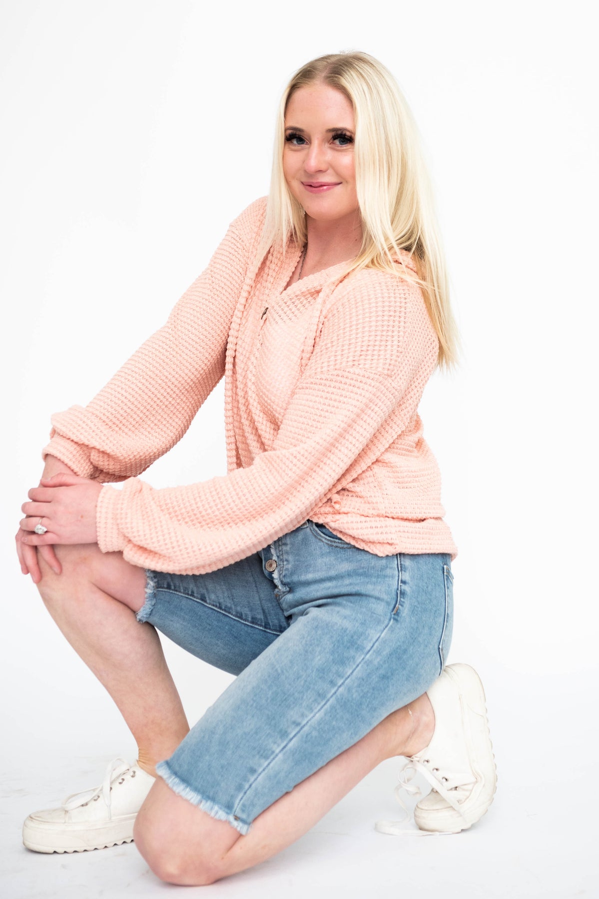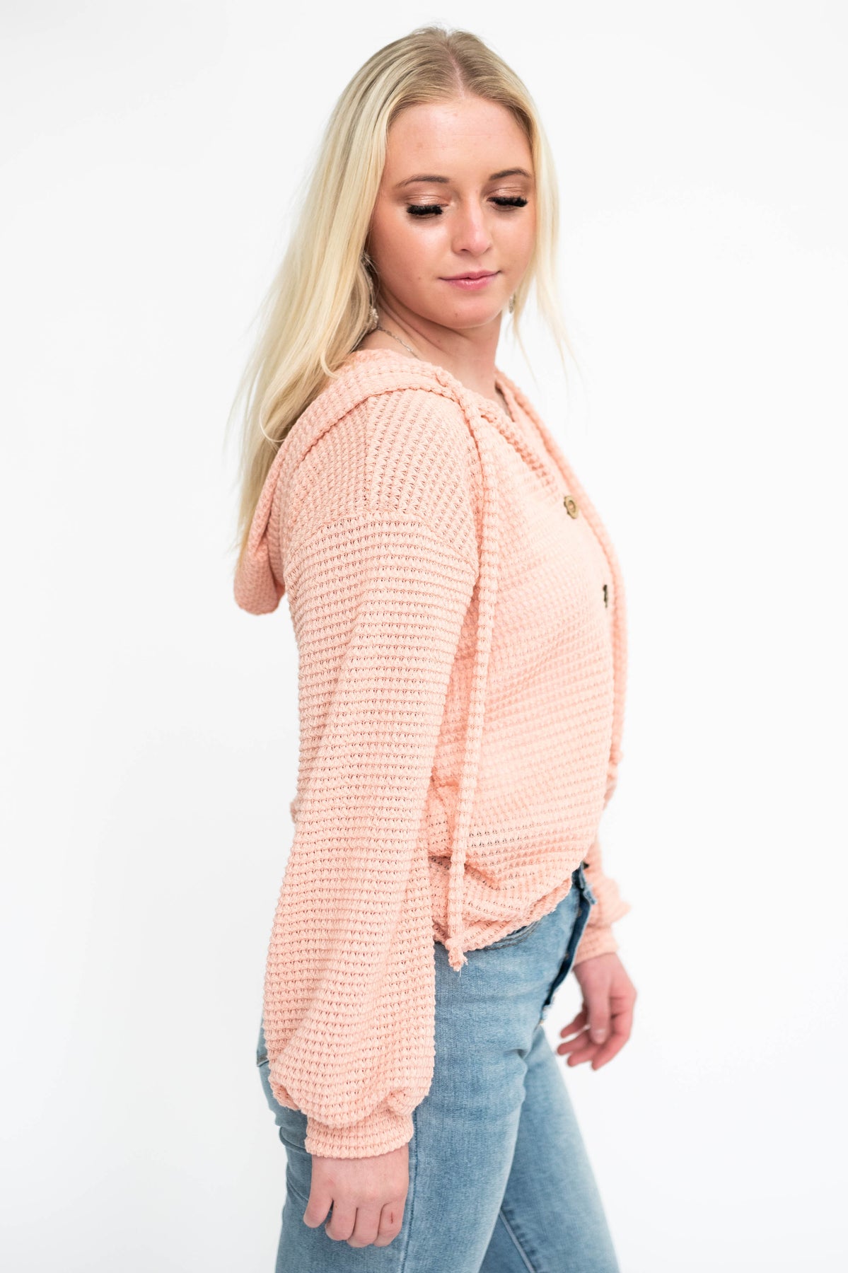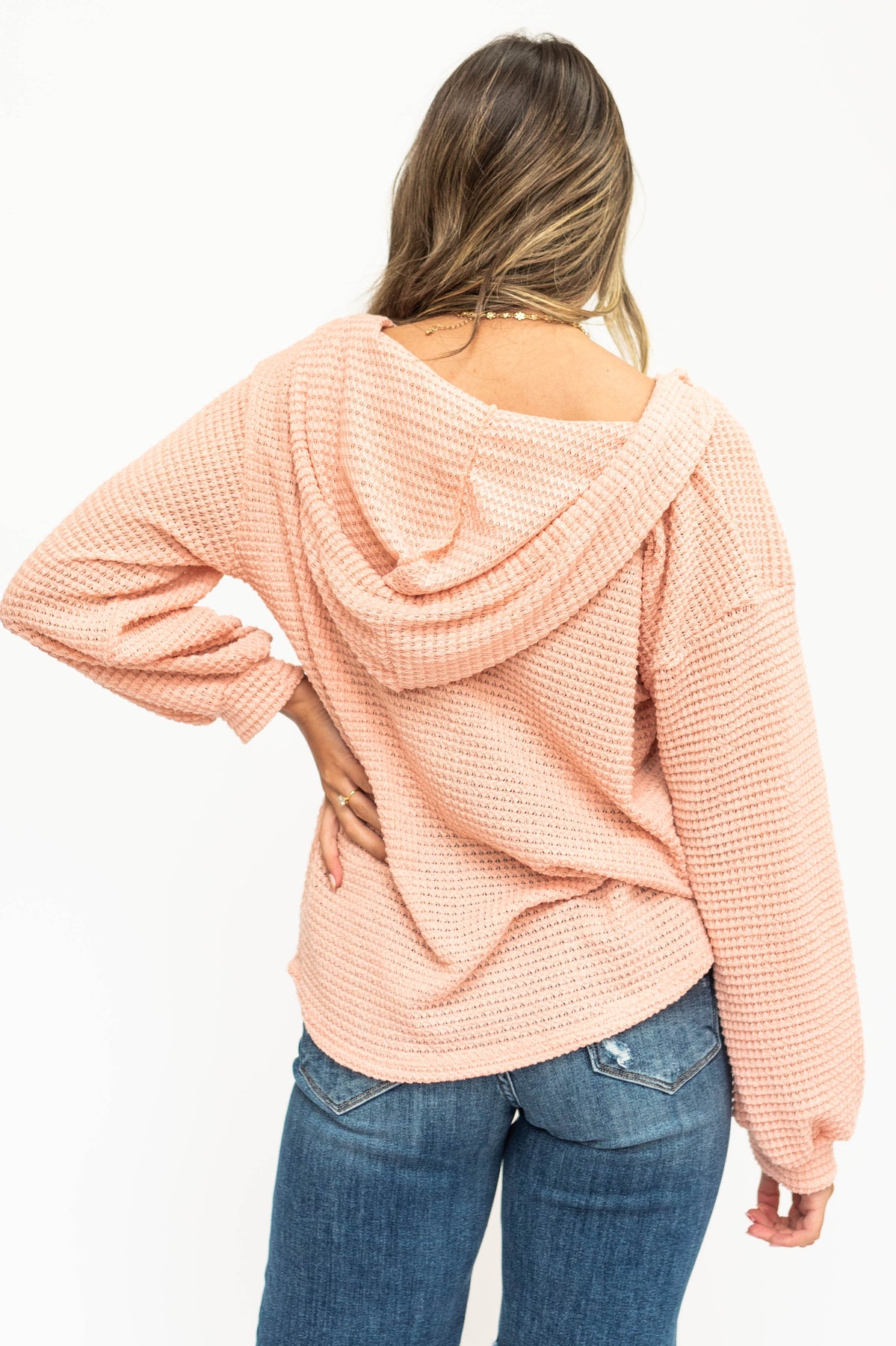 - Lightweight waffle knit fabric in a beautiful rose color