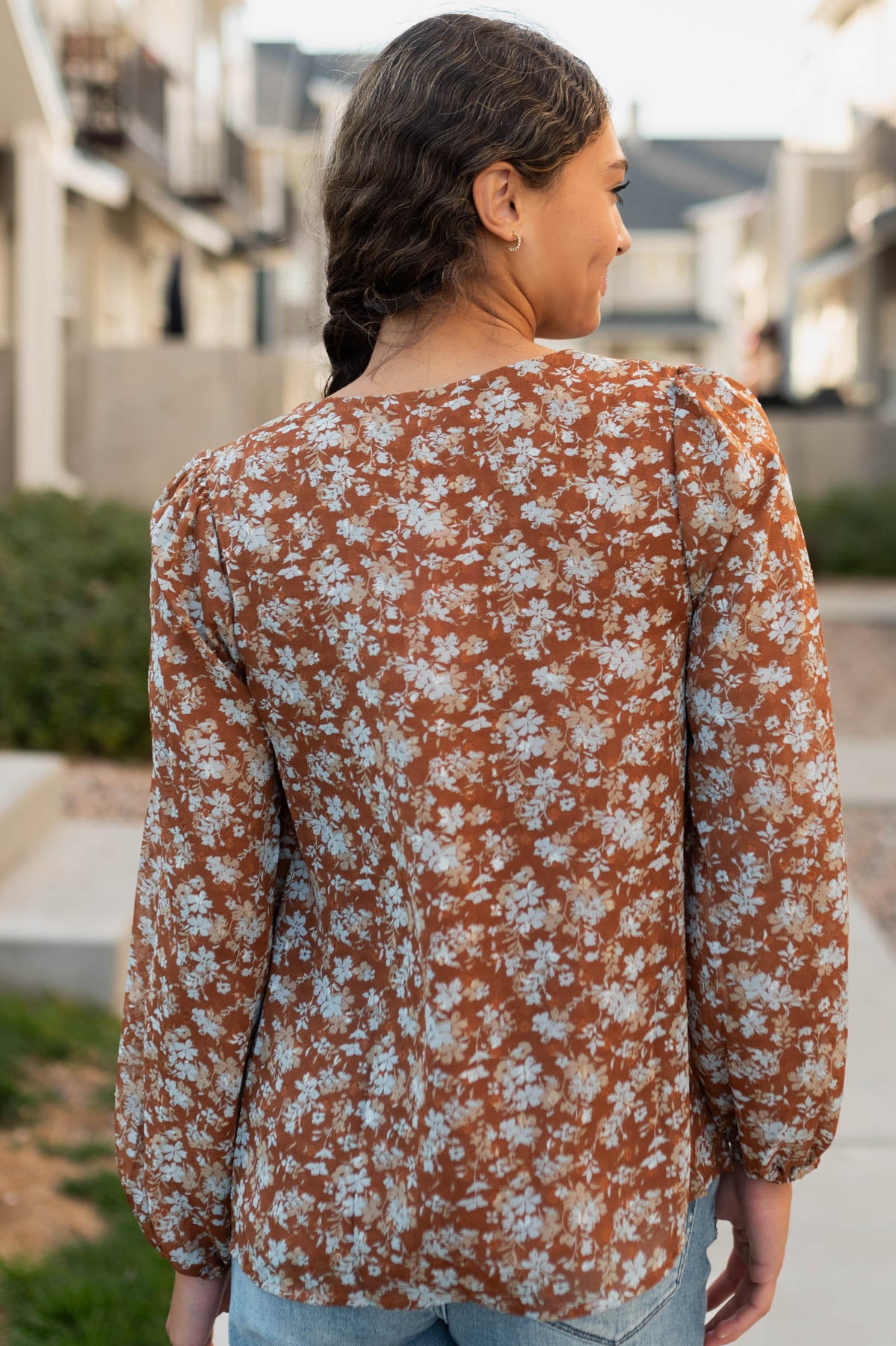 Back view of the blue floral blouse