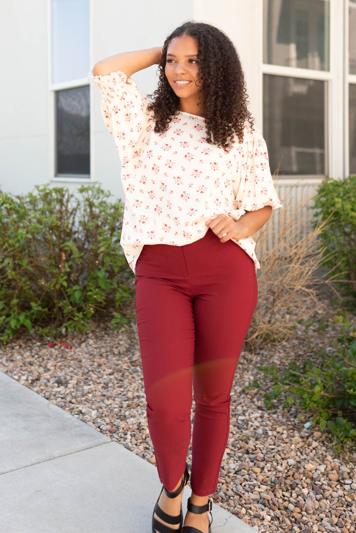 Description: stretchy, faux pockets, functioning zipper and clasp, elastic waist band